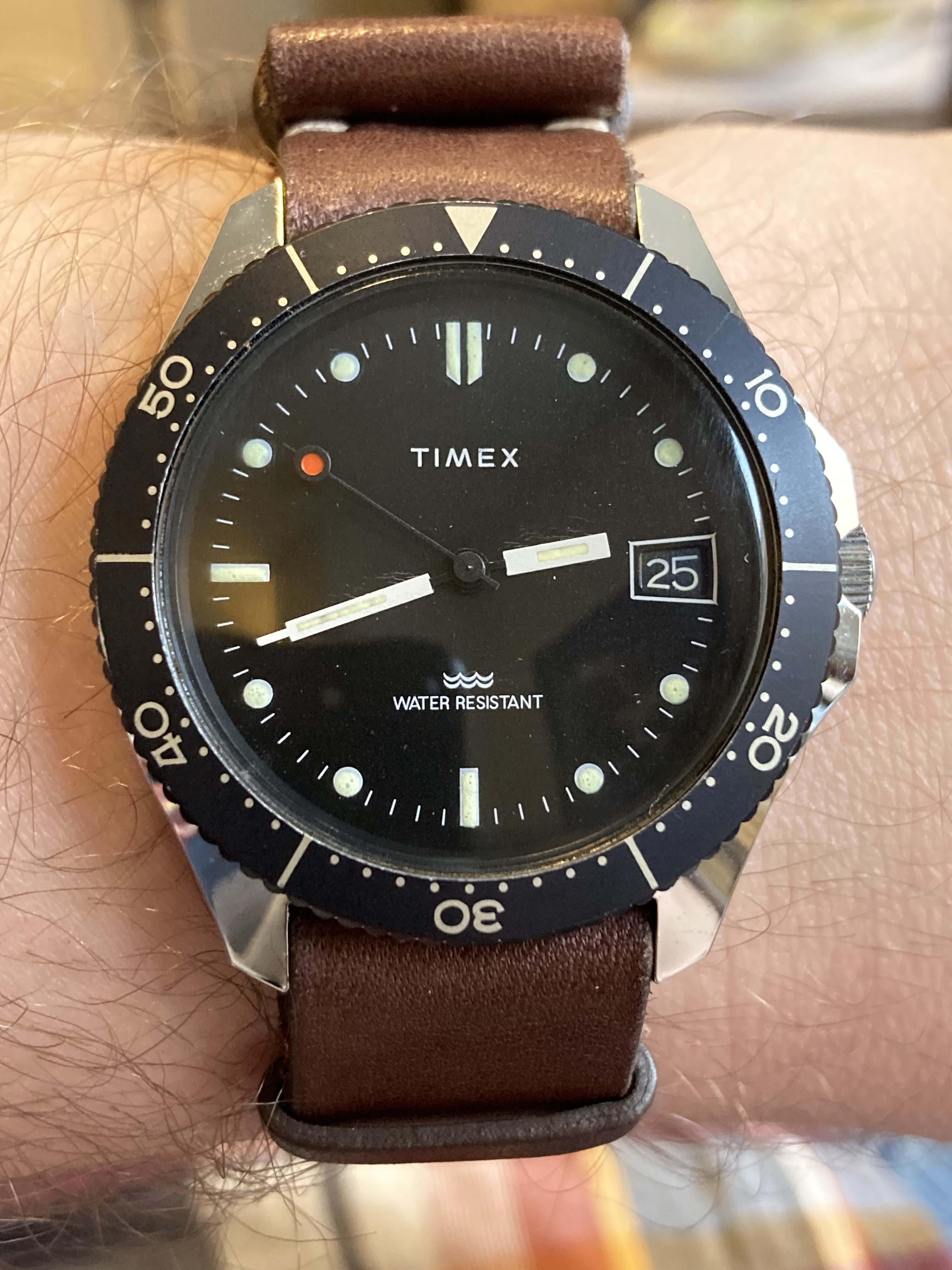 Posts 12,113 Likes 40,269 abrod520 ·Jan 25, 2021 ‘79 Timex “Red Ball”, 38mm manual winding cheap thrills!