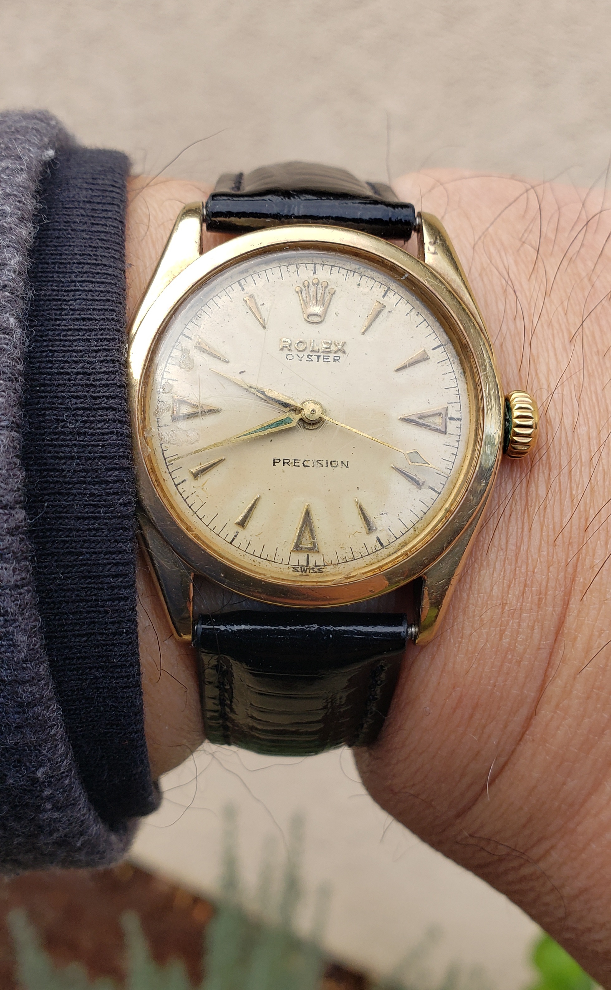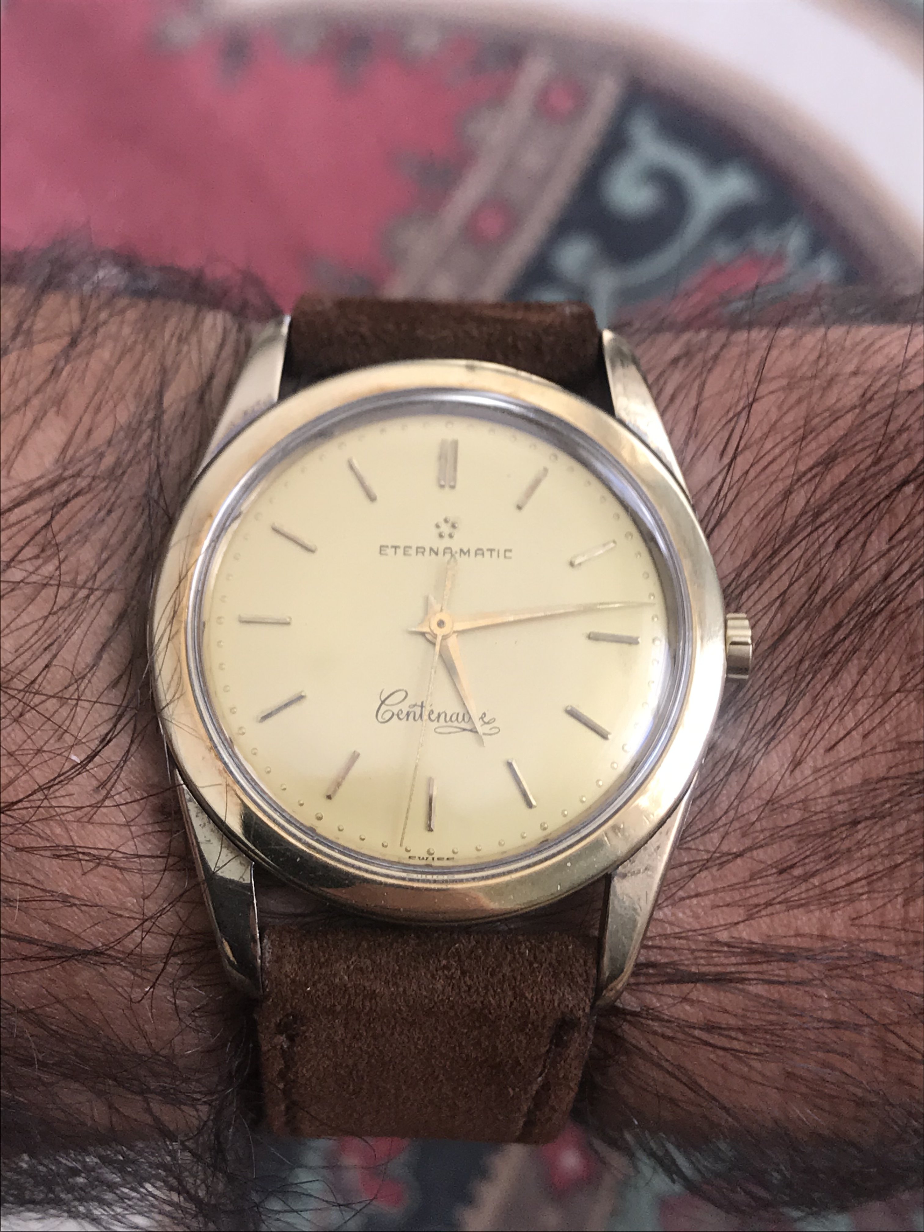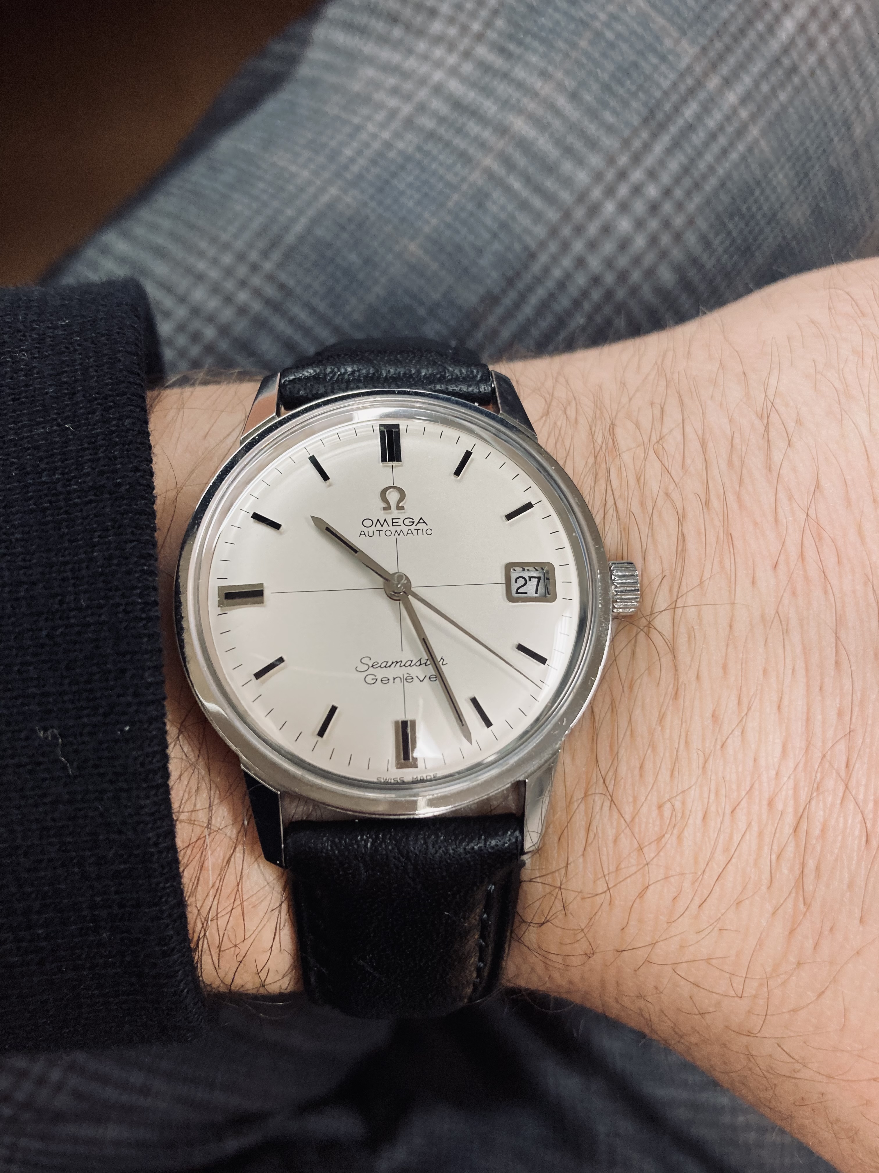 1964 Constellation reference 167.005. Getting very hard to find these in stainless steel and this one has a cool dial variation - rose gold hands and matching hour markers with onyx inlays. Silver dial has faded to a champagne color, but I like it.