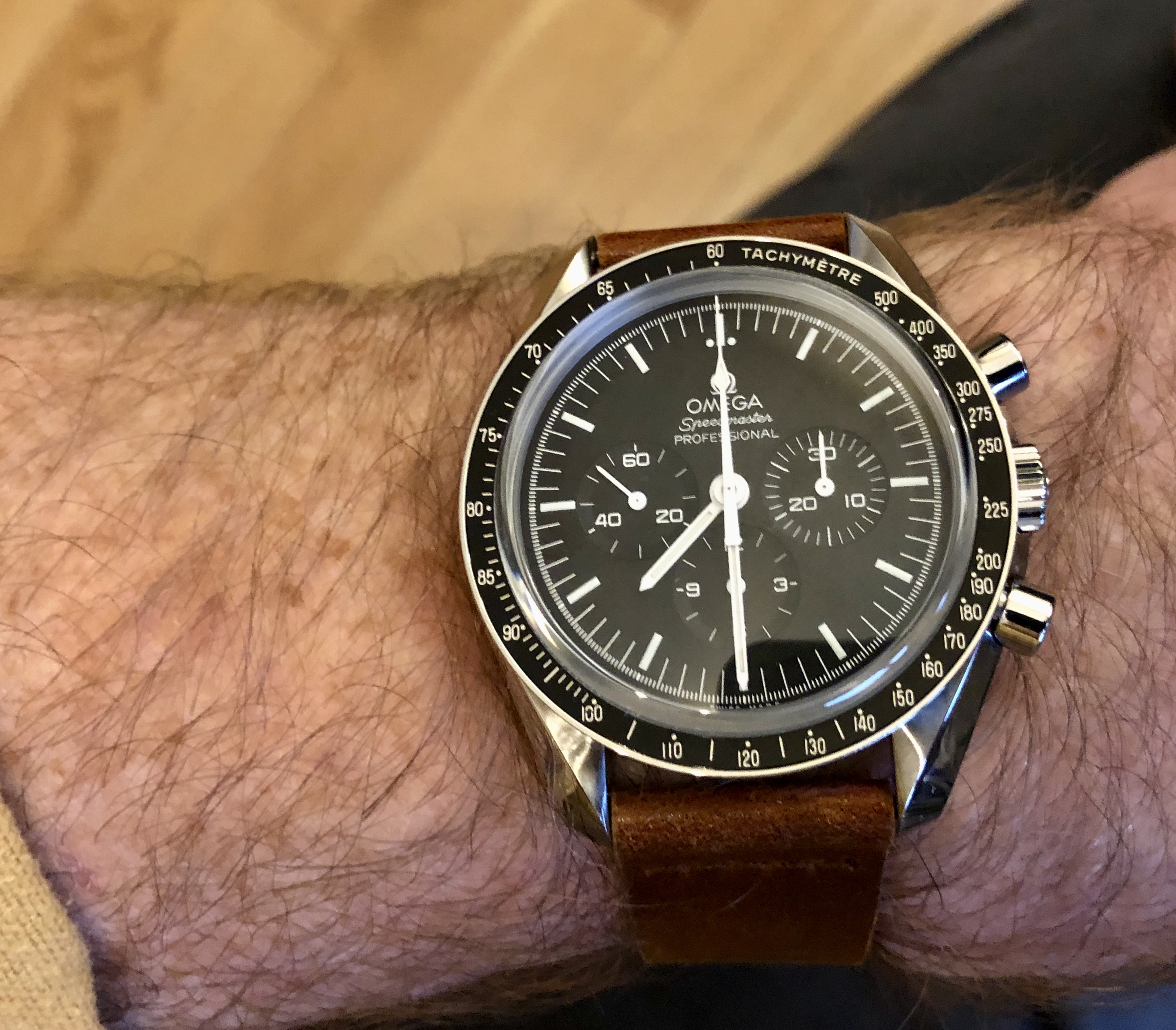 New arrival as of this morning and she is a stunner. 1996 reference 3590.50.00. One of the last tritium Speedmaster Professionals and in gorgeous condition. Just look at that dial!