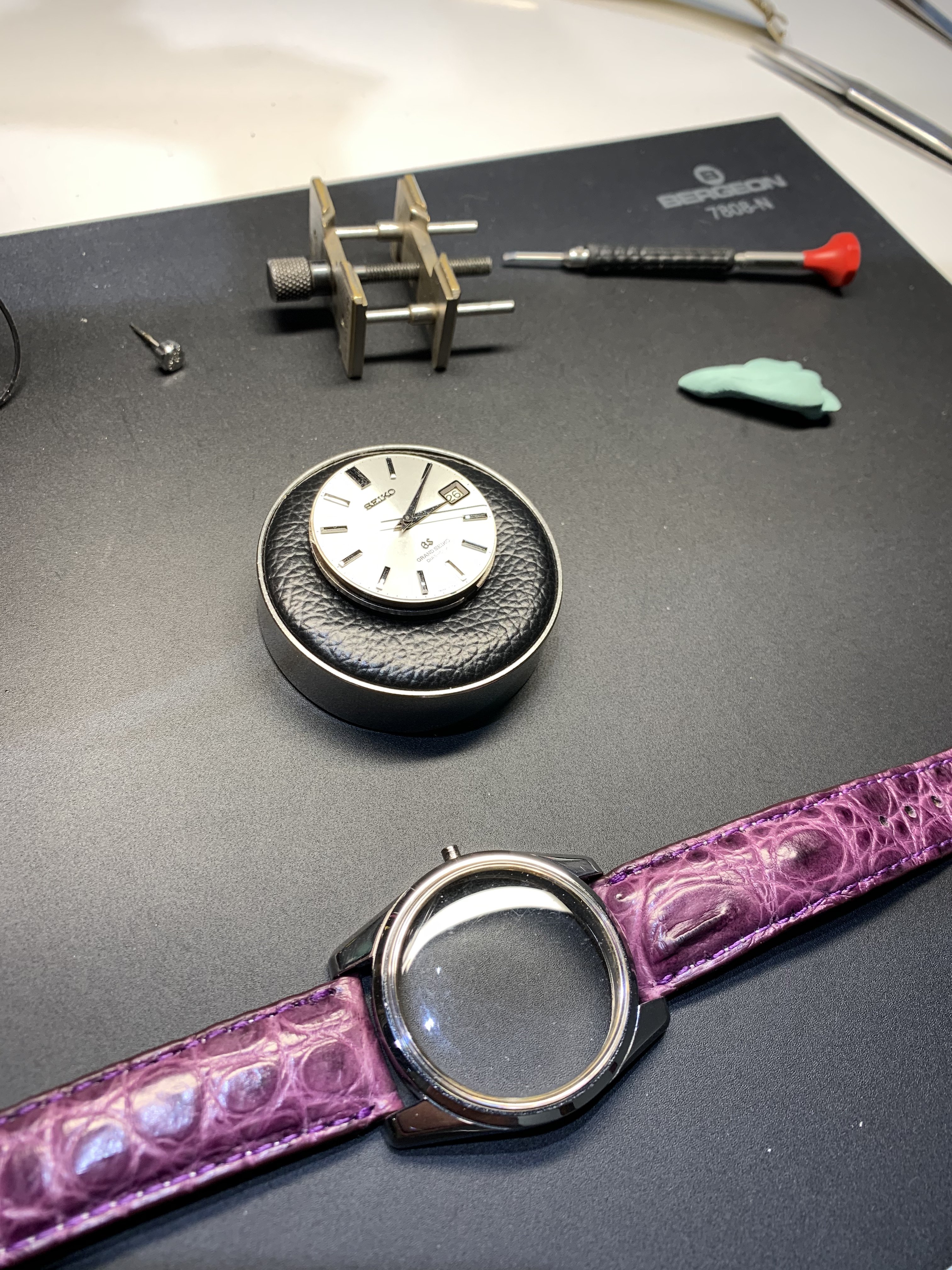Jason at Roldorf (Vancouver, Canada) cleaned some dust and particles off the dial of my 1967 Grand Seiko 57GS. They were driving my crazy after I found them under loupe. Sometimes looking close has it's downside :-p
