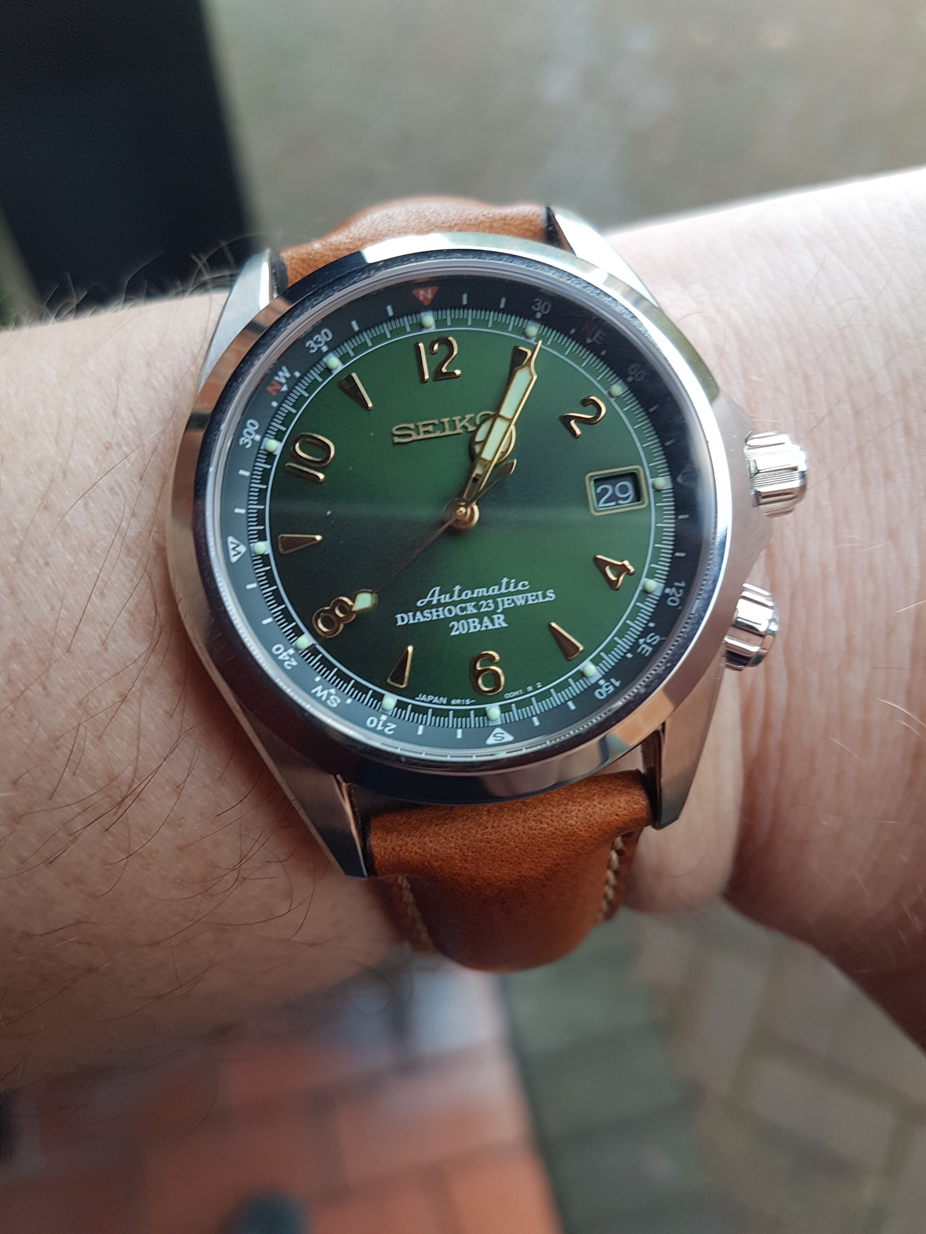 I switched watches because this strap arrived in today's mail and I couldn't wait to show it off. This culminates a five-year search for a permanent strap for this watch, and I think I finally nailed it. The strap colour is officially labeled "Hunter Green" but I'm going to call it