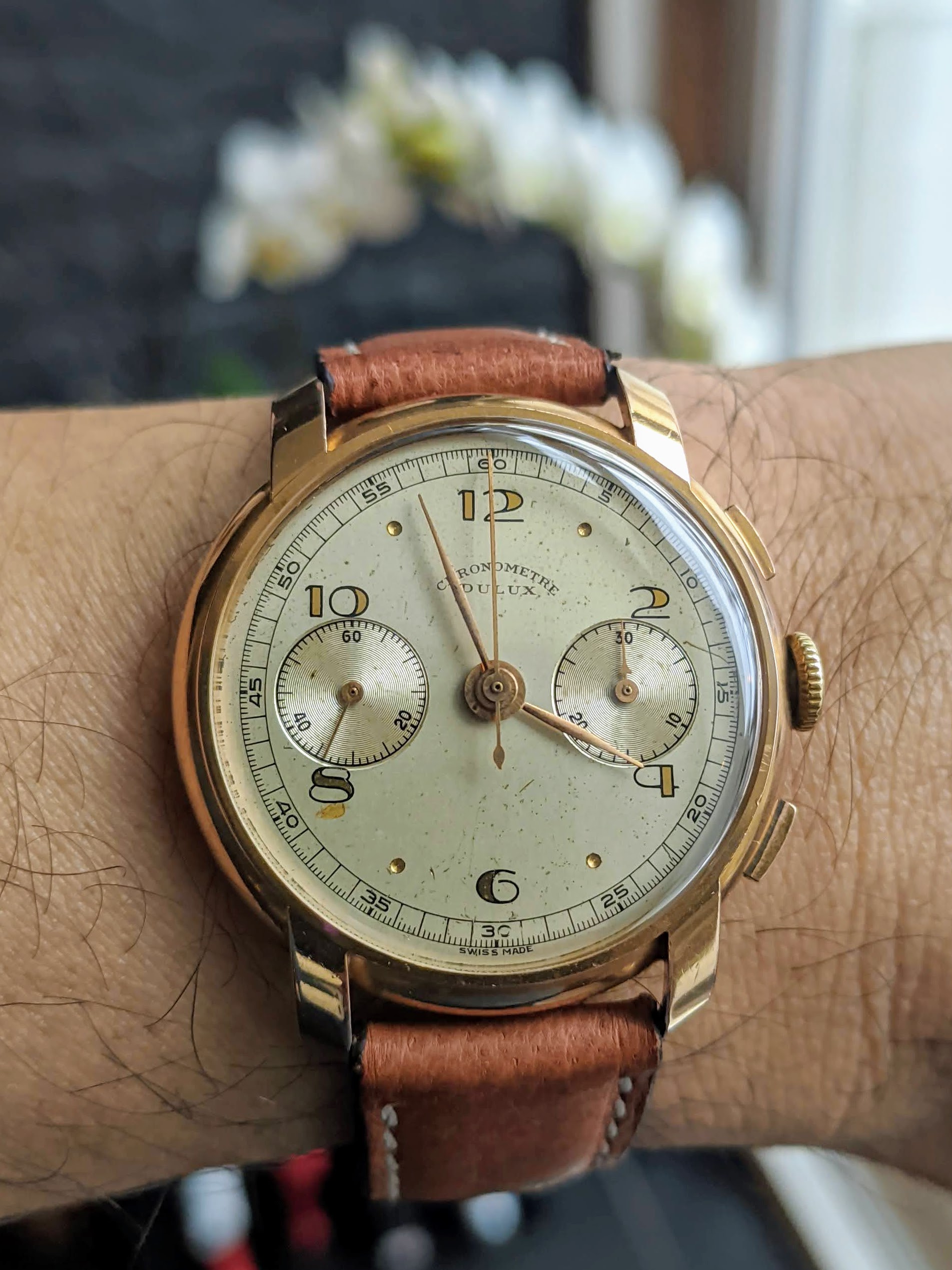 Posts 2,442 Likes 19,756 Dr No ·Jan 29, 2021 LesXL Still on the wrist... Daylight shot My very first watch was a Dulux! Hasn't run properly in ages . . . slated for service after the next three already tabbed as priorities receive attention from my watchmaker. Art