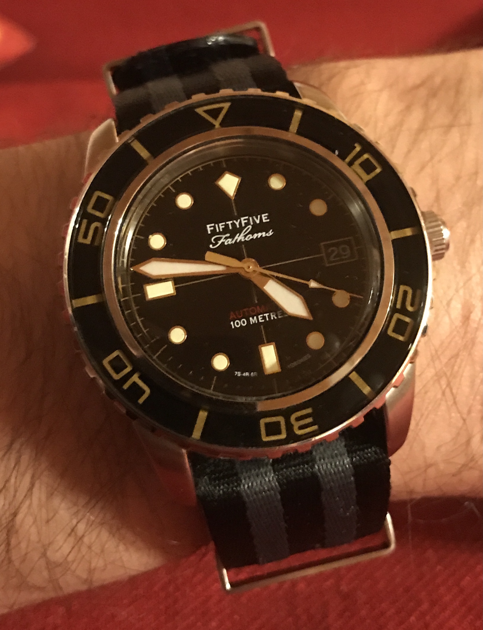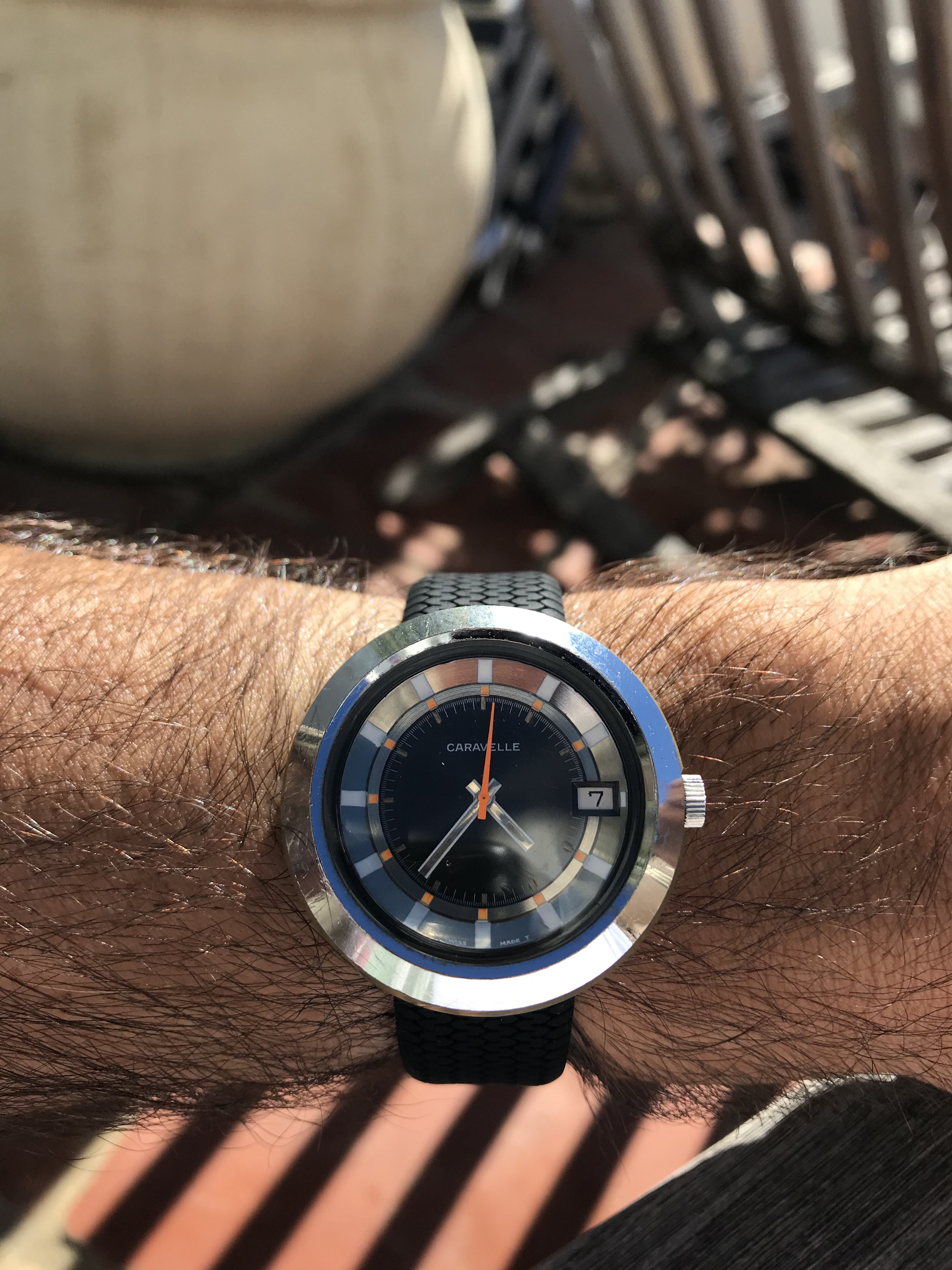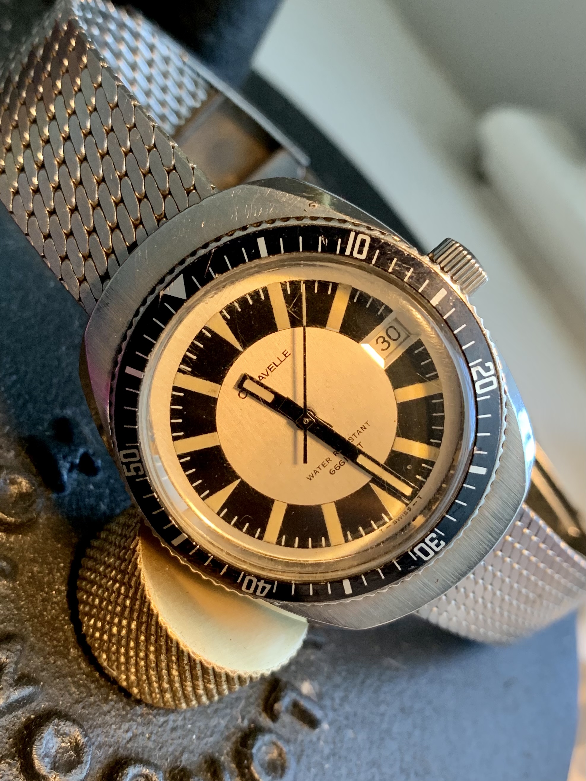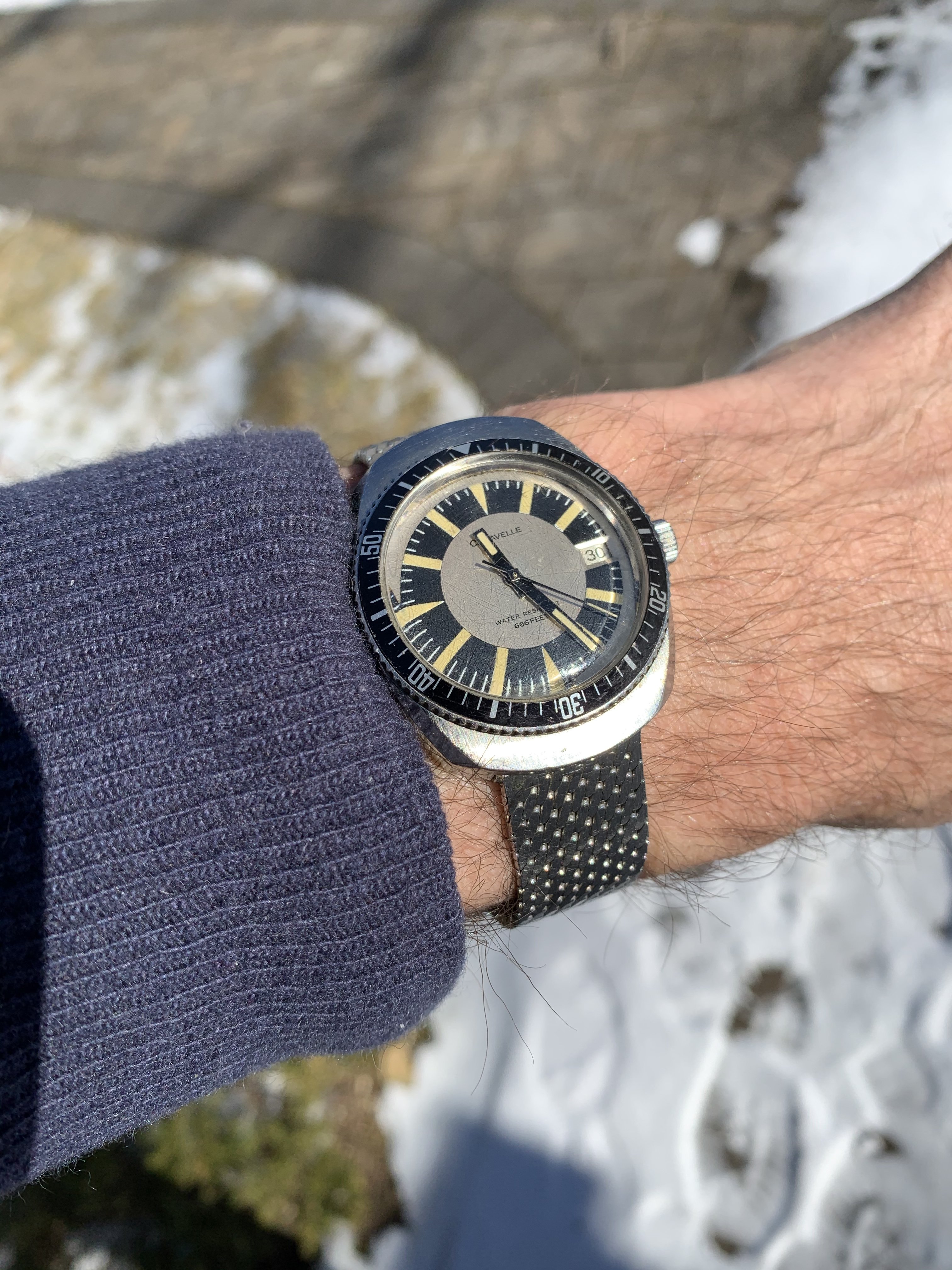 Deep crystal makes this tough to photograph outside....so you get both today you lucky people! 1975 Devil Diver with super bracelet and lots of interesting details....