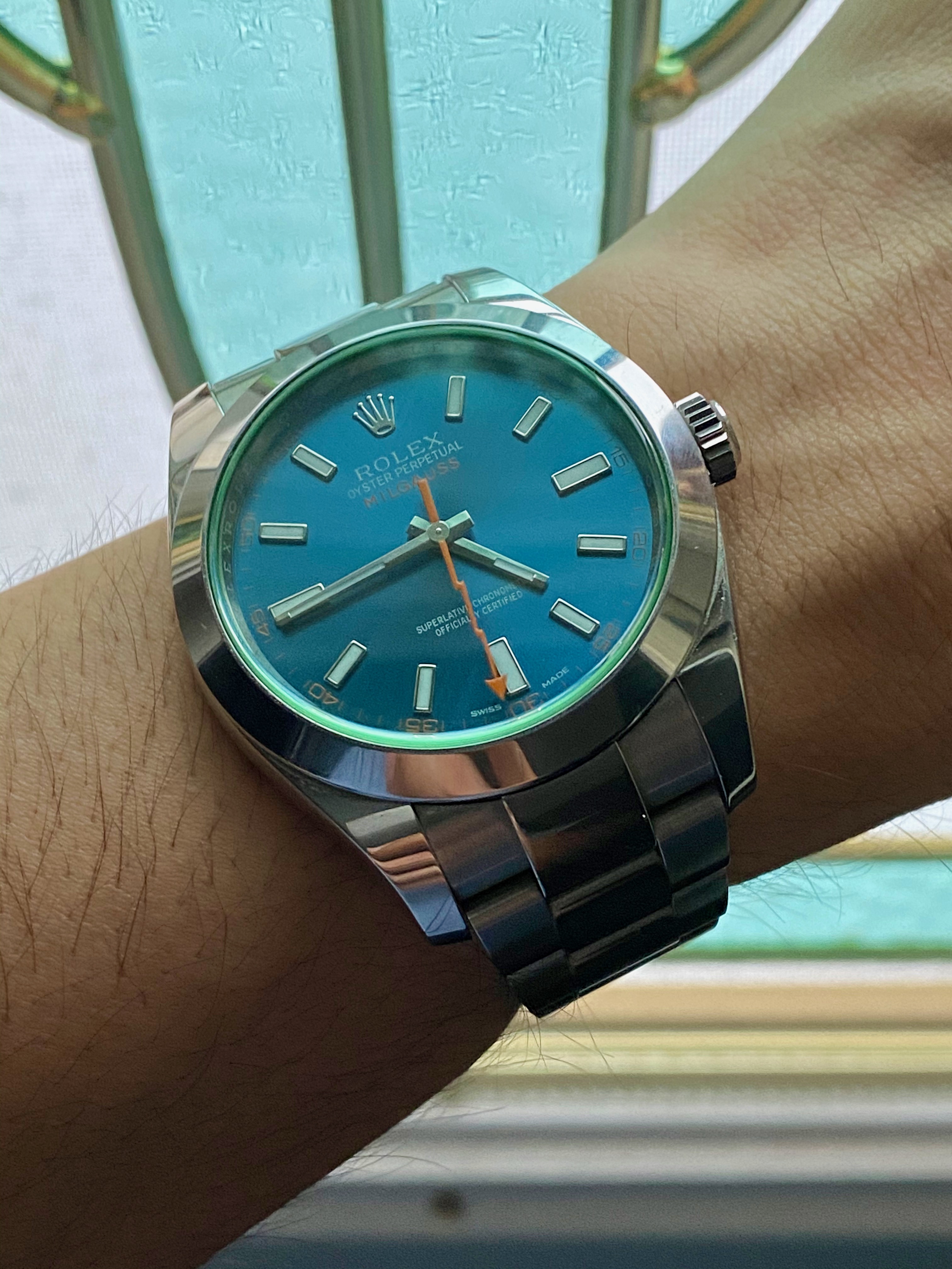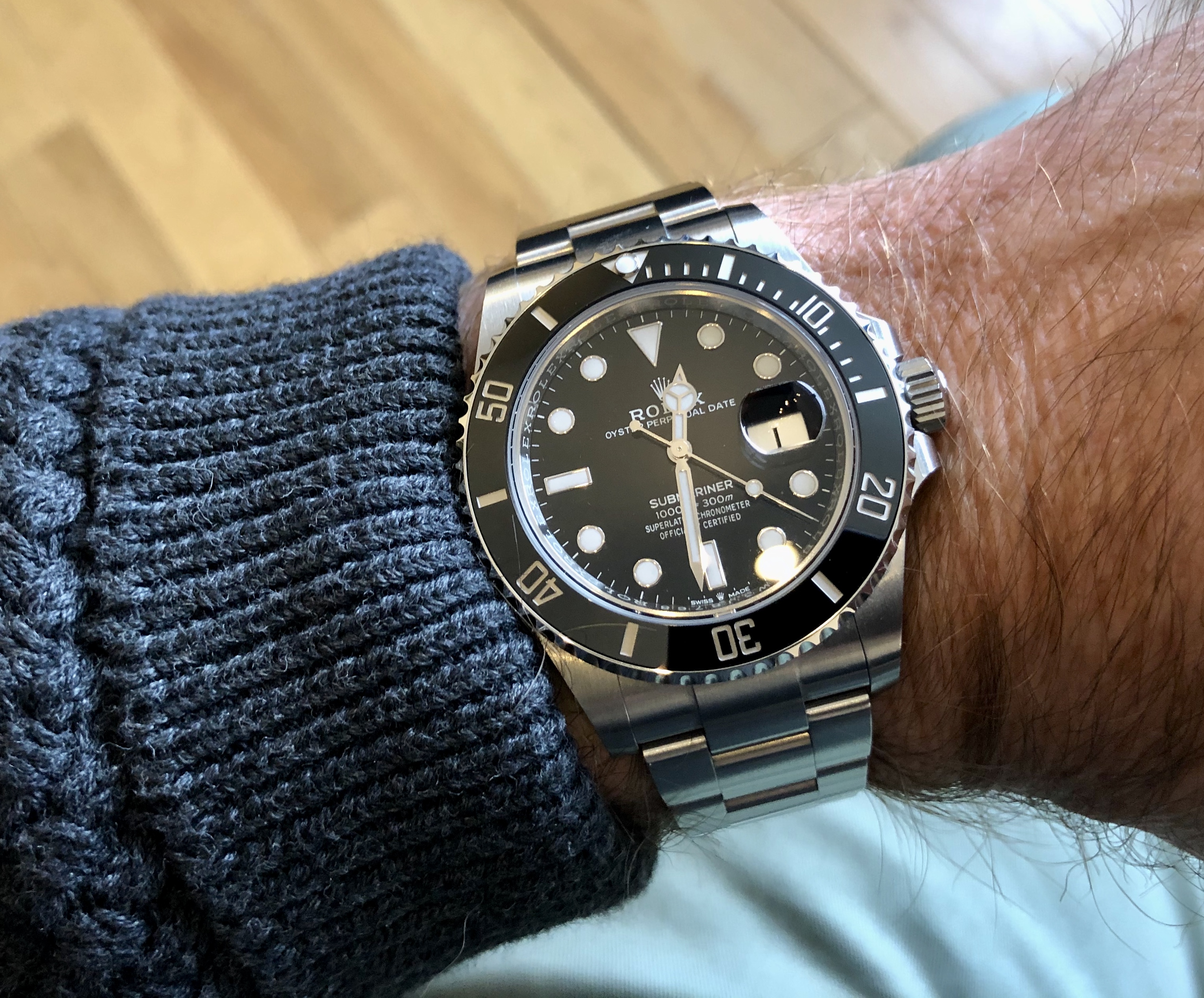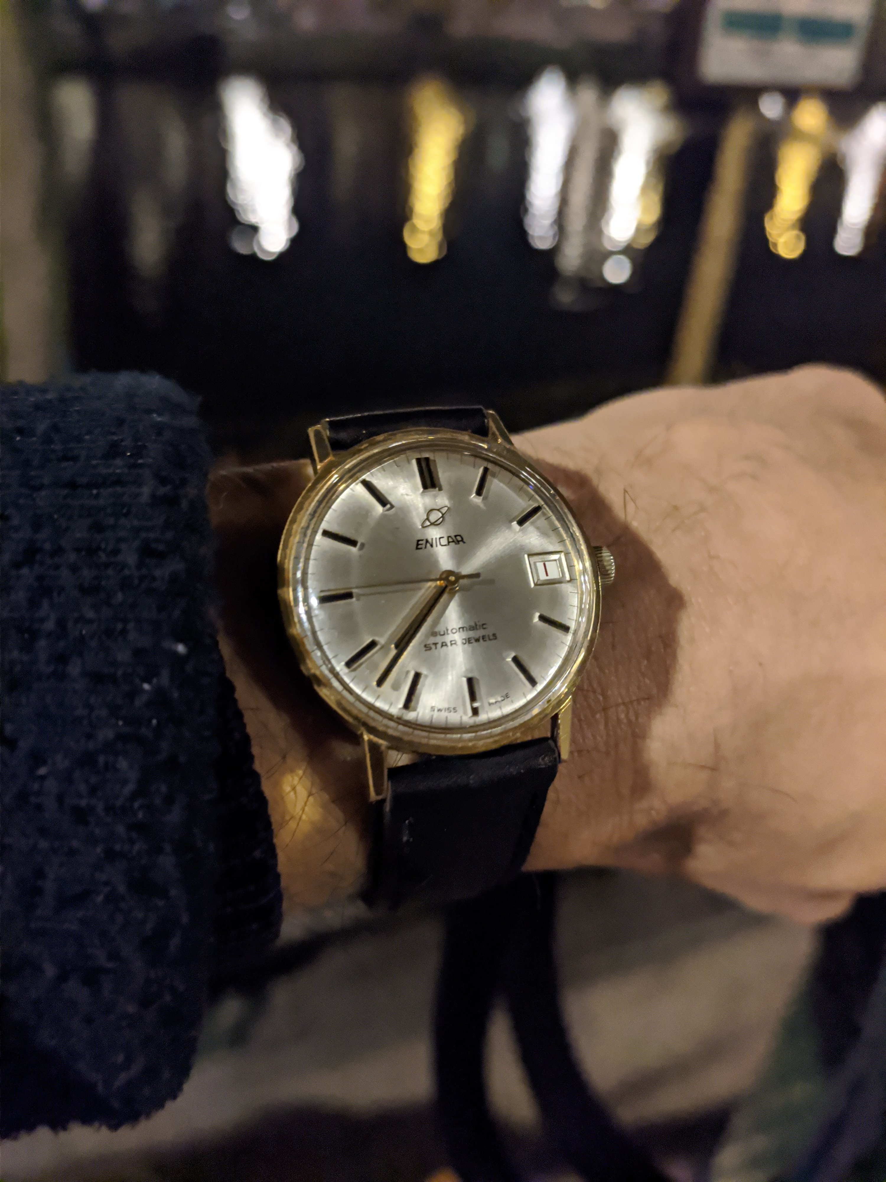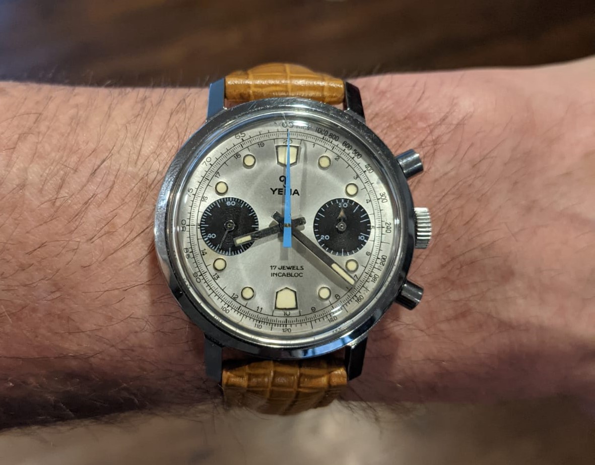 Still my 50-year old Rolex Air-King Date, won 50 years ago this year, in a Rolex sales contest. Celebrating its Golden Anniversary in my possession, with the addition of a genuine Rolex 14-karat yellow gold bezel to spruce it up a bit.