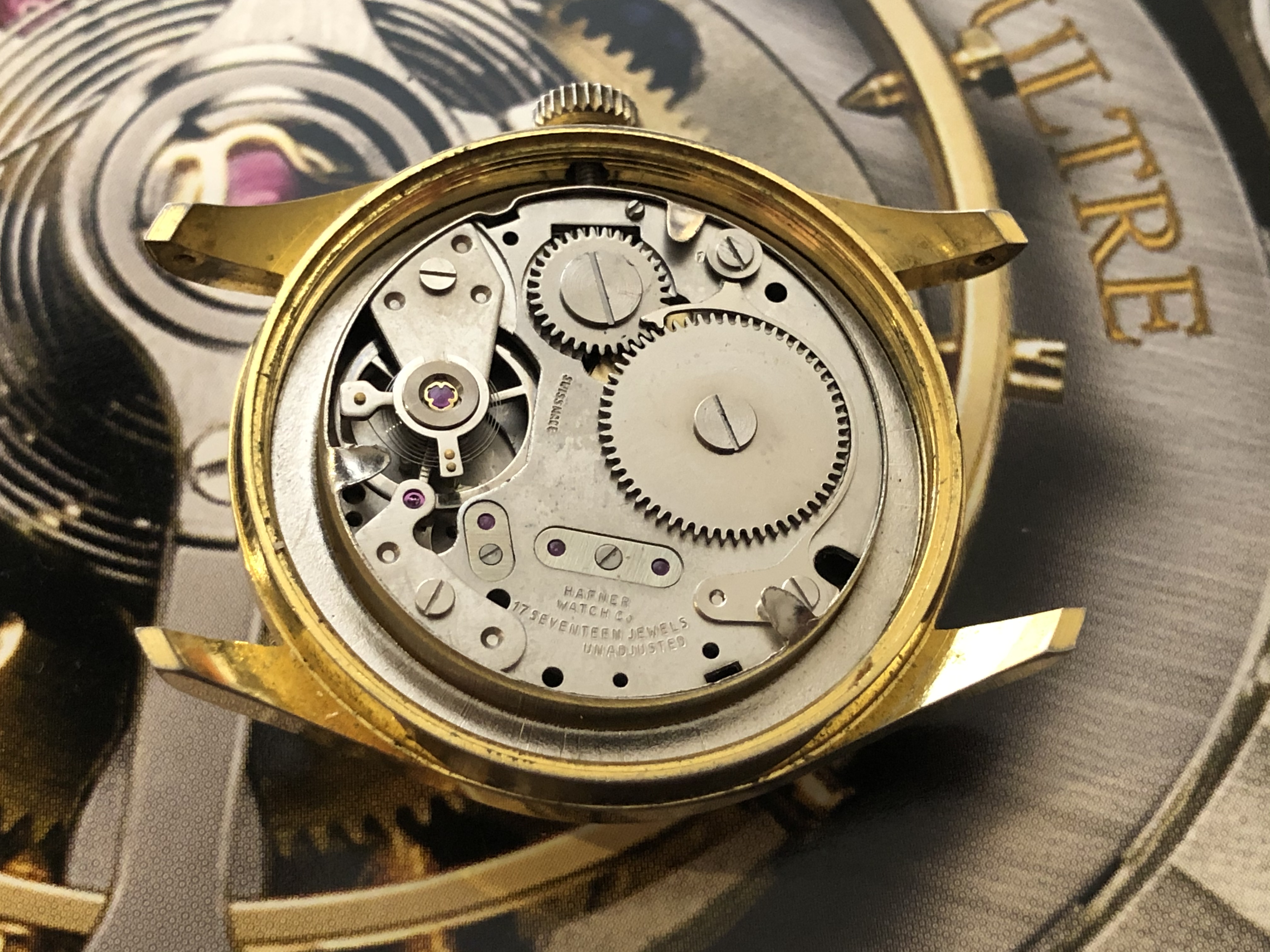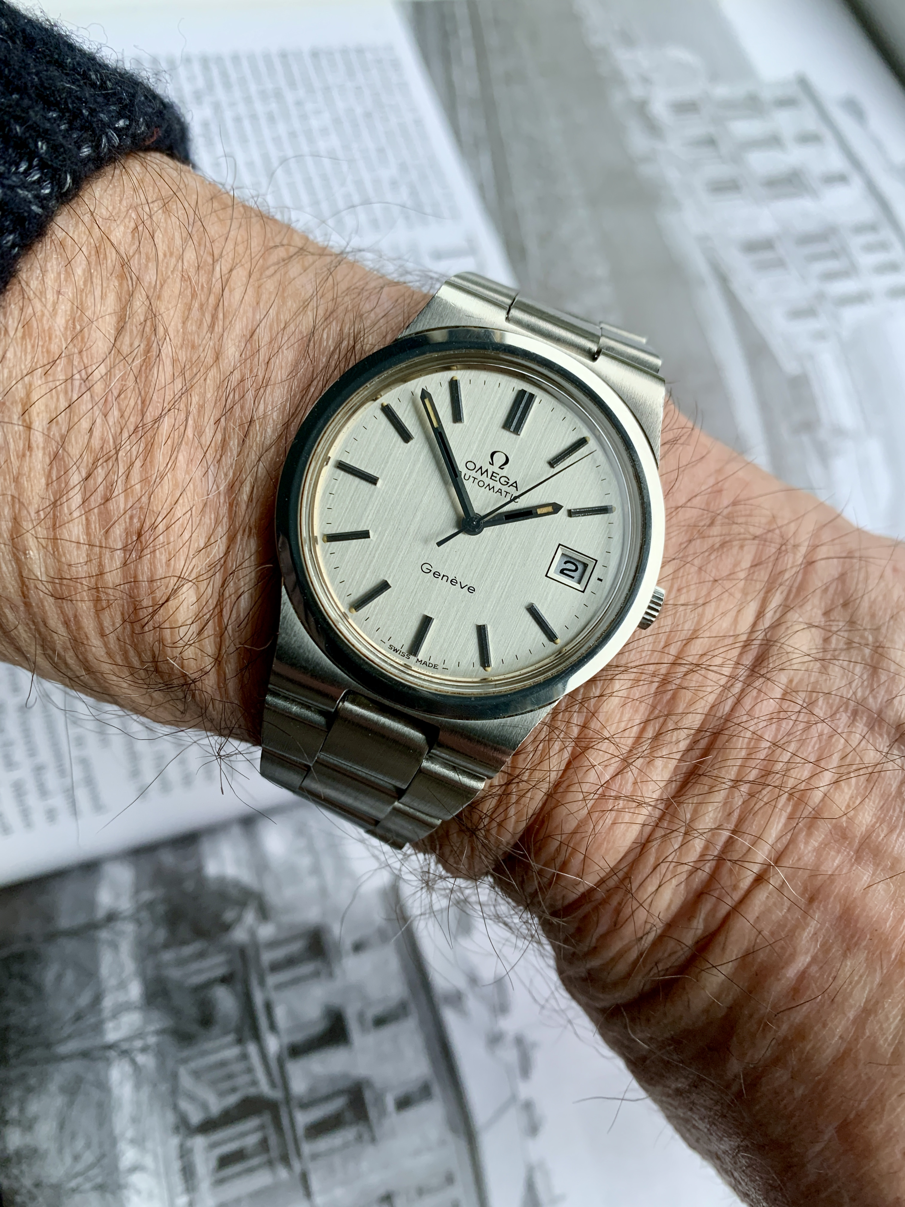 The caseback is unique as well, and also a bit infamous. Many owners of this model experienced rapid and extensive flaking-off of the black enamel paint. This happened to me also. I have seen photos of this model for sale online that have lost 100% of the black enamel. Because my particular watch was purchased directly from Omega as NOS, it was still under the original manufacturer's warranty when the enamel began to flake off. To make a long story short, my watch took a six-month vacation in Bienne where a newly-formulated black enamel paint was applied. As best as I can tell it has been flake-free in the four years since its trip back to Switzerland.