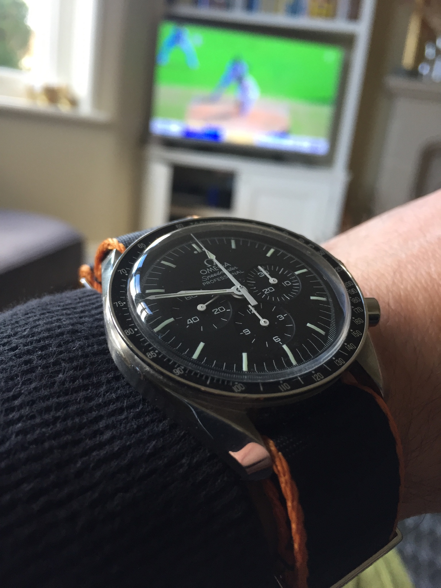 Gone with a sporty NATO to celebrate Test cricket’s long-awaited return to UK terrestrial TV. (England batting coach Graham Thorpe wears a Speedmaster, in case anyone cares.)