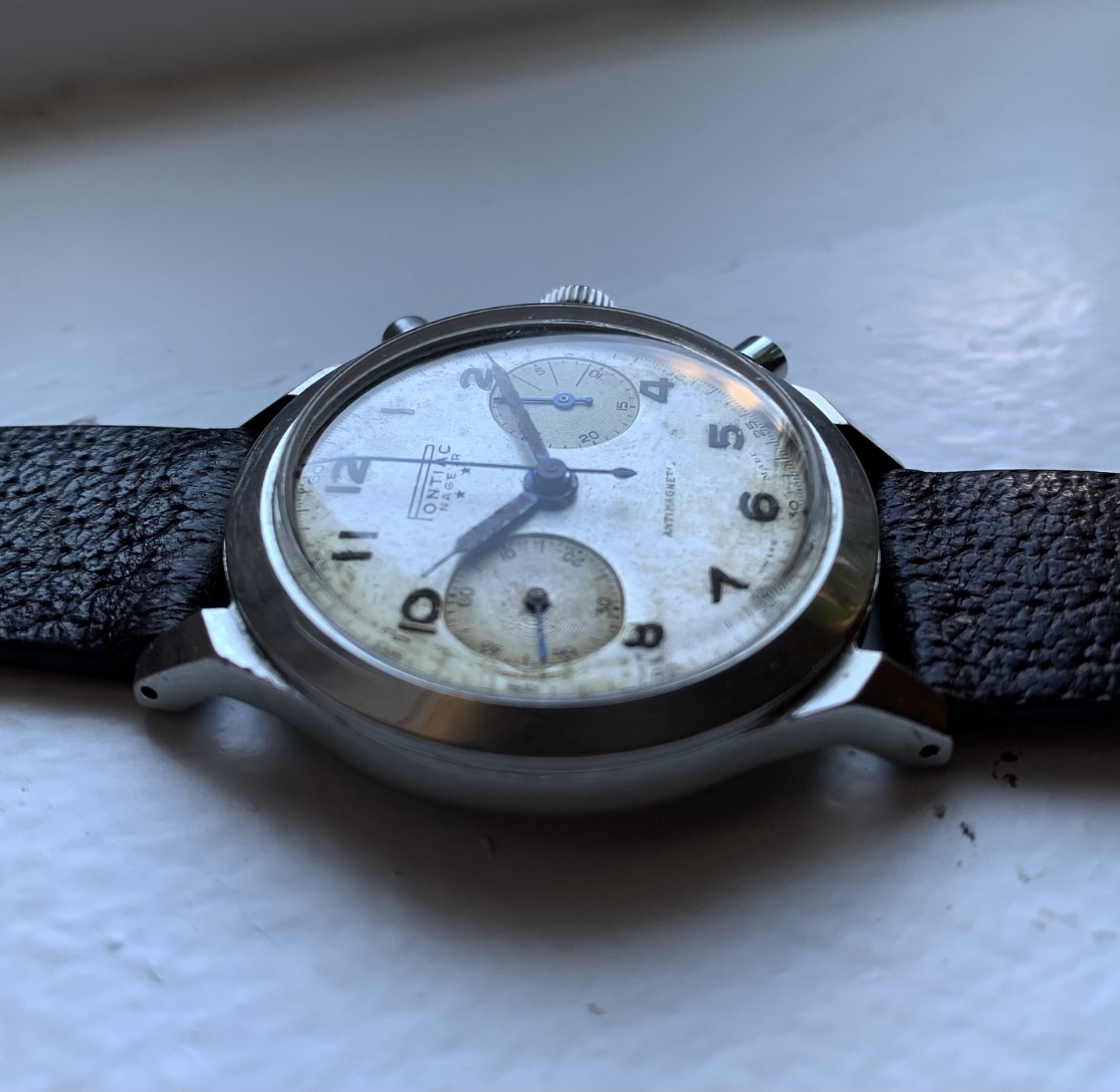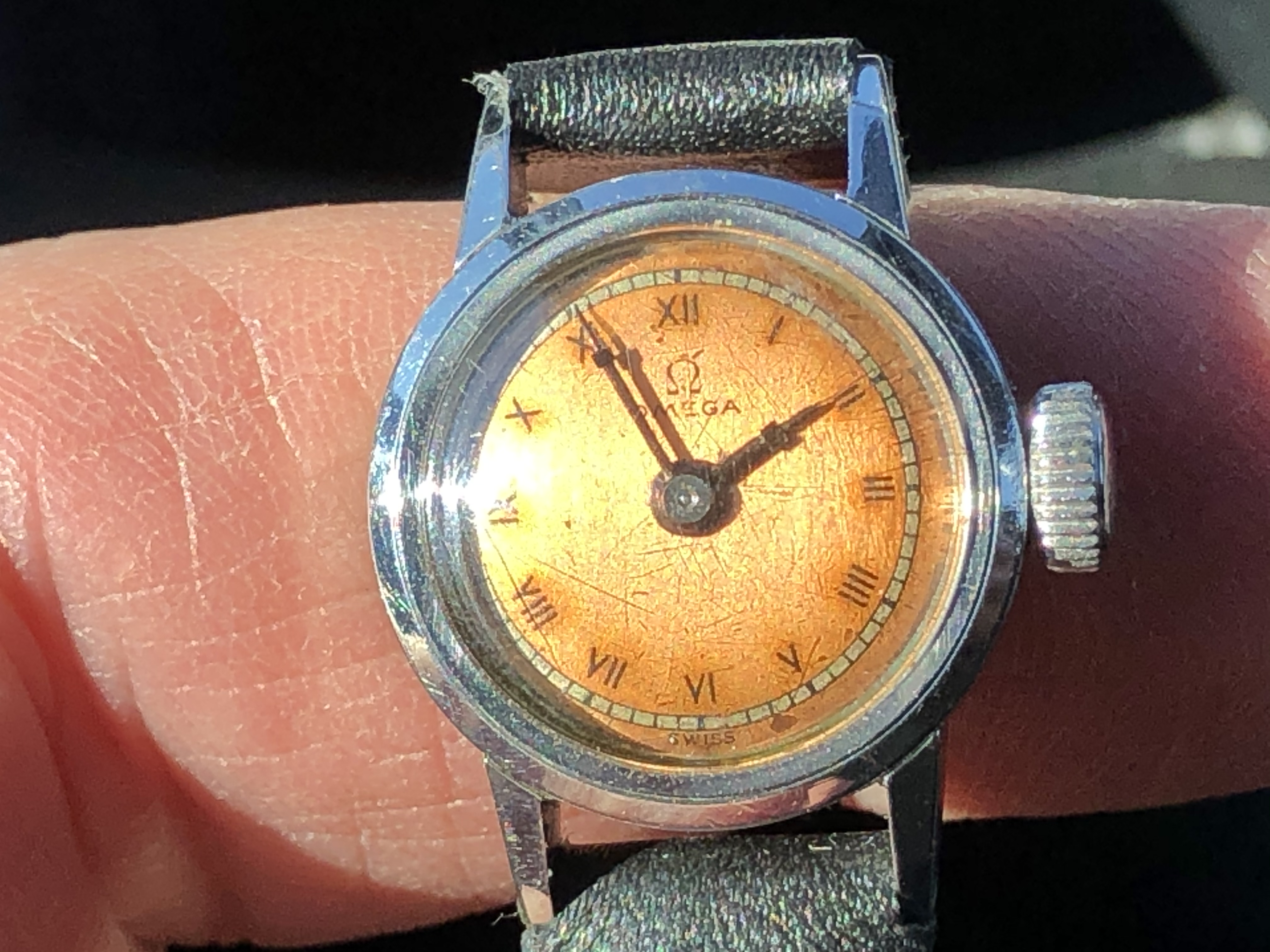Not what I am wearing today but, rather, what Mrs. Allwoundup will be wearing later today....her birthday gift just back from WM cleaned and oiled, 1938 sport model...and, yes, Mrs. Allwoundup has a very petite wrist.