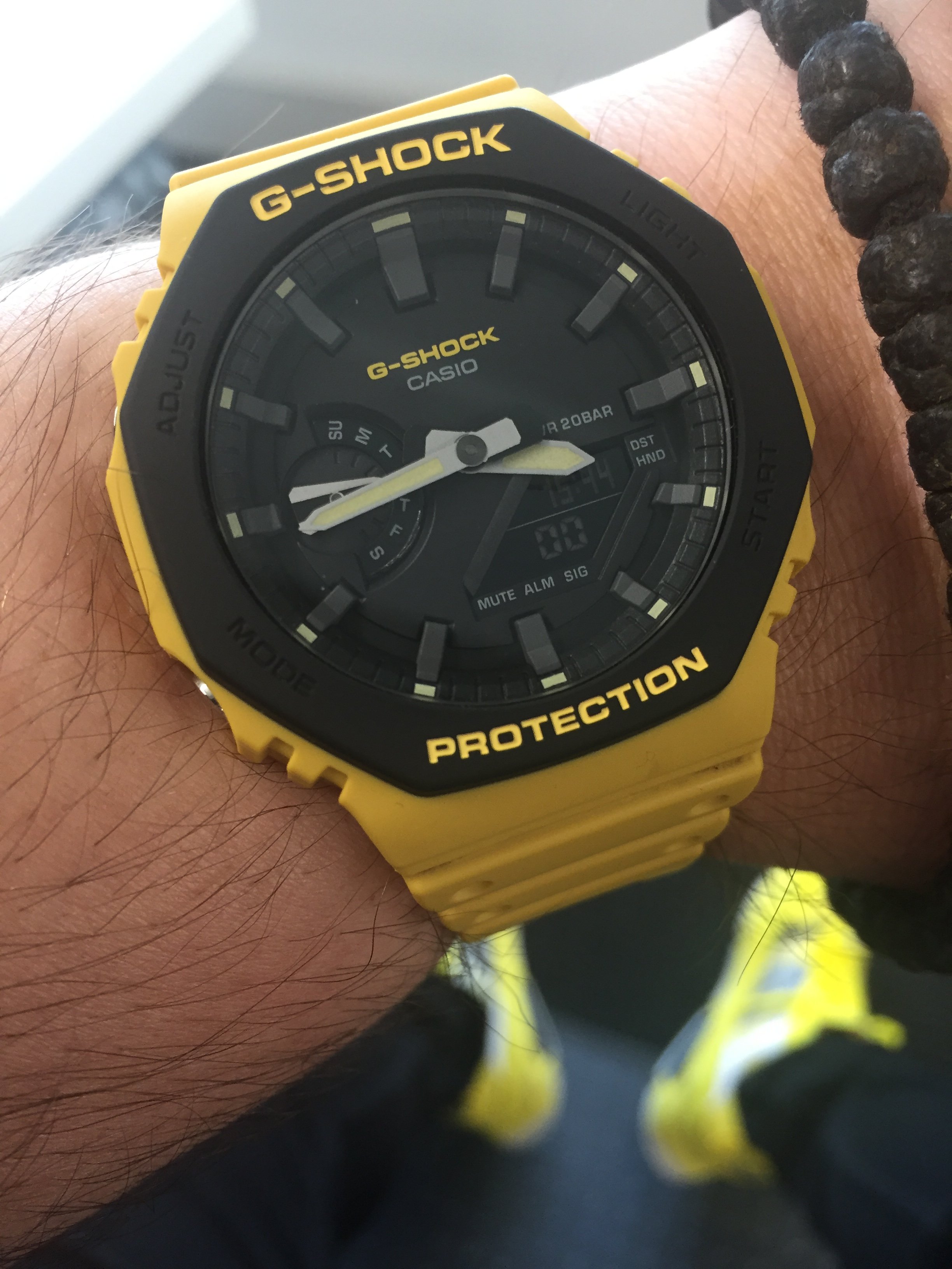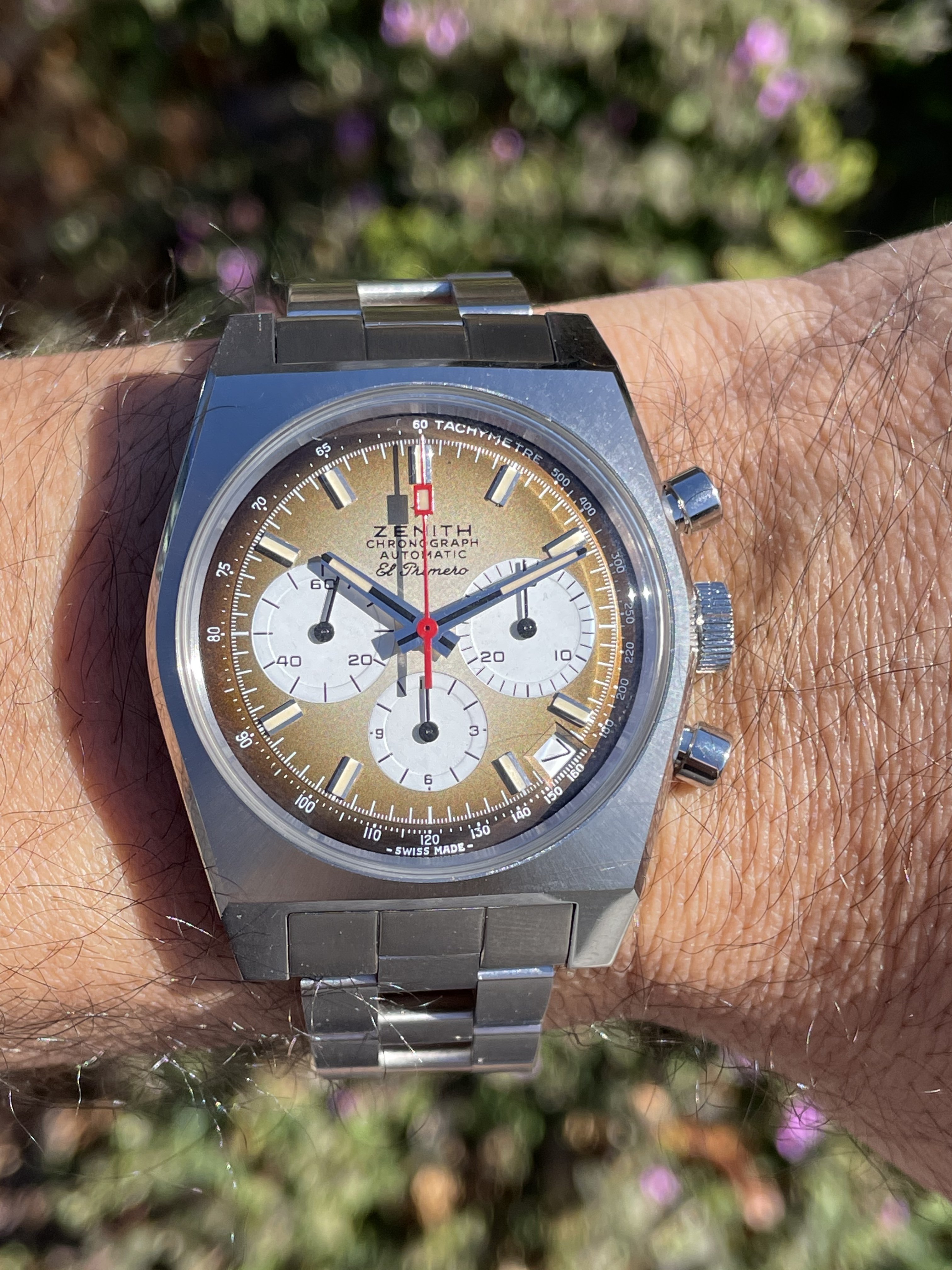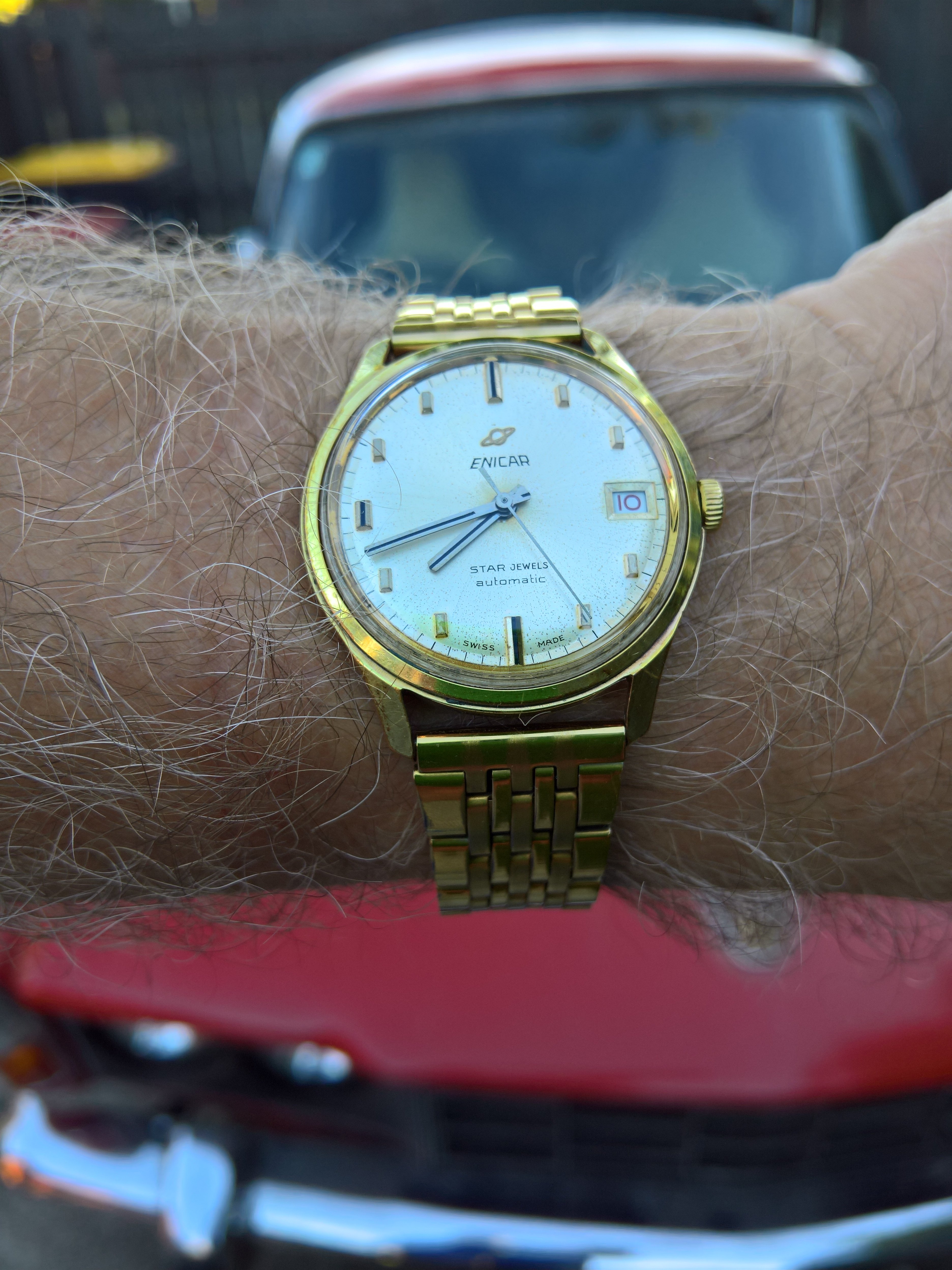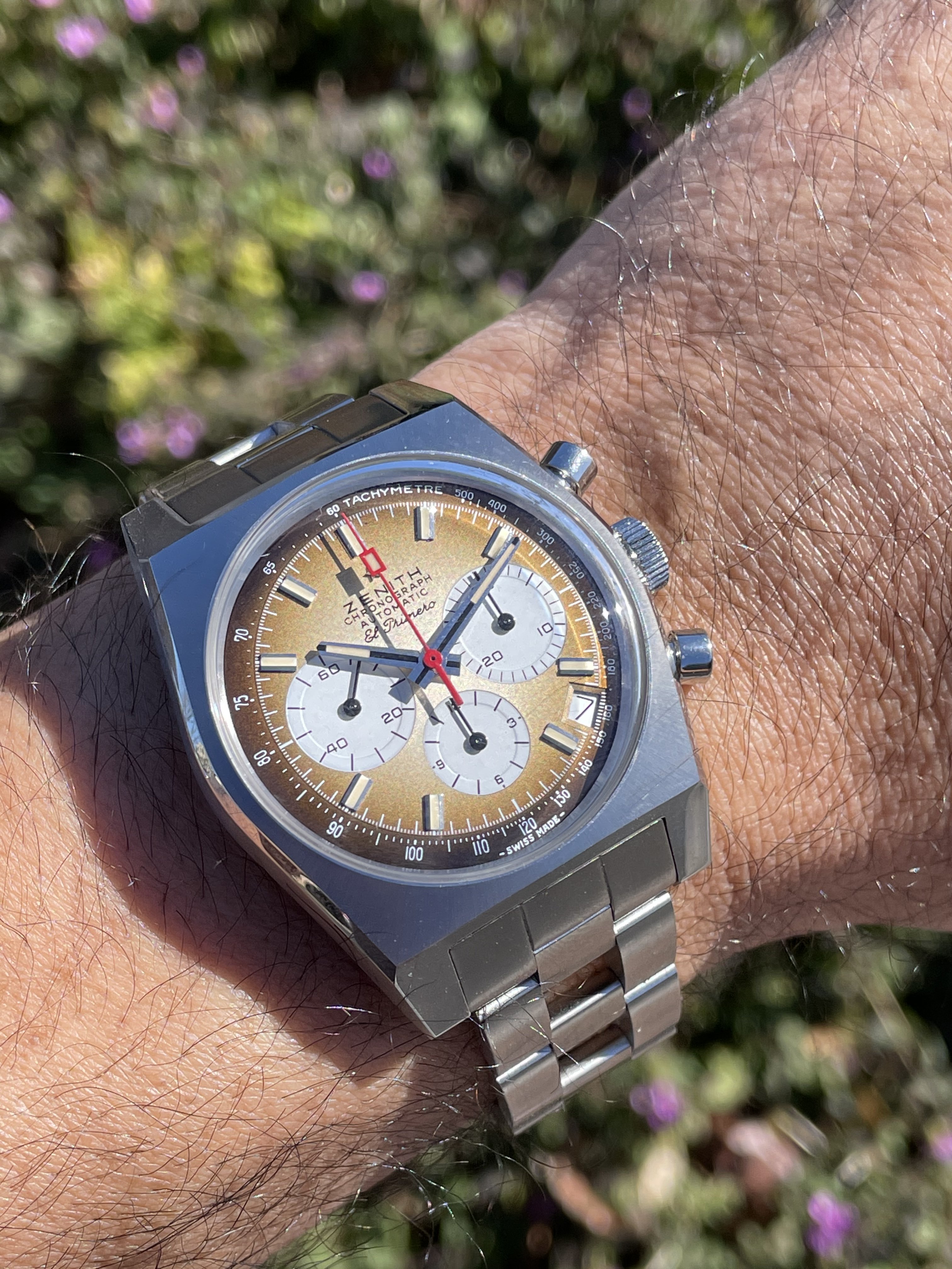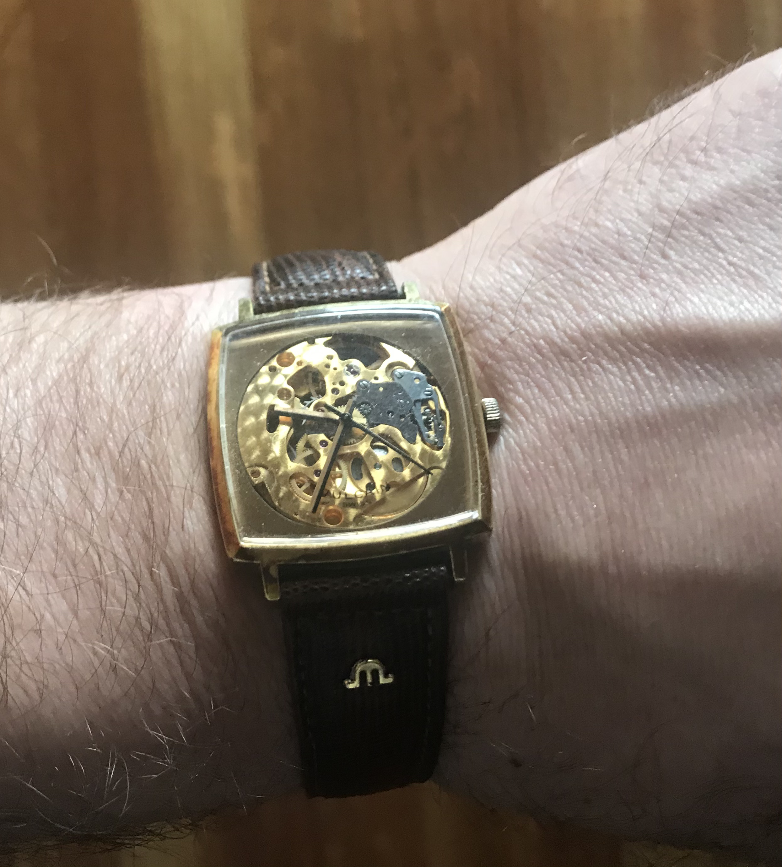 it isn鈥檛 original, the round movement was sitting in a blue-white striped bezel in the case.
