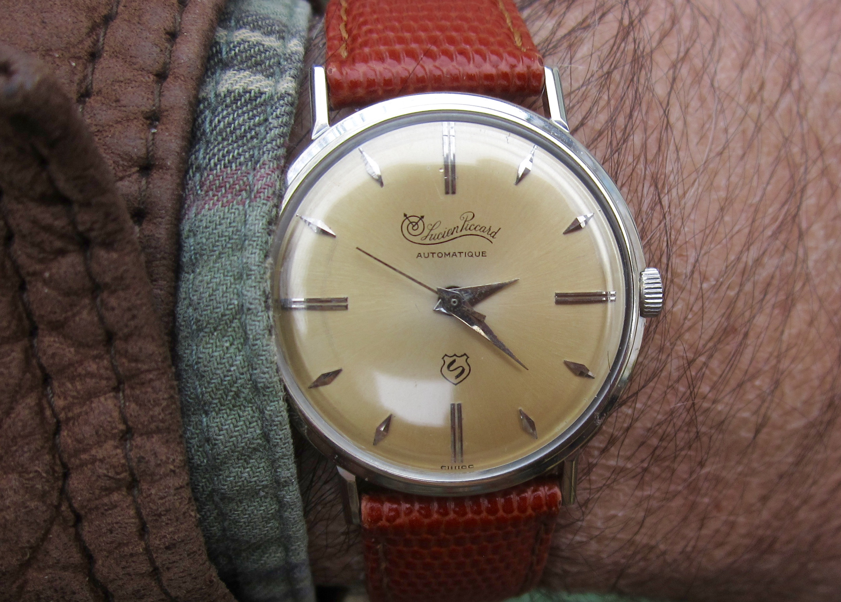 Vintage Lucien Piccard doesn't get much love here on the Forum and I've not worn this late 1950s example in over a year. It got off into a watch case I forgot about. Still, it features a decent A. Schild automatic movement and I like its solid white gold case which sort of compliments the deep freeze that's descending over the northern half of Texas. Some piffling snow flakes were falling as the photo was taken.