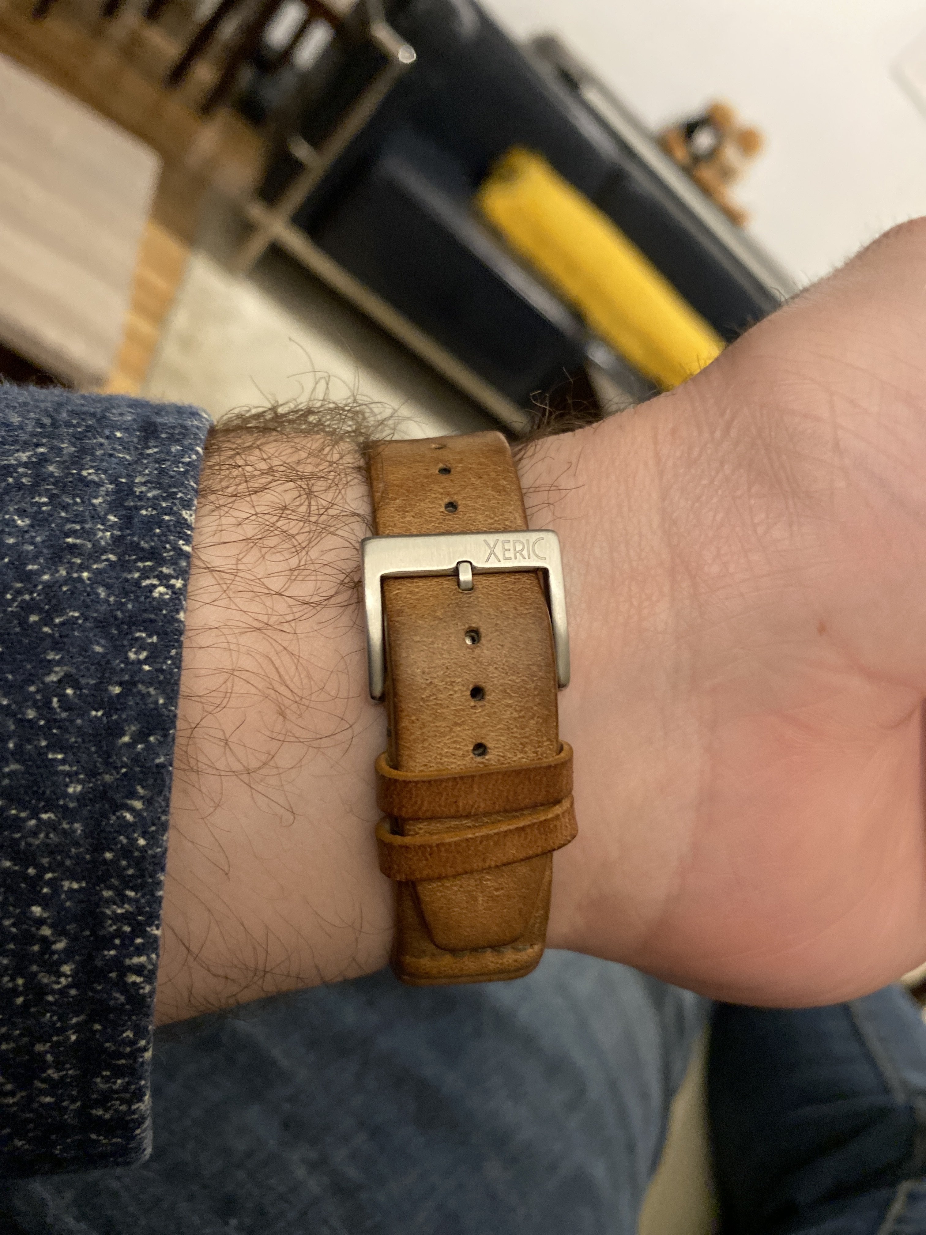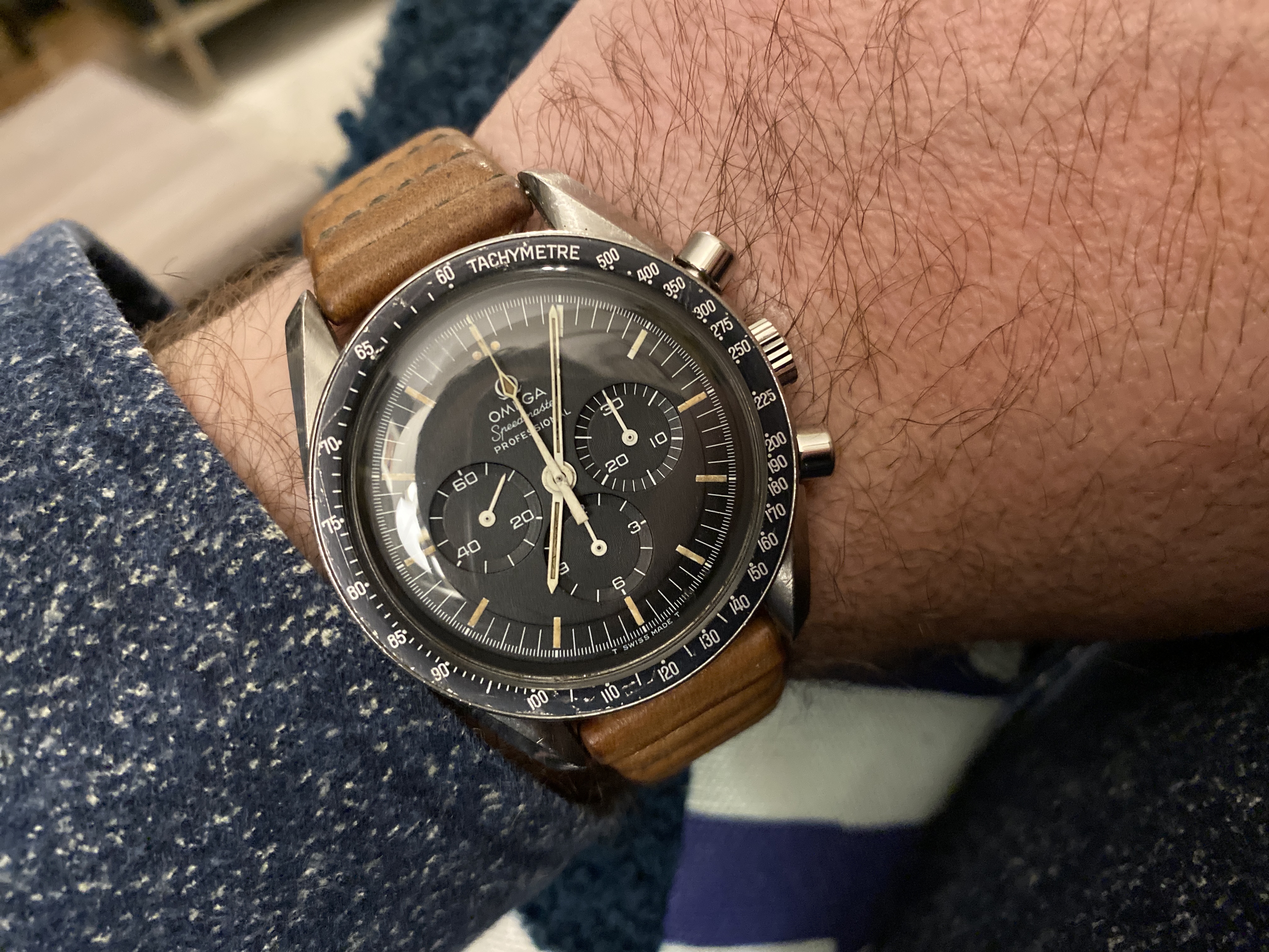 Been wearing my 145.022-71 with step dial that I got this week. Spent about an hour bleaching and then aging a new xeric strap trying to match the lume.