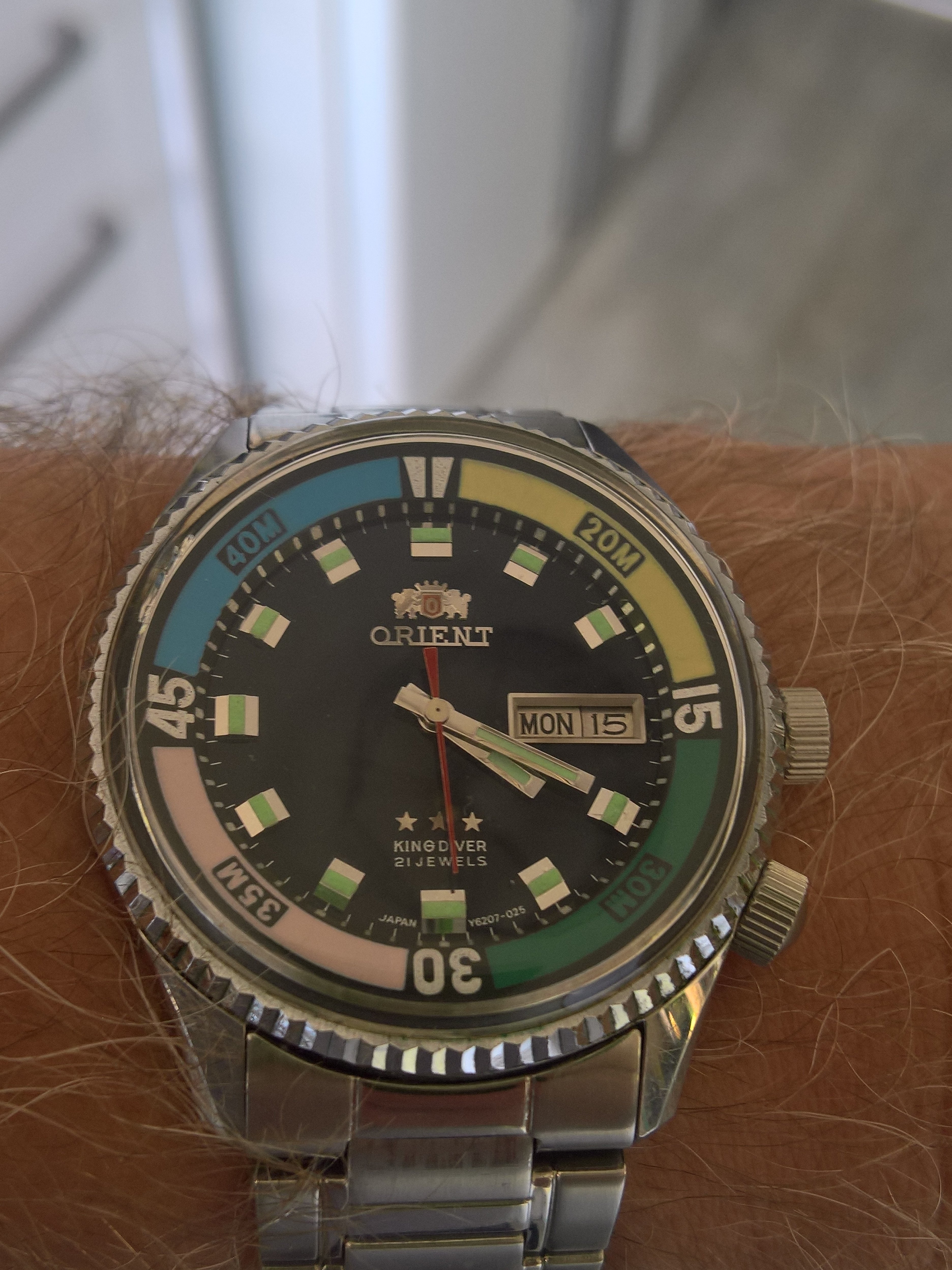 Date and time got whacked out a couple of days ago when the temperature display on Wendy's cook book shelf was knocked off and I'm too dumb to know how to reset it so hung a watch on it for date/time display.
