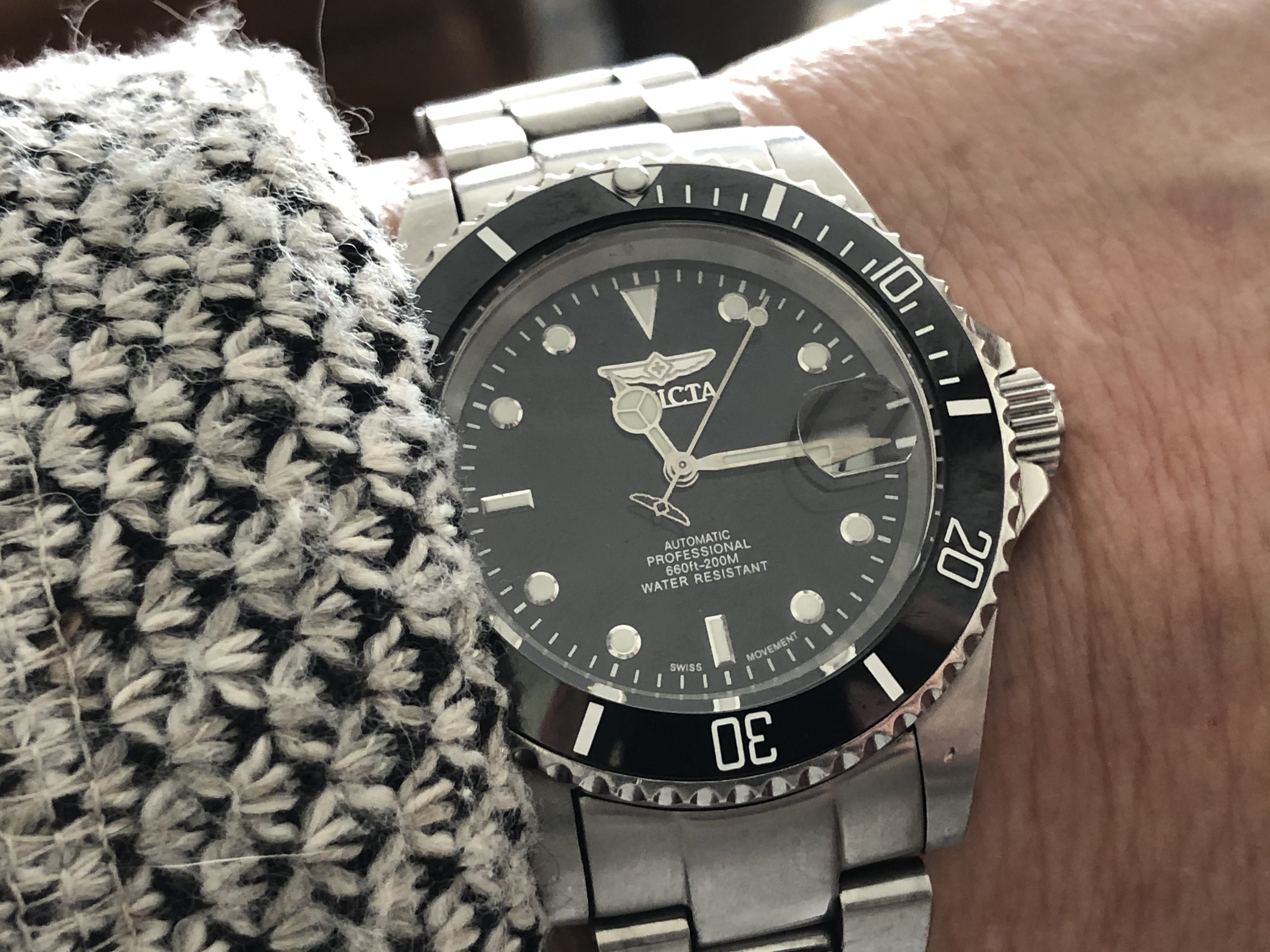 I let my two dogs, Fergus and Charlie, out this morning as usual to “do their business”. Not so usual, actually a first, Charlie returned carrying a deer’s head. I now need to tramp out in the snow to find the rest of the deer and remove it so if doesn’t become the luncheon buffet for Fergus and Charlie. The right tools for the jobs....an indestructible ETA 2824-2 powered Invicta ref. 9937, a pickaxe and a chainsaw, as the deer is undoubtedly frozen in the ice and snow...