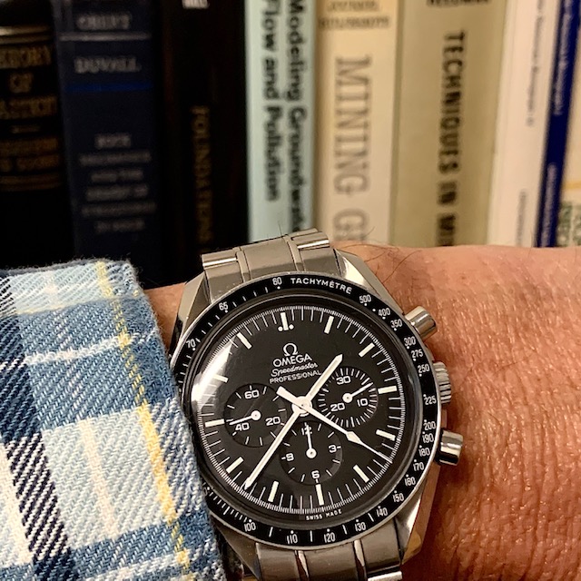 An afternoon shift into full-on professional mode, with the Speedy Pro as companion. I'm doing mandatory, annual safety training (online this year) which has to add up to at least 8 hours -- the Speedmaster is tracking my cumulative training time.