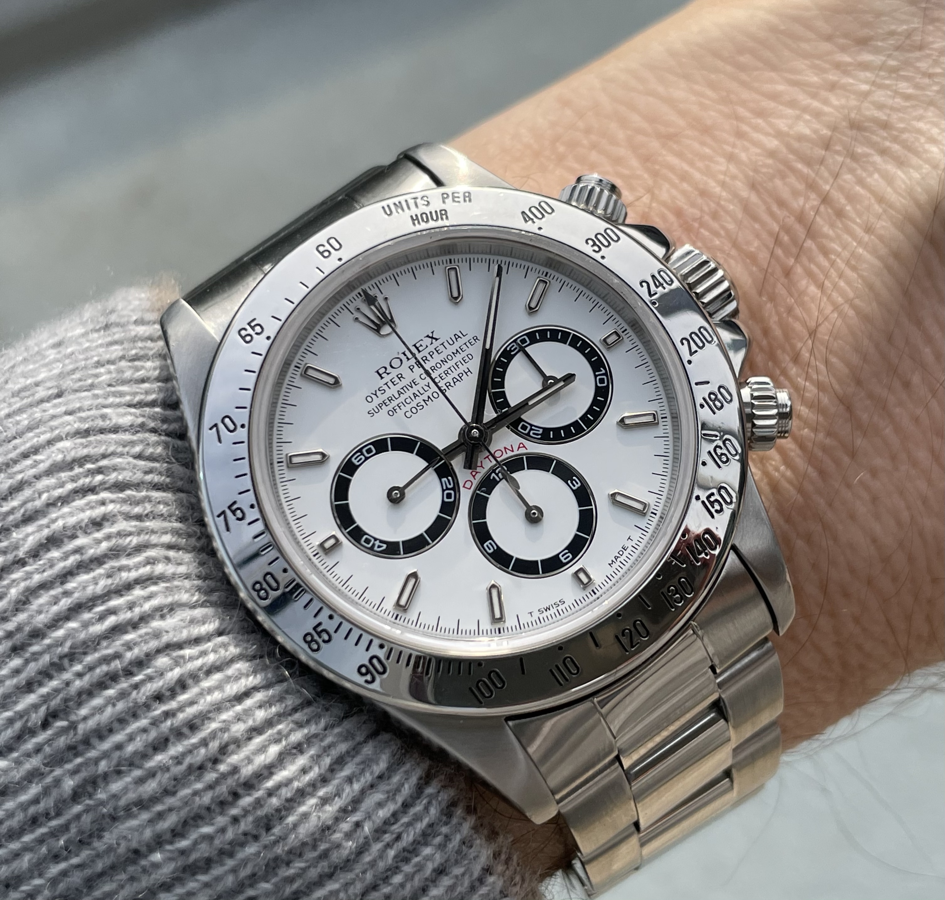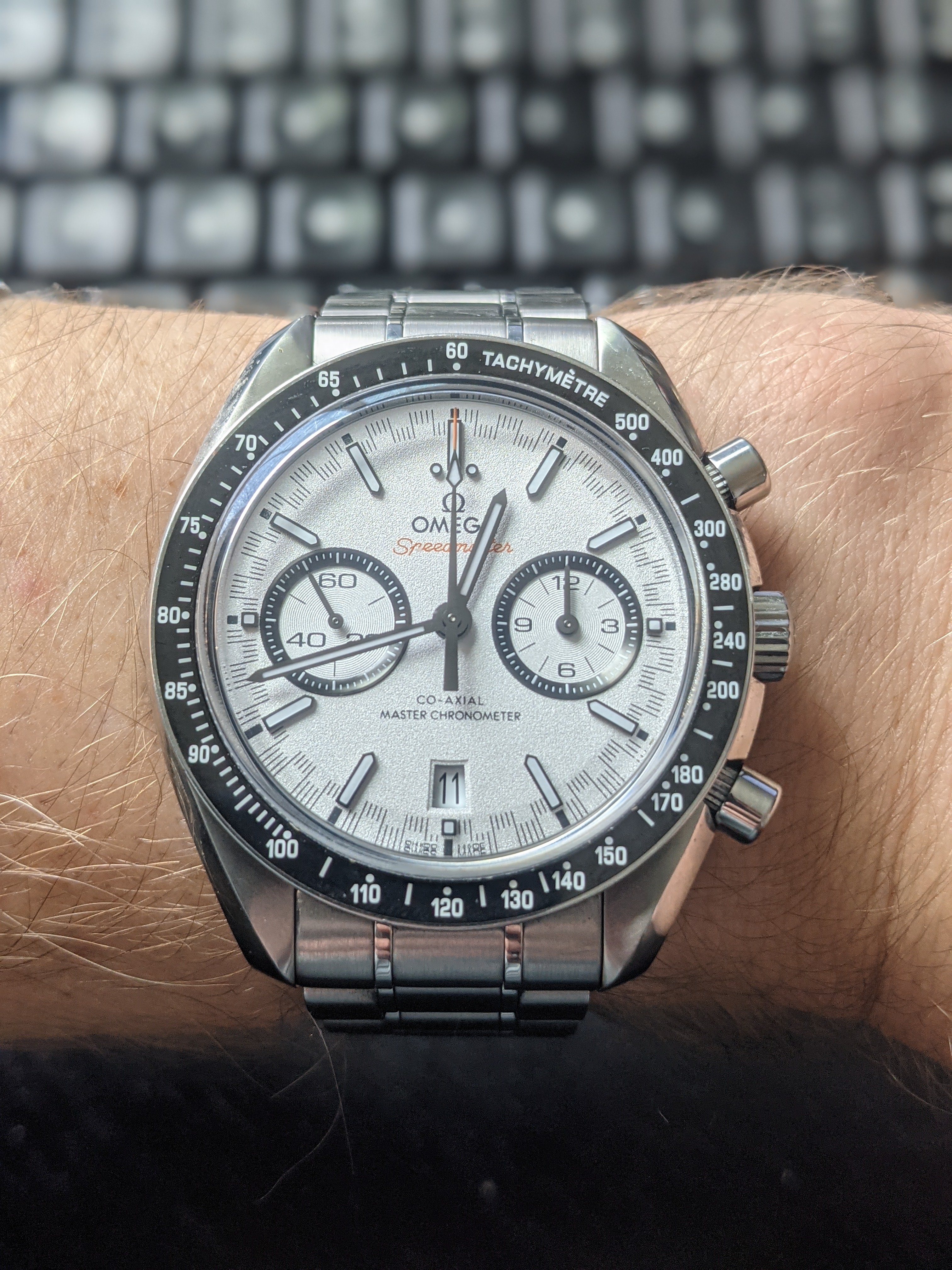 Posts 452 Likes 1,027 JetLinks ·Mar 11, 2021 6-months in and still loving my big white racing Speedmaster! Considering a strap change soon to either black codura or grey alligator.... Edited: Mar 11, 2021