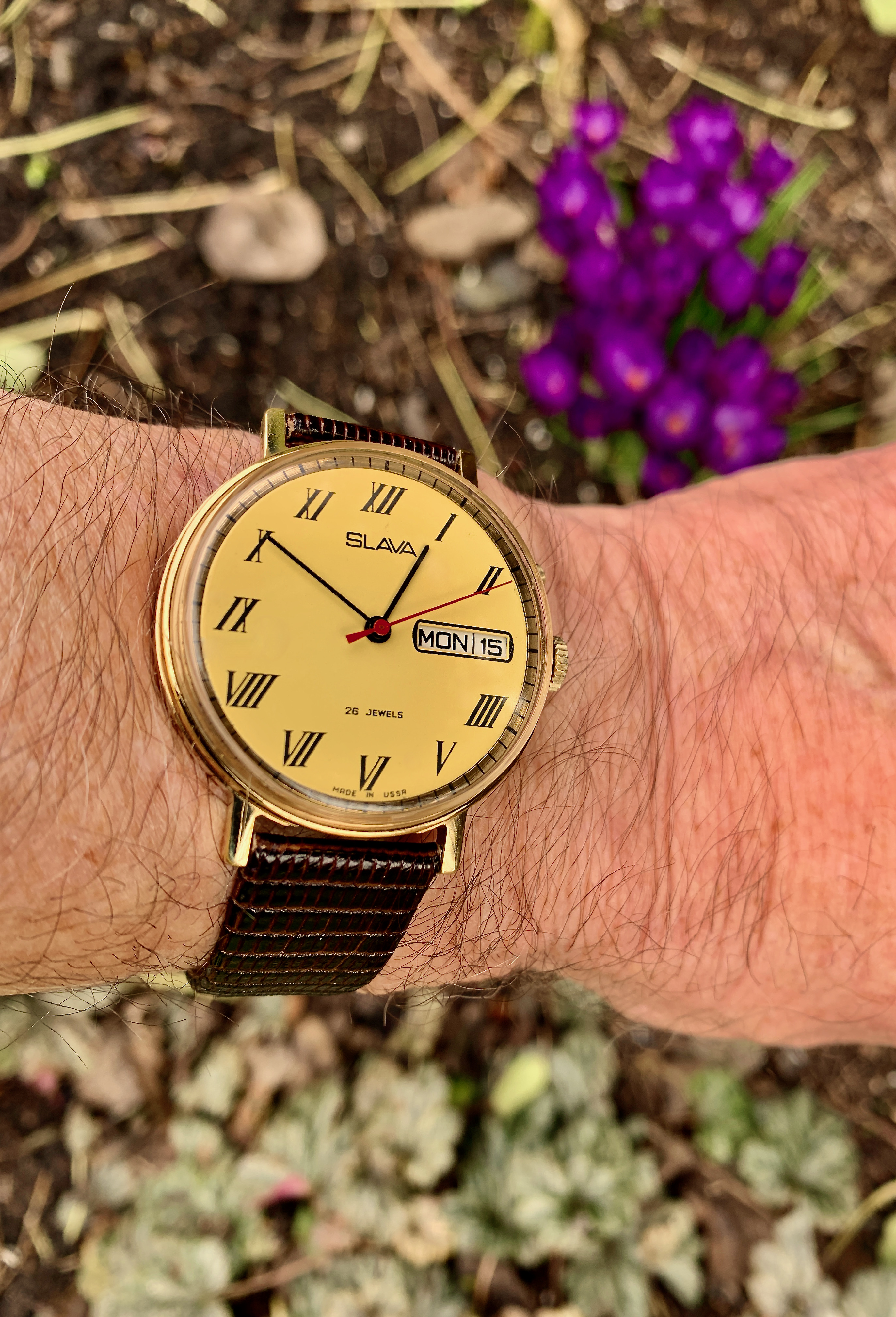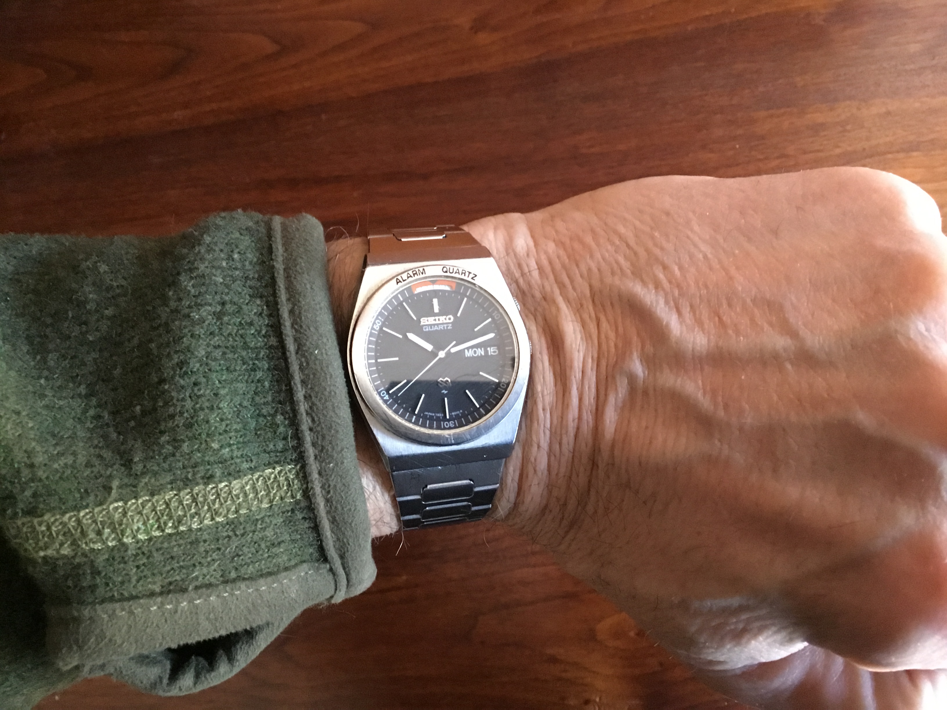 Today is my 65th birthday, so I wanted to wear a watch that showed me the date. I chose my old Seiko Alarm from 1979, which I bought for myself when I got my first real job after college.