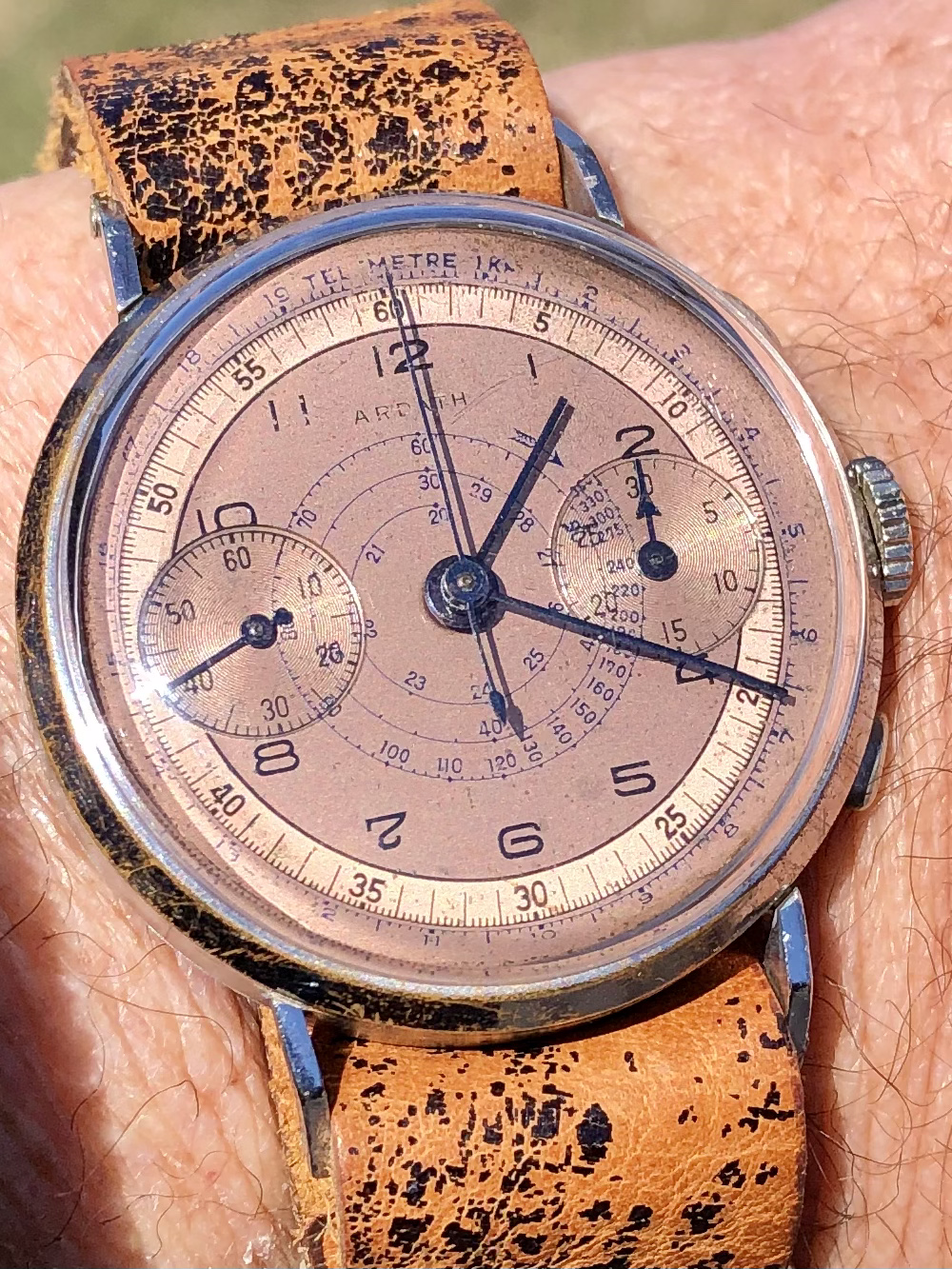 Posts 3,784 Likes 20,201 ahsposo 路Mar 20, 2021路Most fun screen name at 惟F Larry S Back from a month in the spa. Full overhaul and new mainspring. The Ardath plays with light. What a lovely old watch. The distressed strap is a nice touch. Dibs.