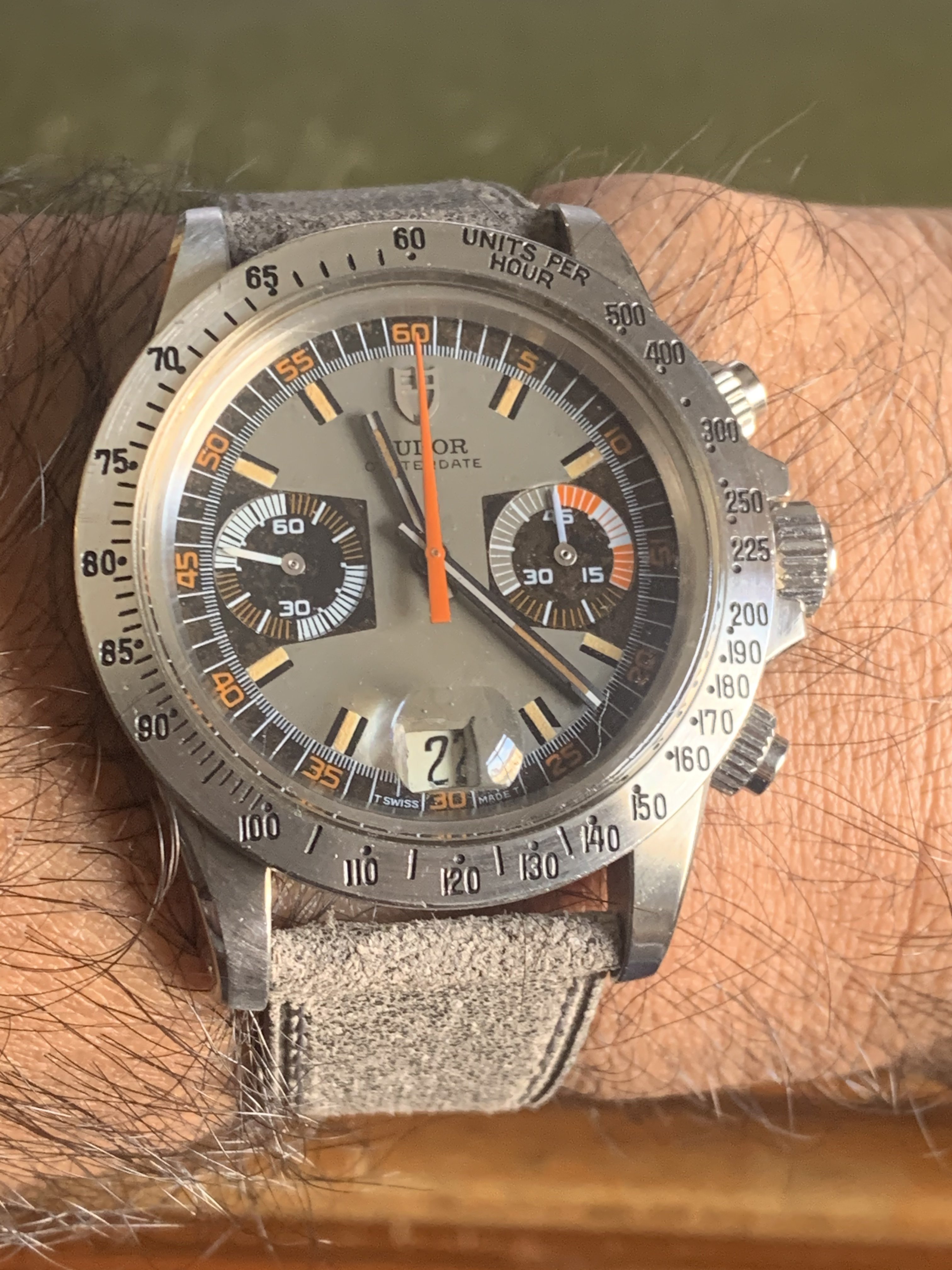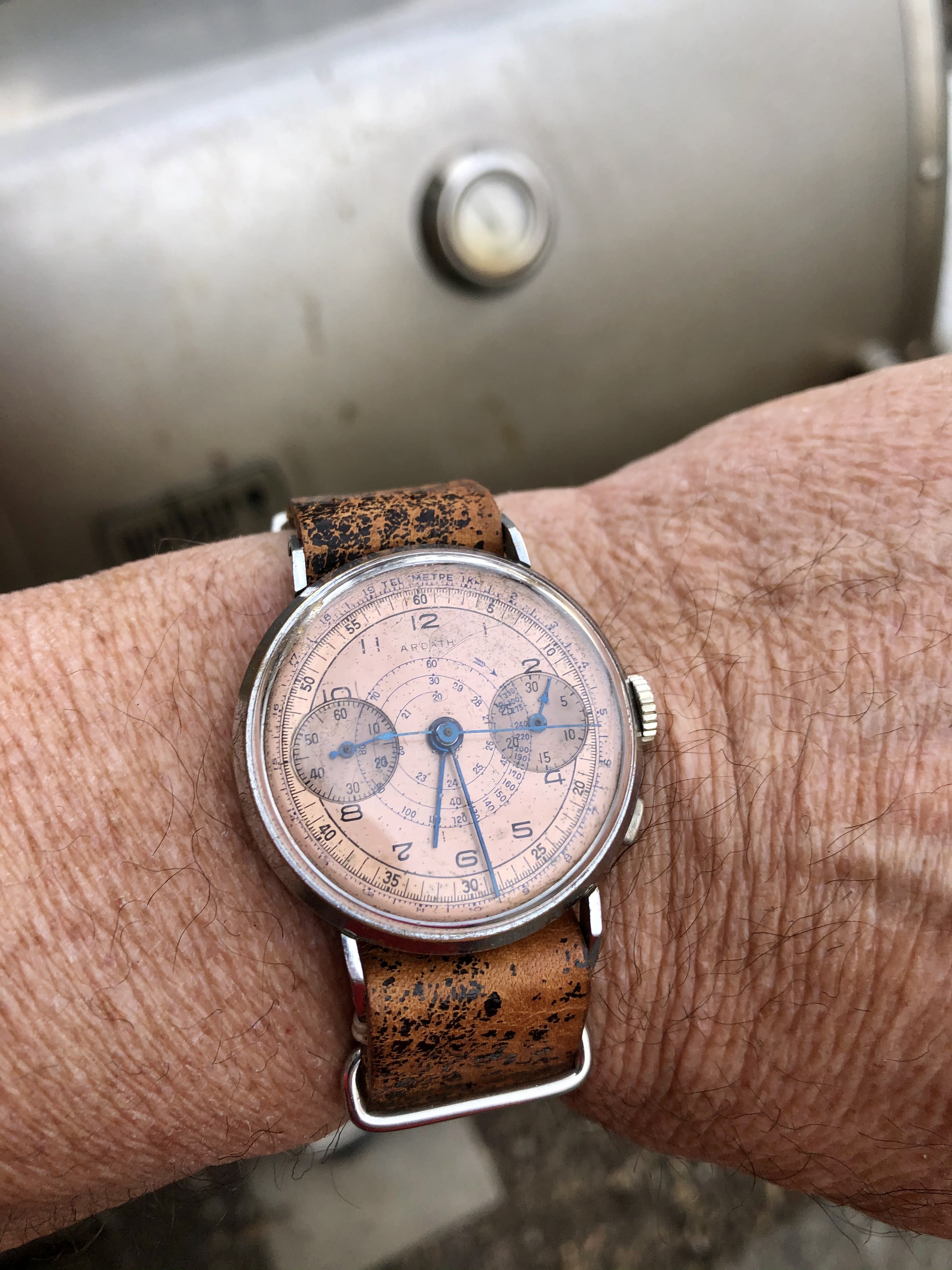Posts 1,315 Likes 5,775 rbob99 ·Mar 22, 2021 bristnj Glorious evening! - 1966 LeJour Yachtingraf (by Yema) Ref. 9312 - Valjoux 7730. Wow! The condition is superb. That's a beauty!