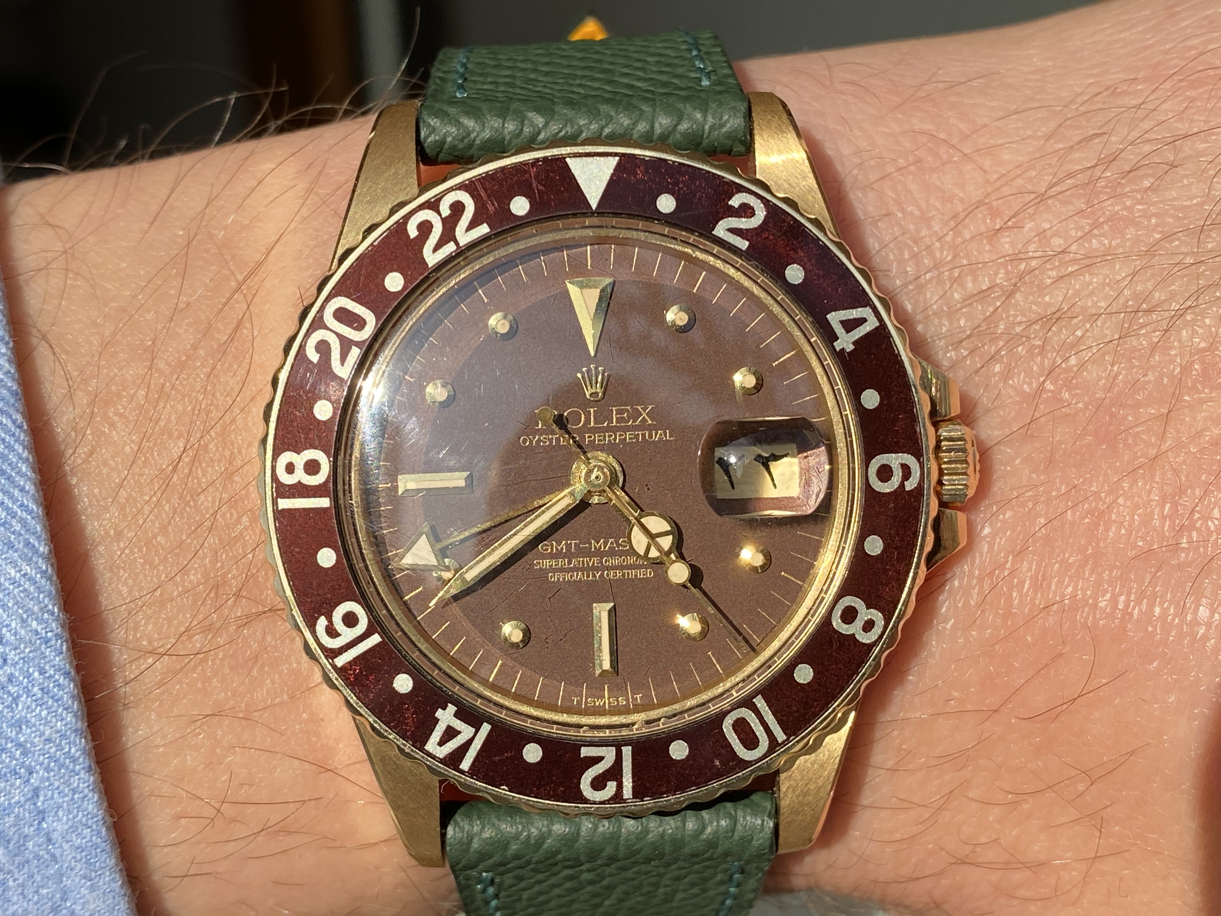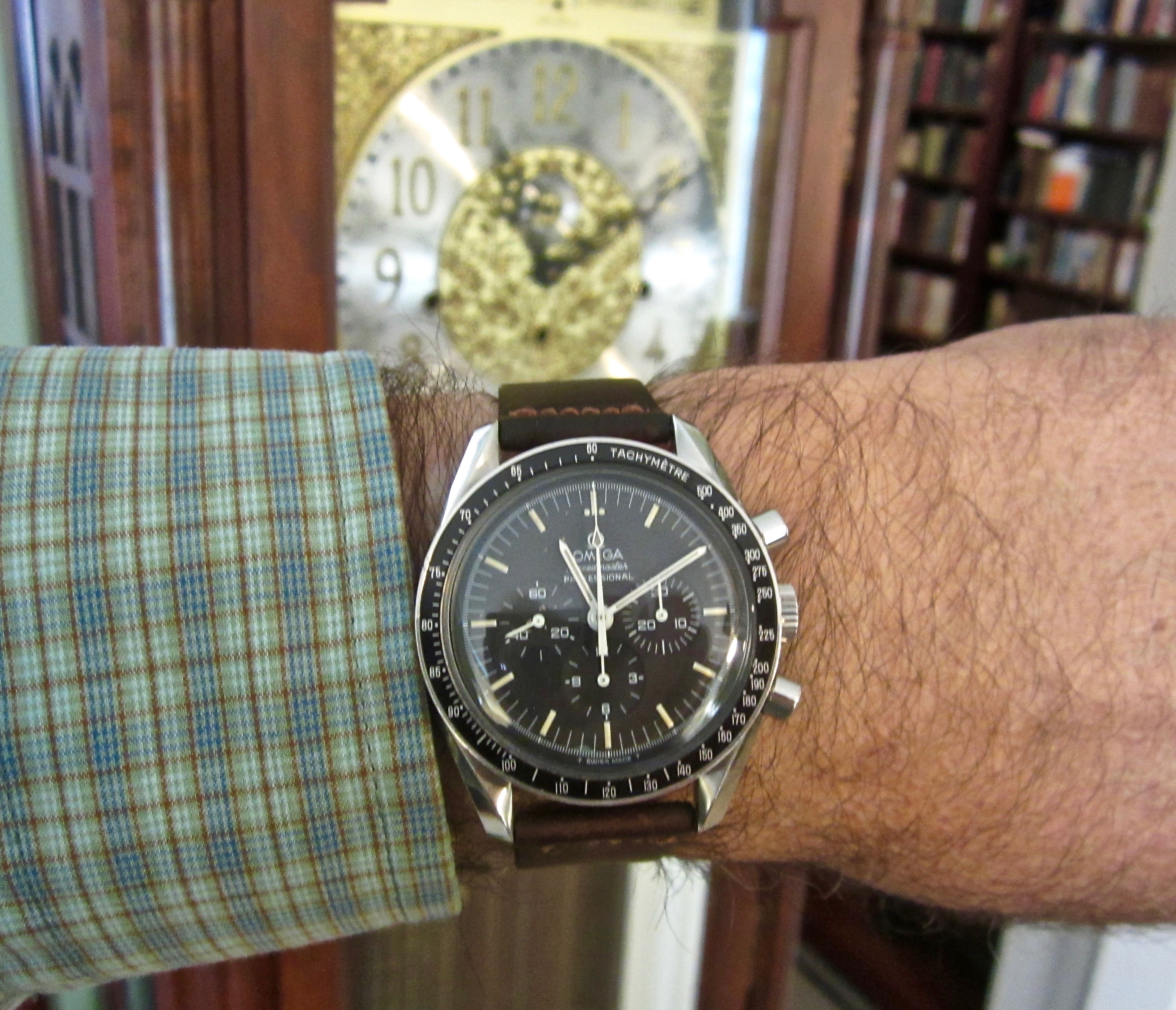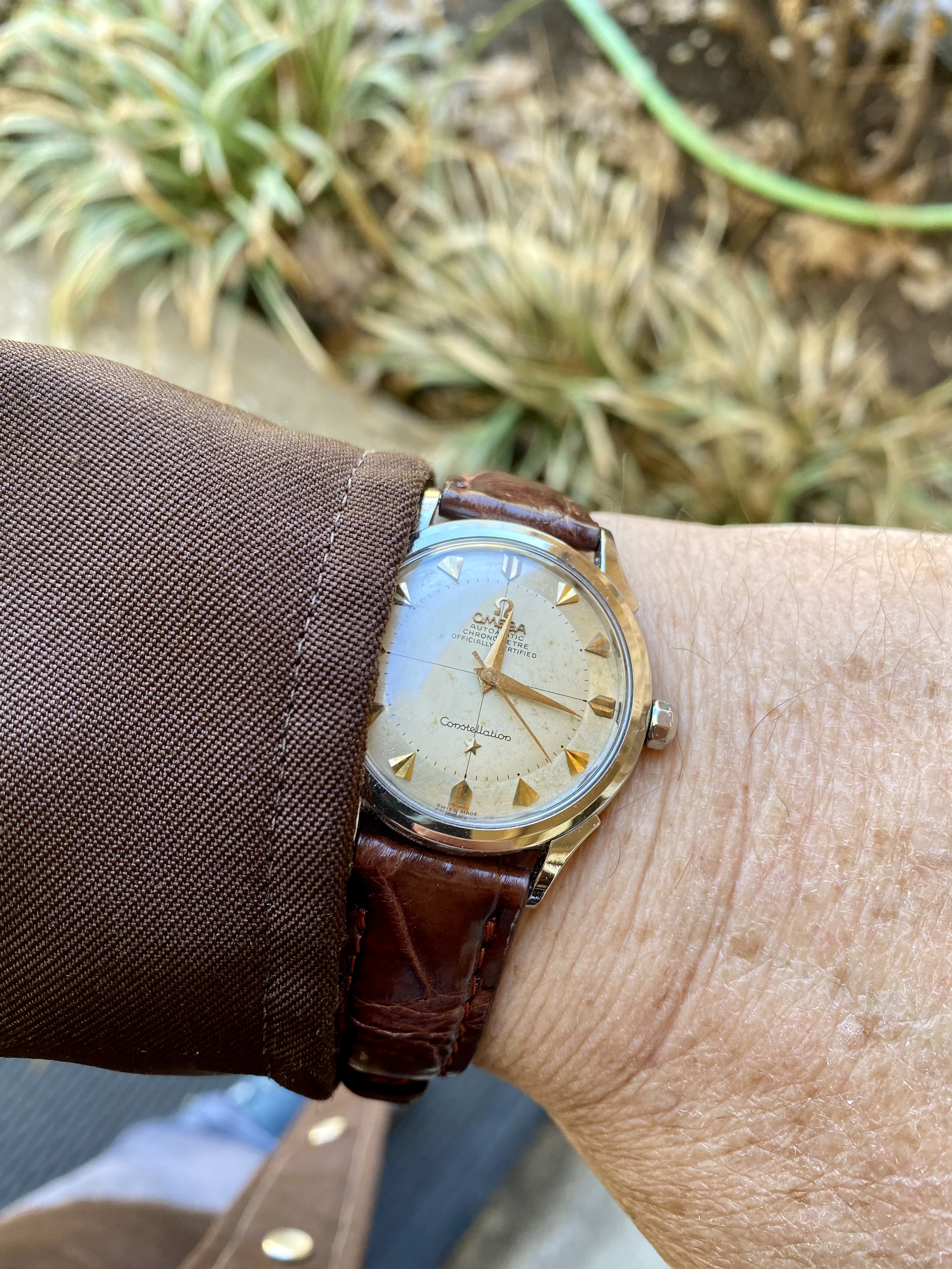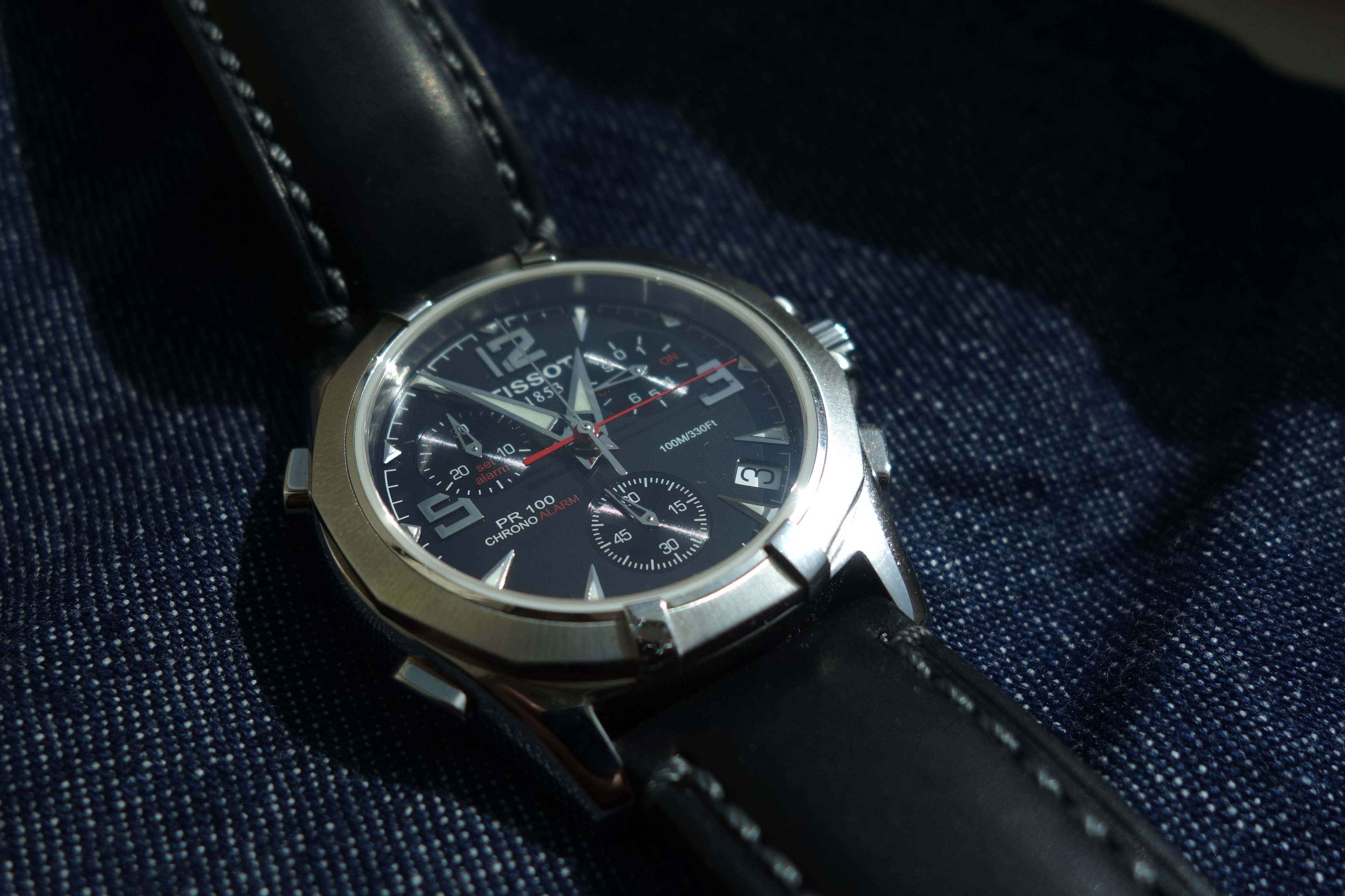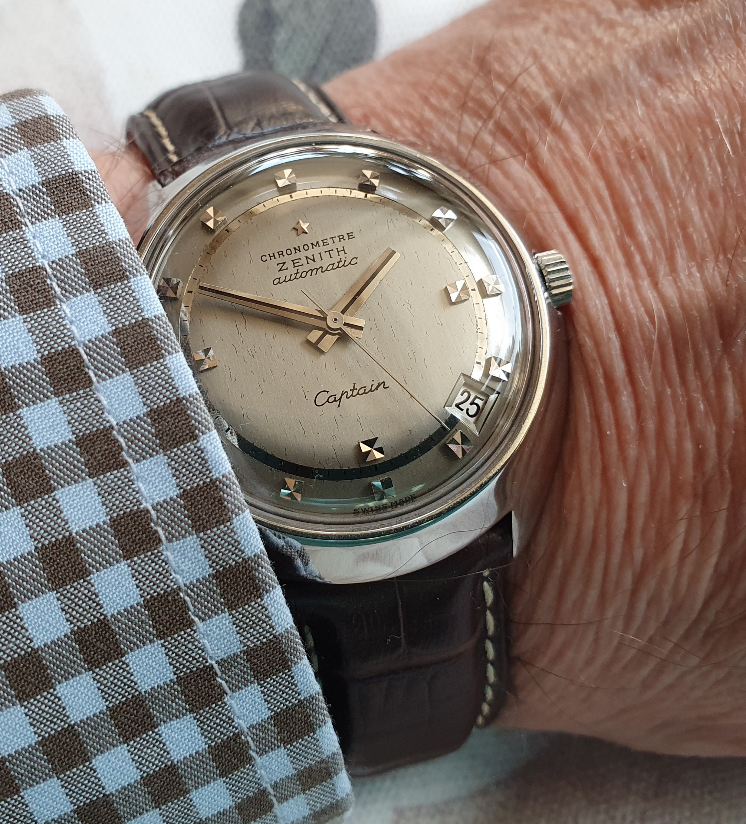 1942 mono-pusher Bulova chronograph today. Powered by in-house cal. 10AH, reputed to be the smallest production chronograph movement. Pusher is integrated in the crown.