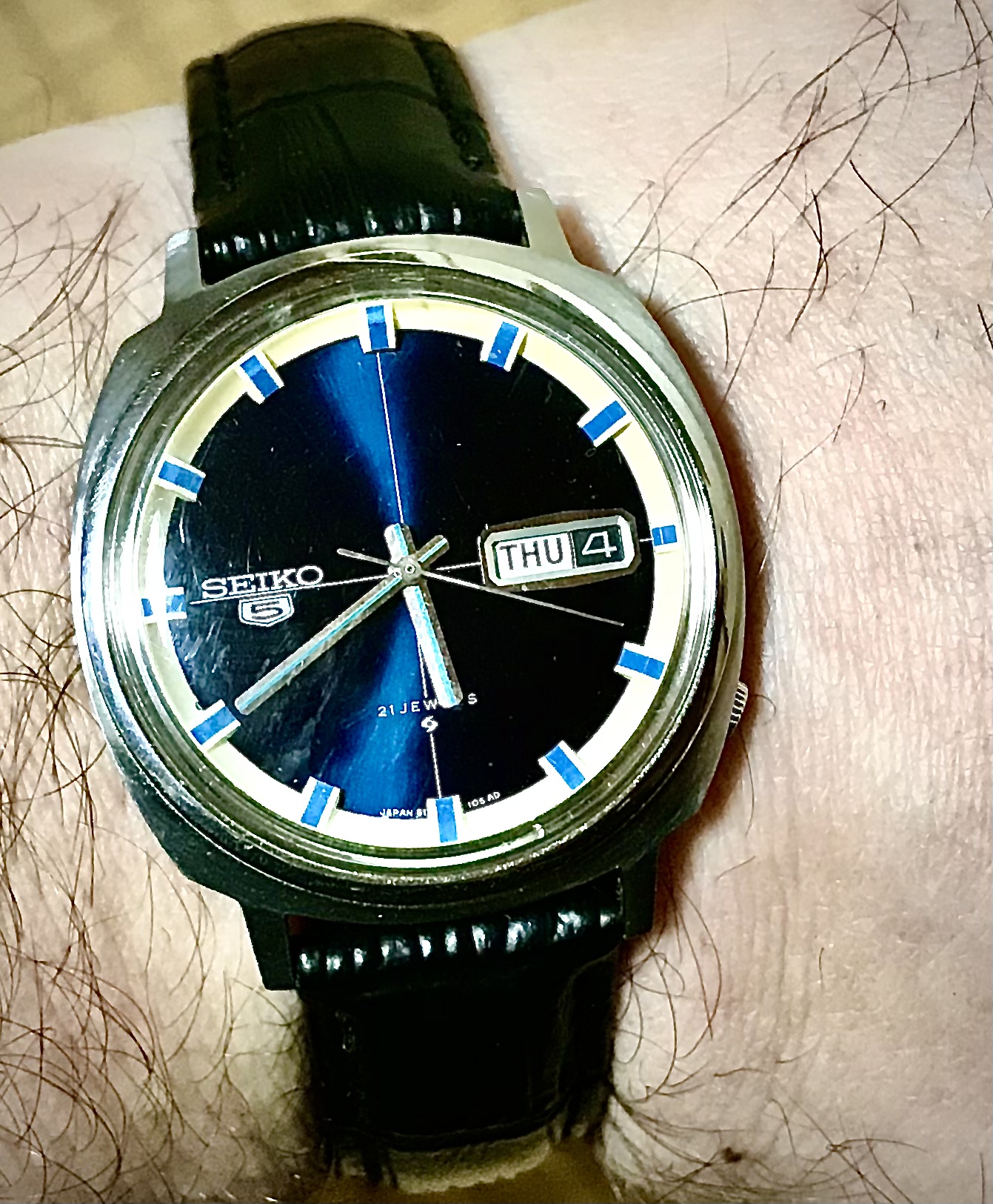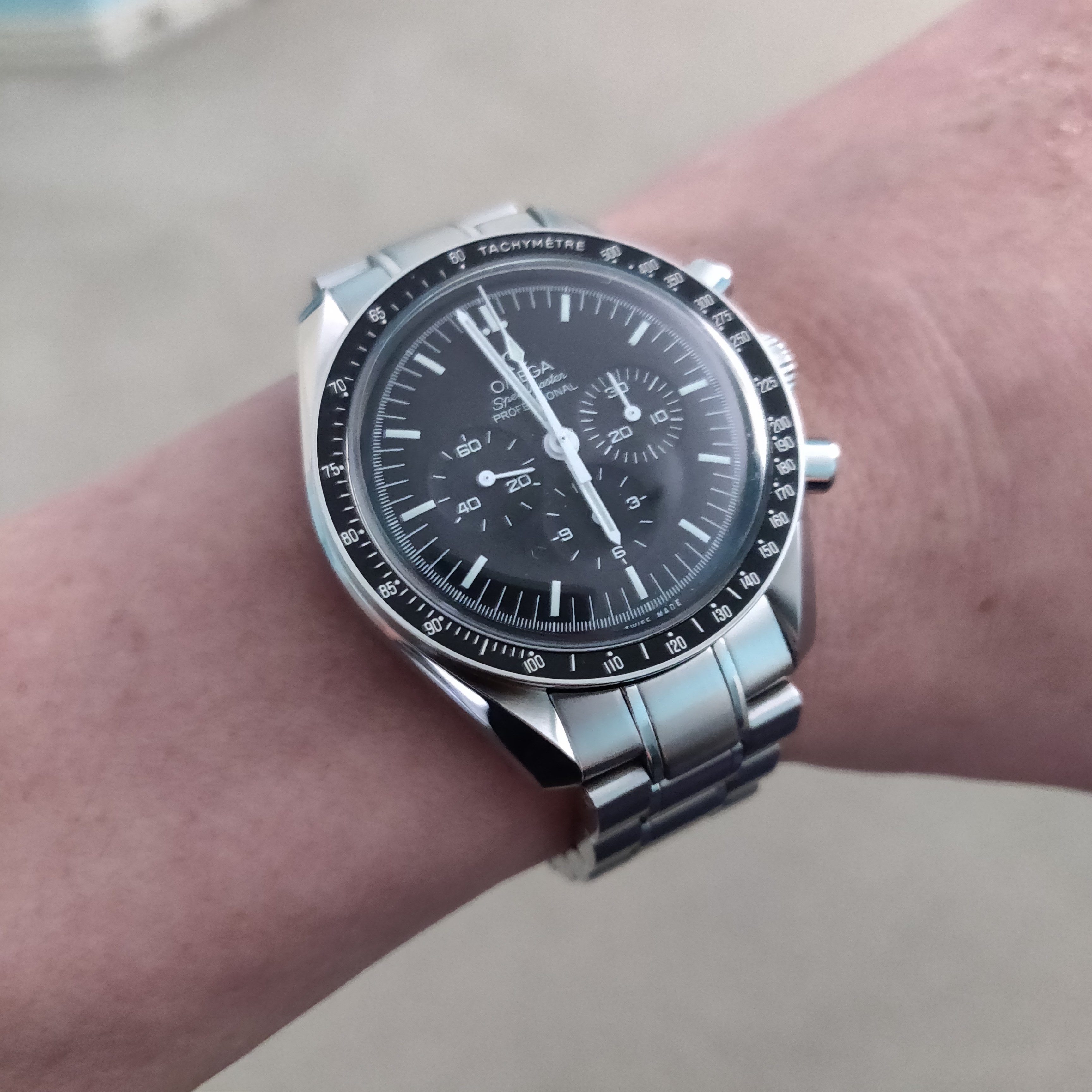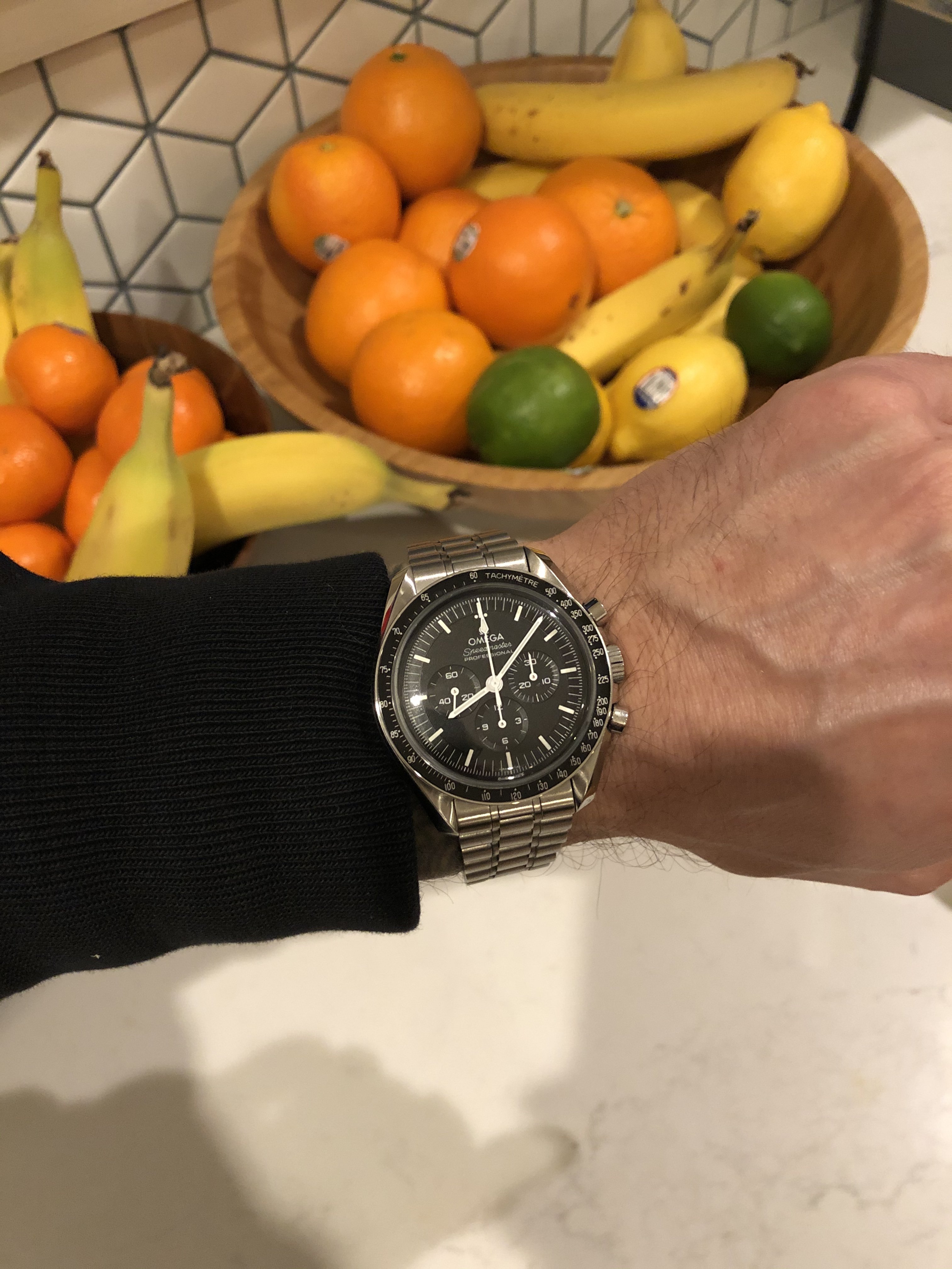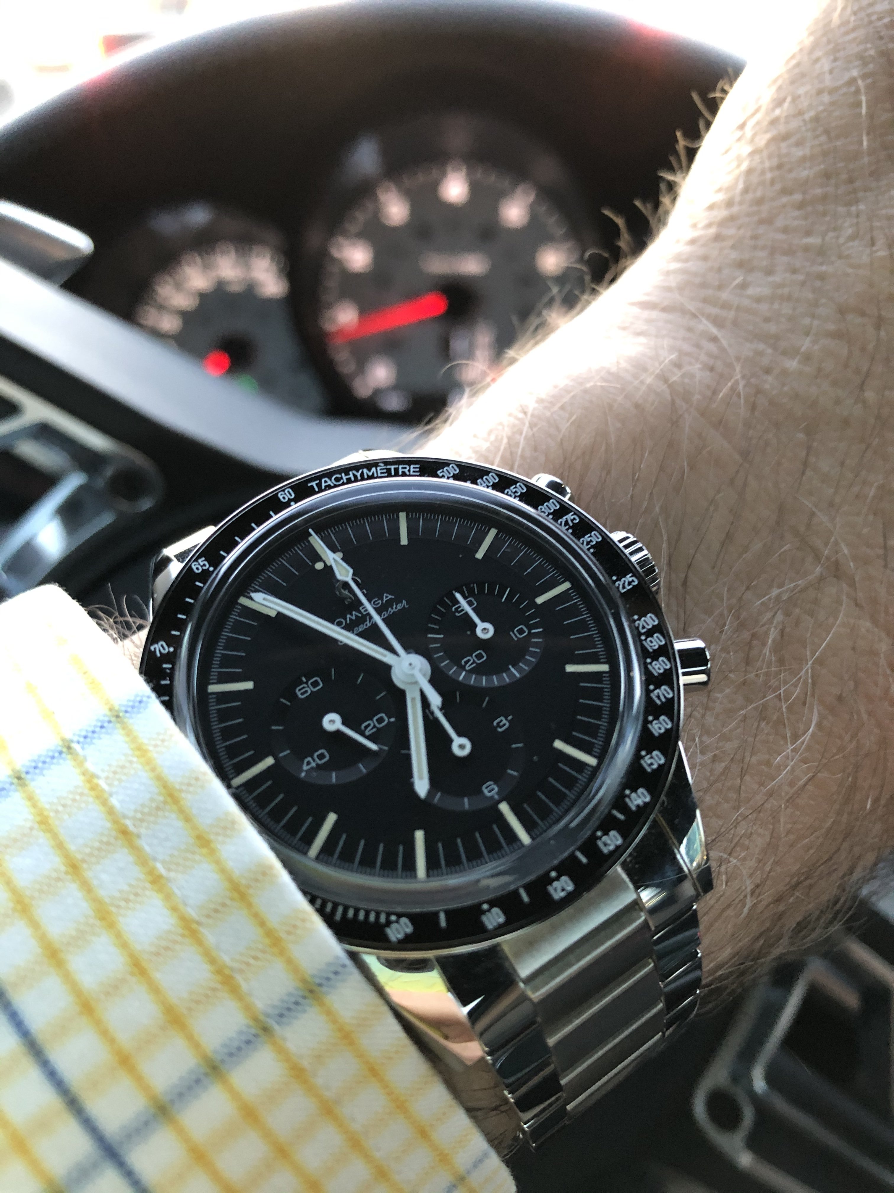Visited my Mom on her 87th birthday! Masks and plexiglass between us, but at least we were in the same room talking fairly normally. She's full vaccinated too, which is great. She was pregnant with me when my Dad and she purchased this Speedmaster in March of 1967 on a trip to Jamaica. I showed it to her and her comment was "Elle est encore brillante!" It' still shiney! She generally remembers the purchase but not much detail. Can you imagine trying to remember a purchase you personally didn't care much about from 54 years ago? I can't remember what I had for lunch!