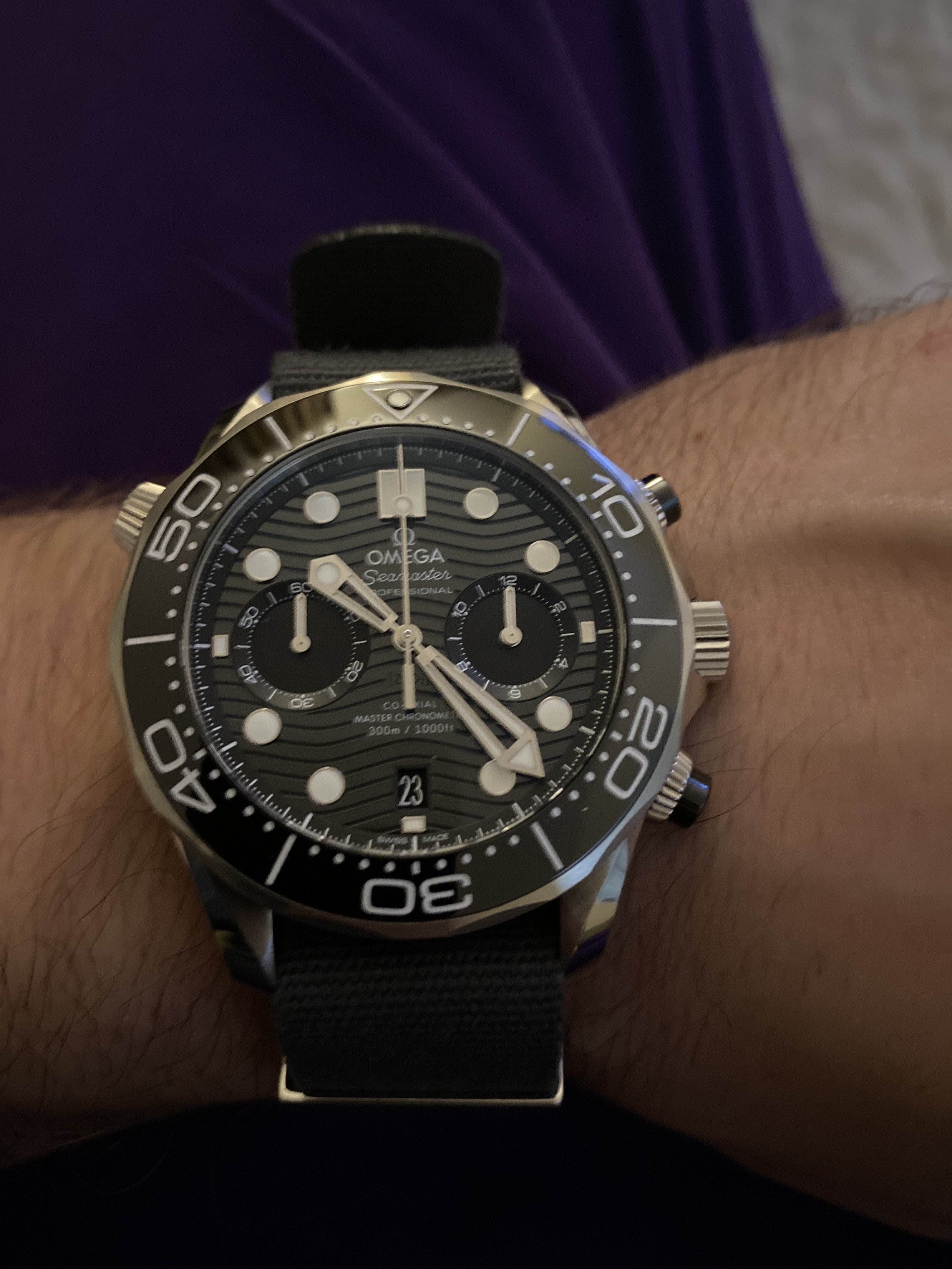 Oh and she religiously wears a titanium Seiko quartz SGG609 on Bond NATO...YaY!