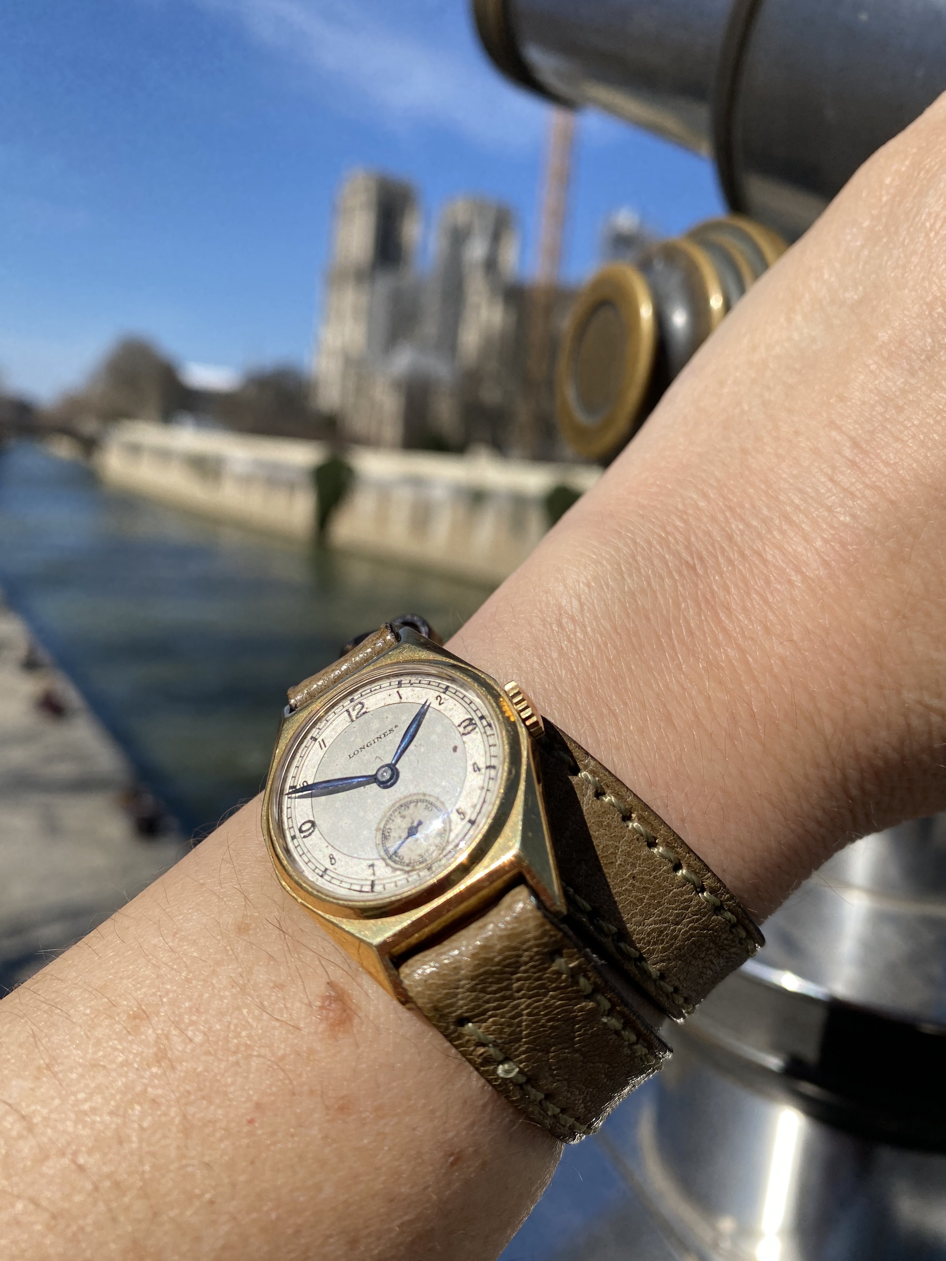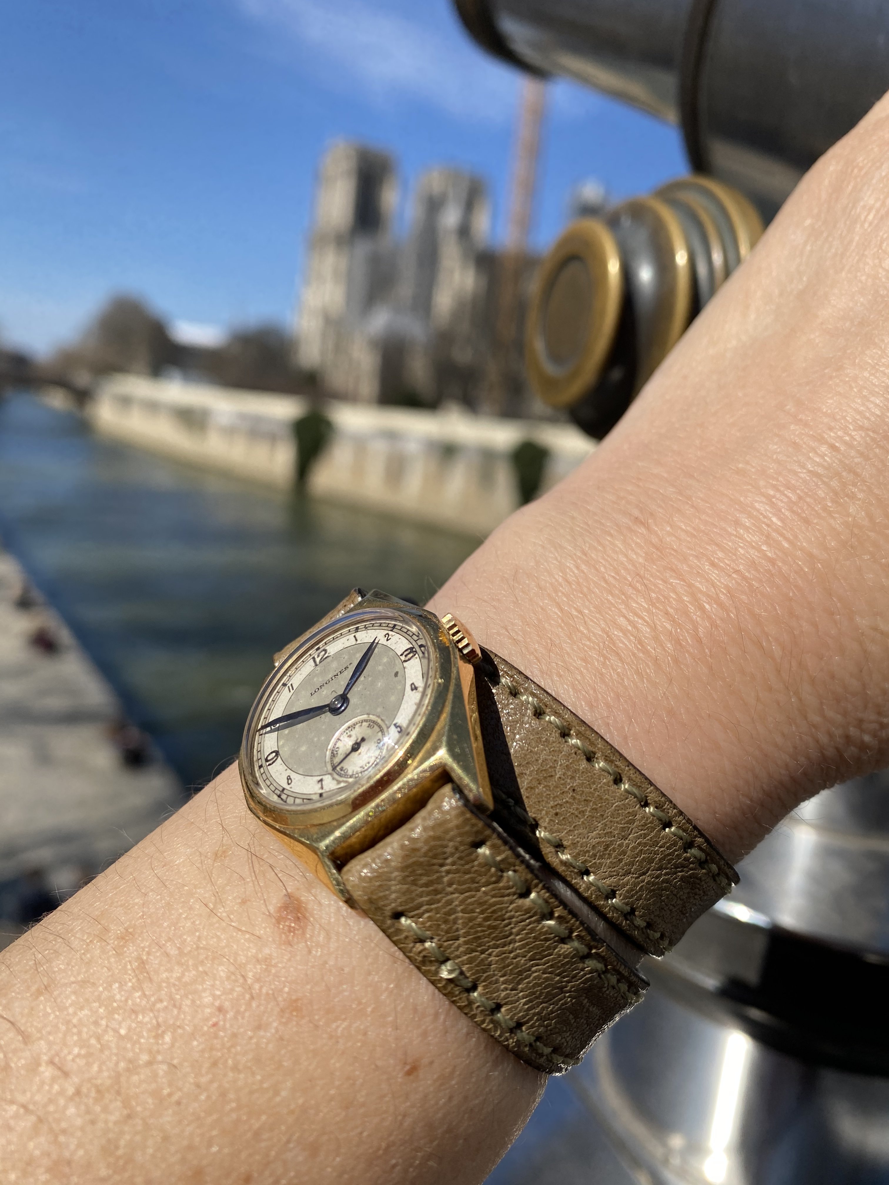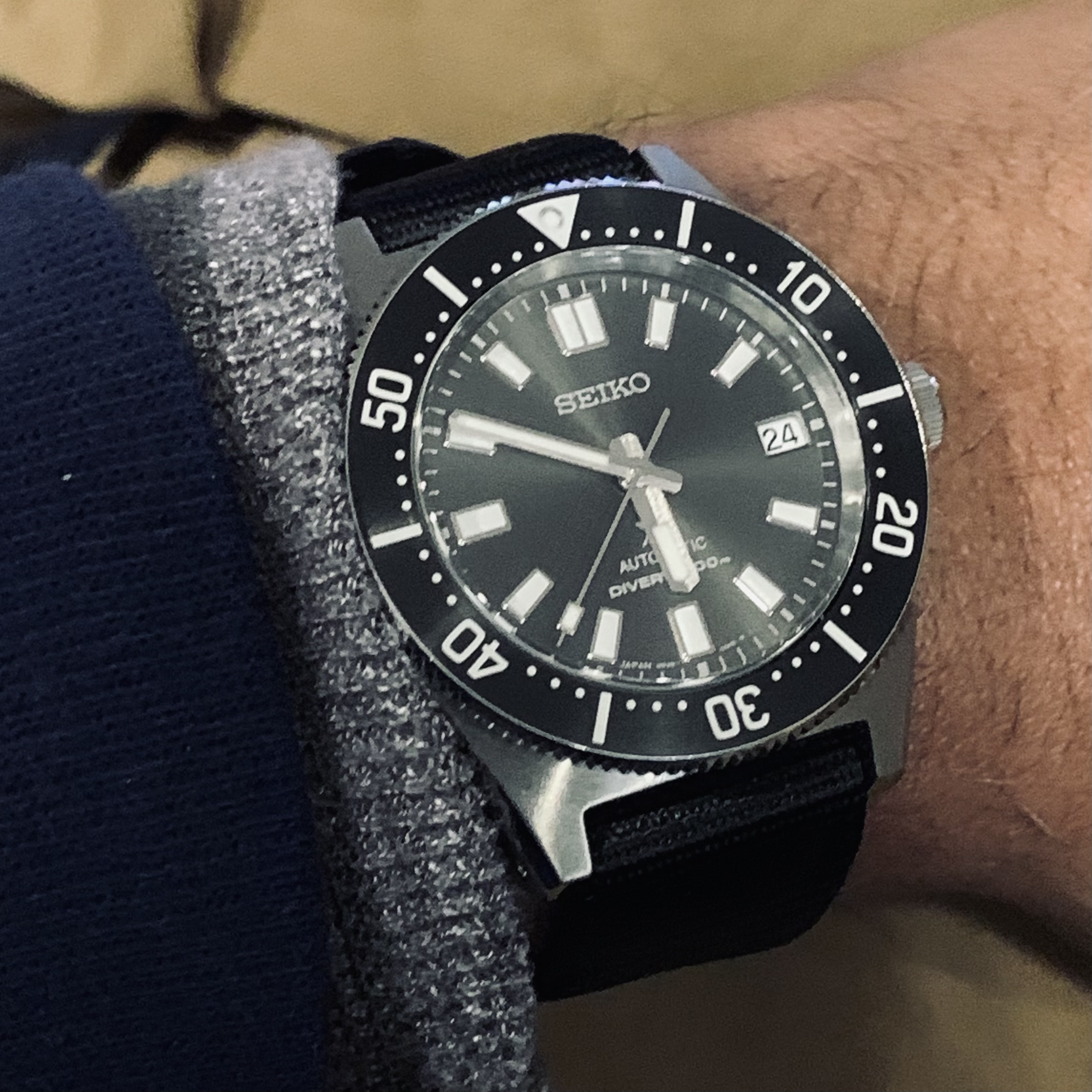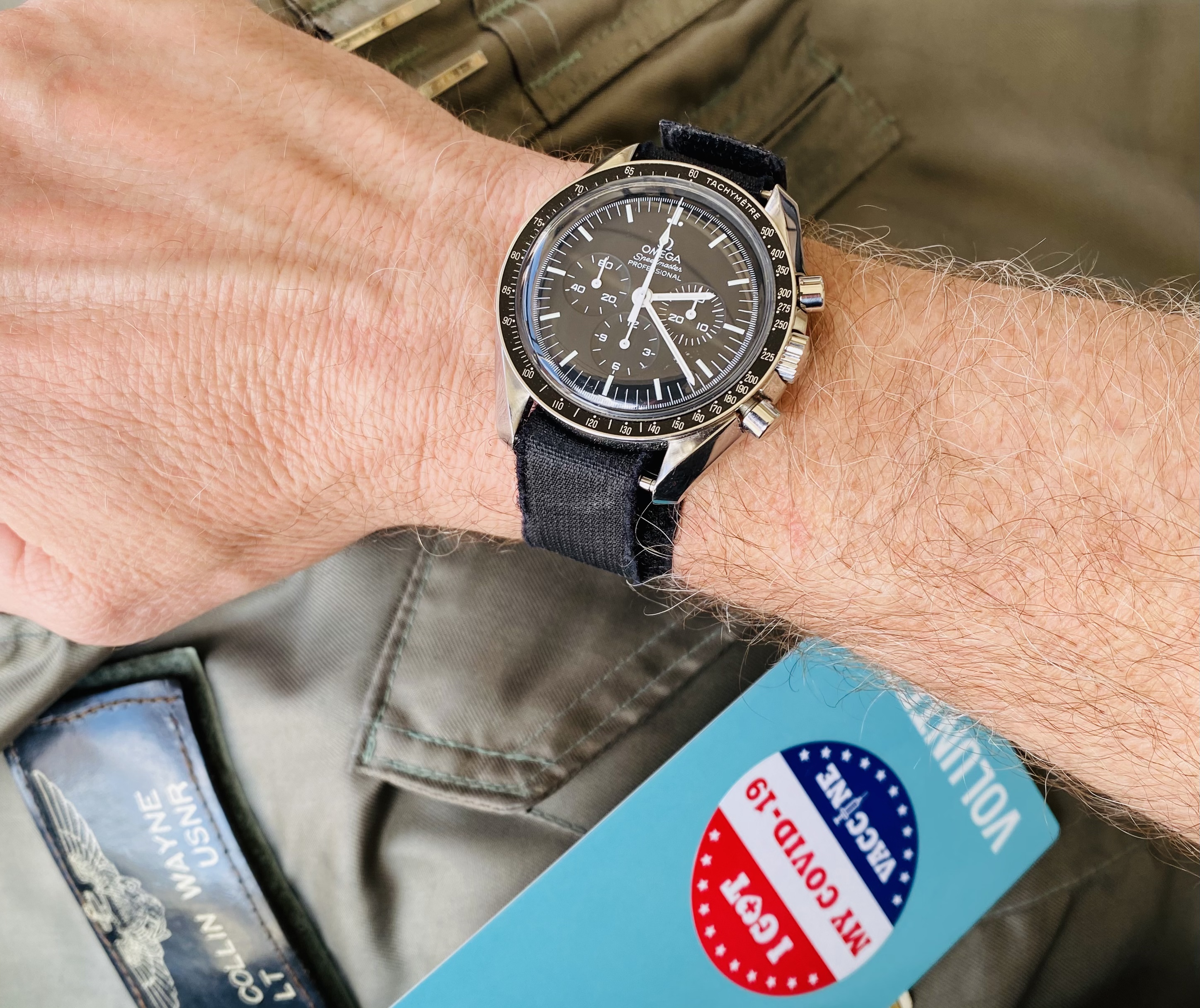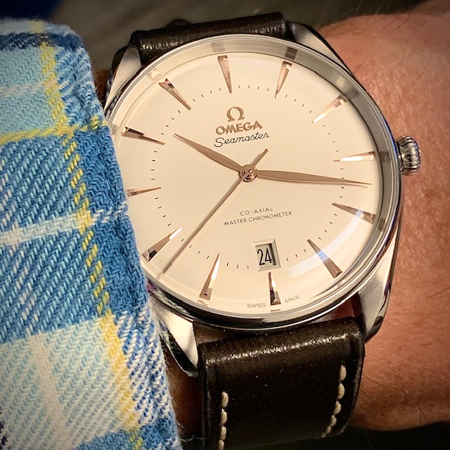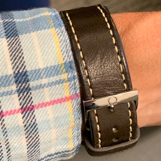A potential watch+strap combo came to mind so I decided to give it a try. Since my working-in-the-office life is still on hold this Seamaster on its original strap seemed too formal for wearing at home or around town; I want to make it a bit more sporty if possible. The candidate "sporty" strap is actually an OEM Sinn strap. To avoid keeping a Sinn signed buckle on the strap, and because the strap is not tapered, I borrowed a buckle & pin from an Omega NATO strap. The resulting combo definitely seems more casual, now it just has to pass the comfort test 馃榾