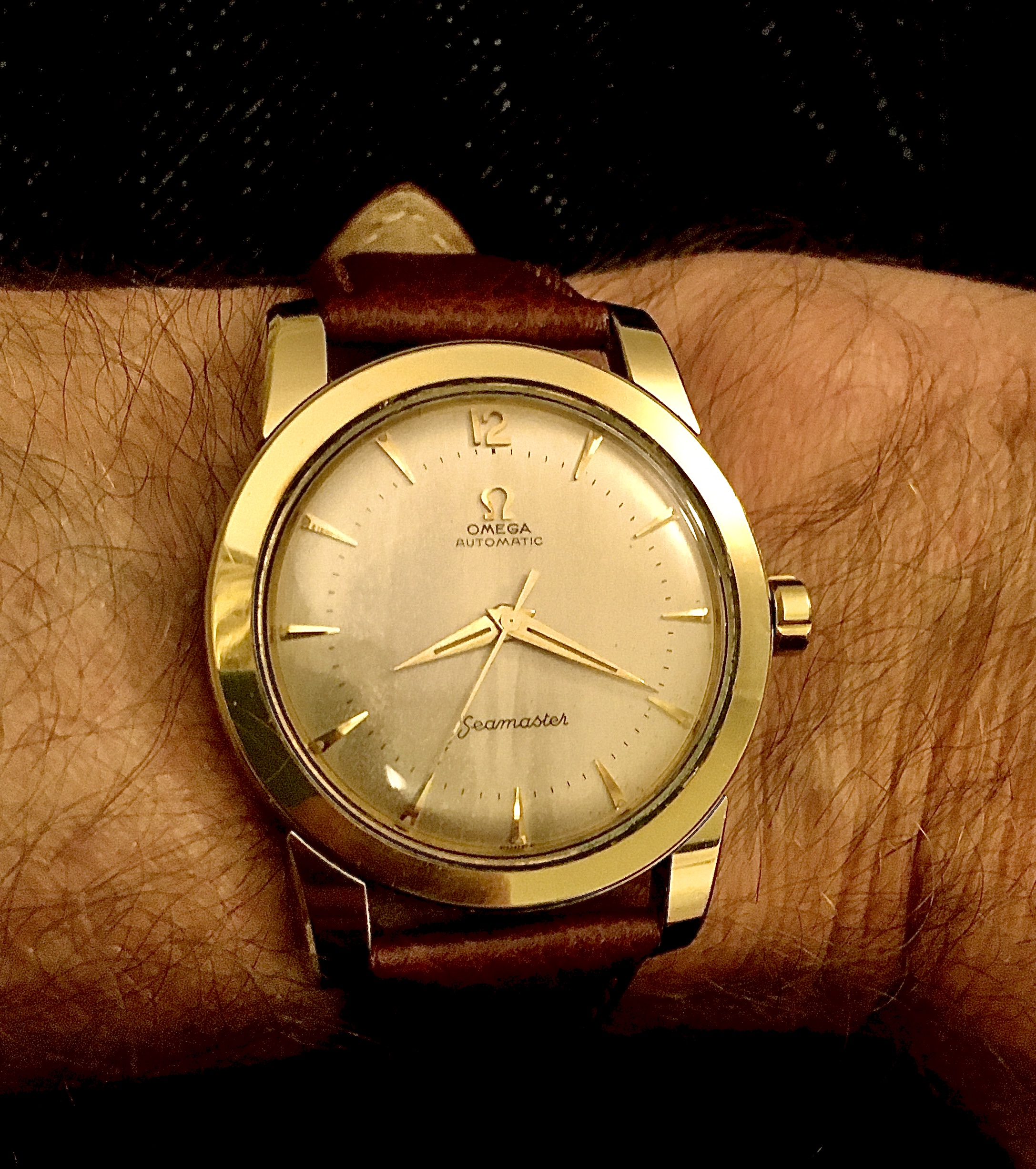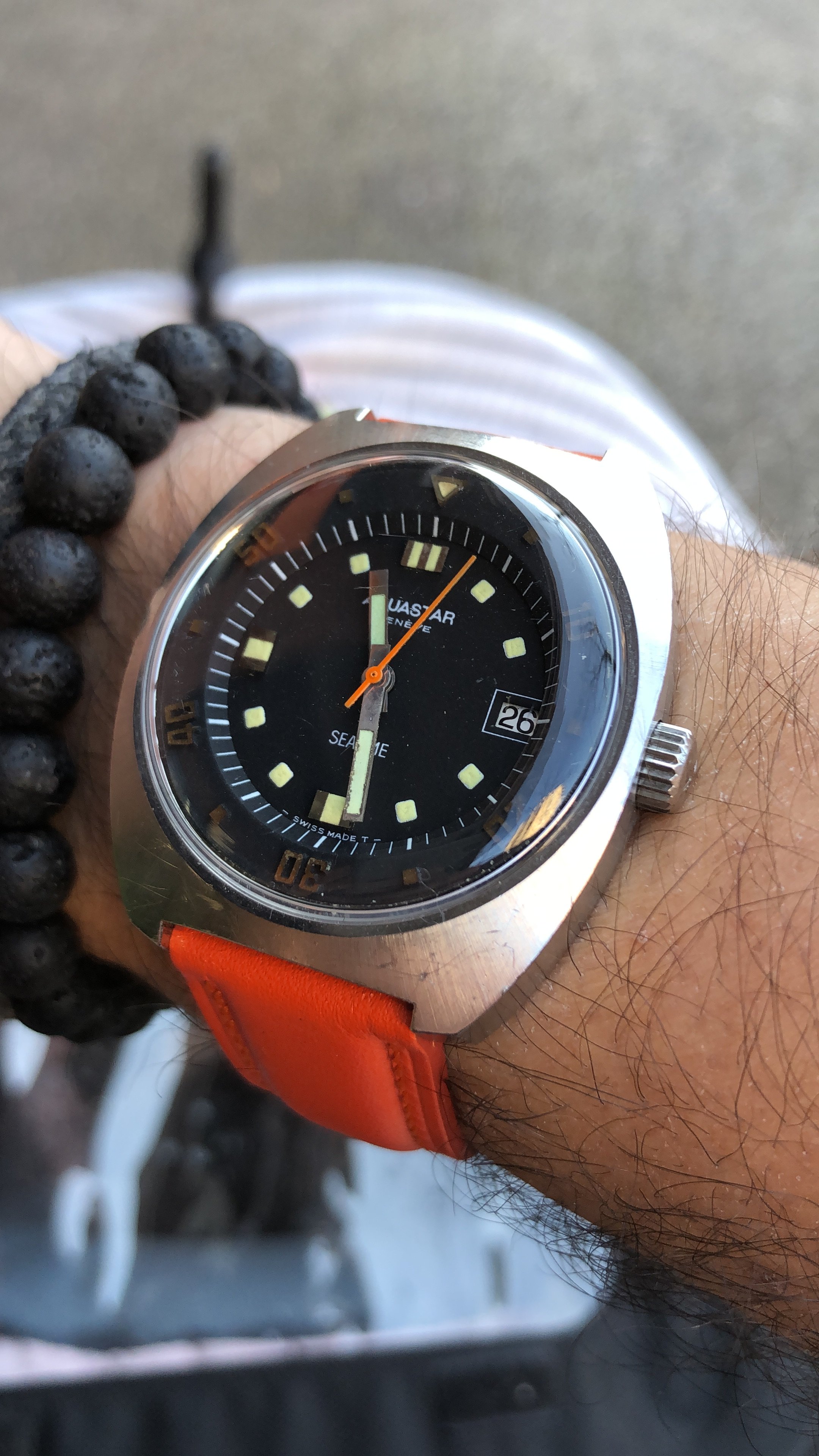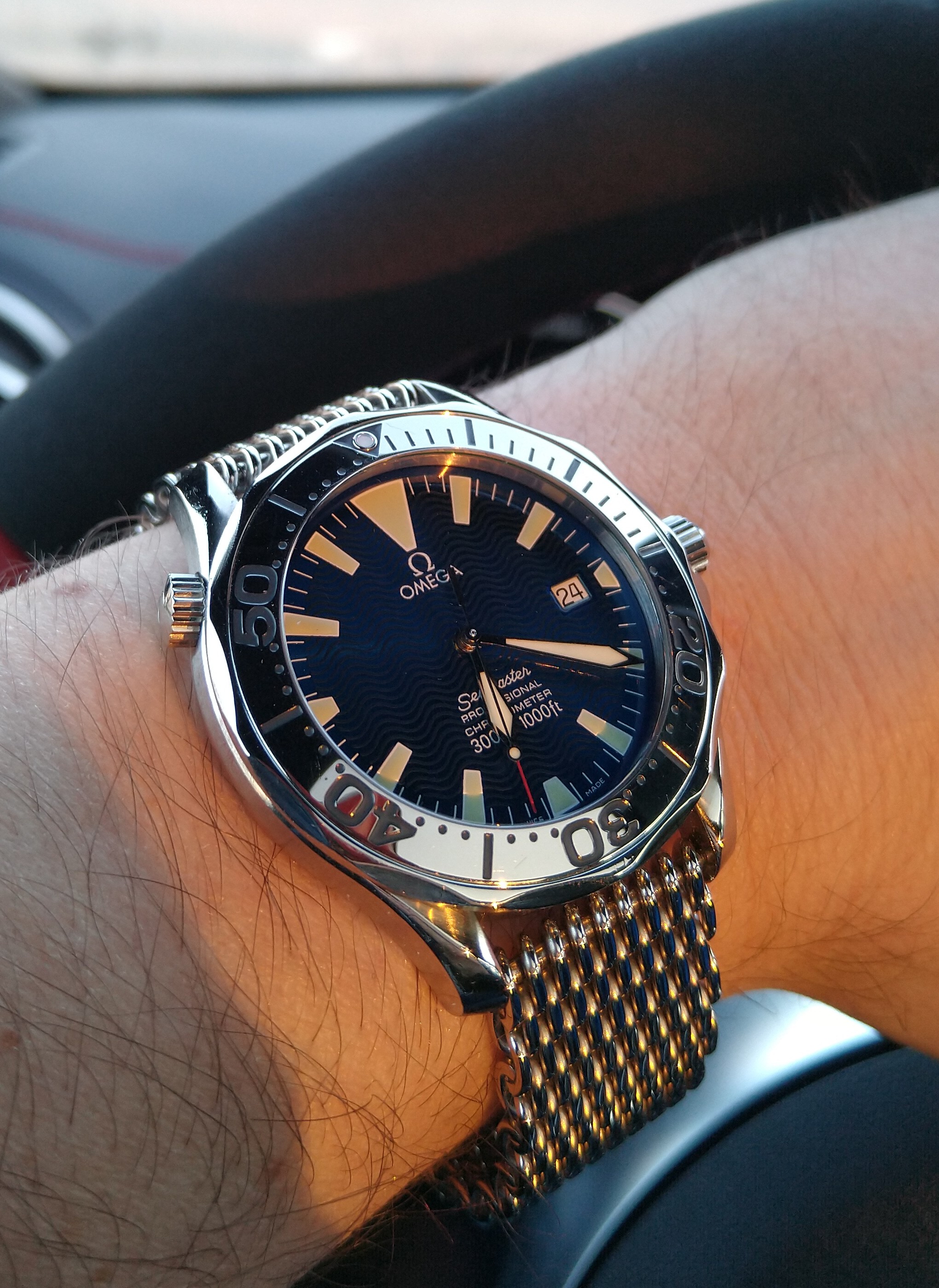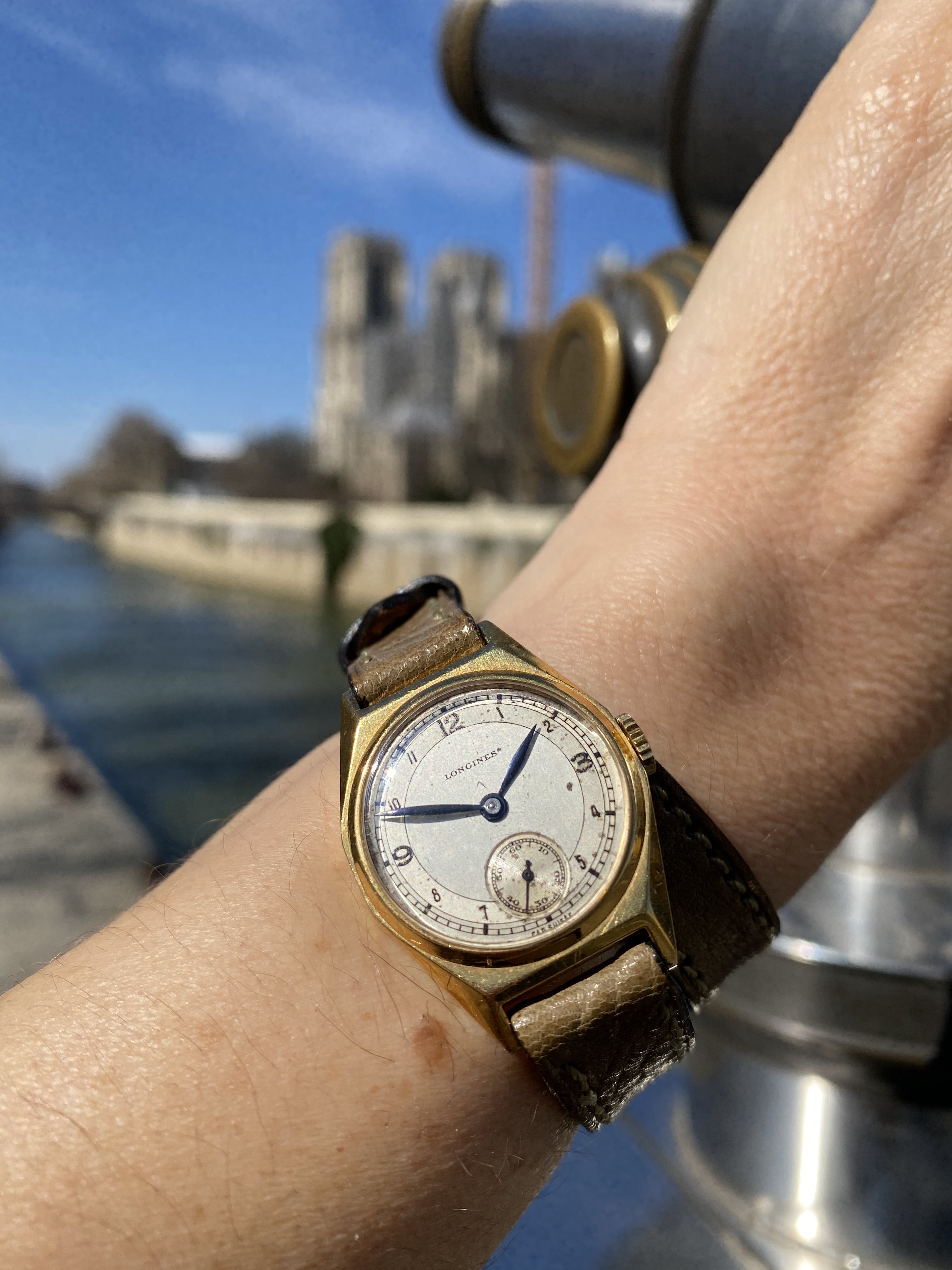 A potential watch+strap combo came to mind so I decided to give it a try. Since my working-in-the-office life is still on hold this Seamaster on its original strap seemed too formal for wearing at home or around town; I want to make it a bit more sporty if possible. The candidate "sporty" strap is actually an OEM Sinn strap. To avoid keeping a Sinn signed buckle on the strap, and because the strap is not tapered, I borrowed a buckle & pin from an Omega NATO strap. The resulting combo definitely seems more casual, now it just has to pass the comfort test 馃榾