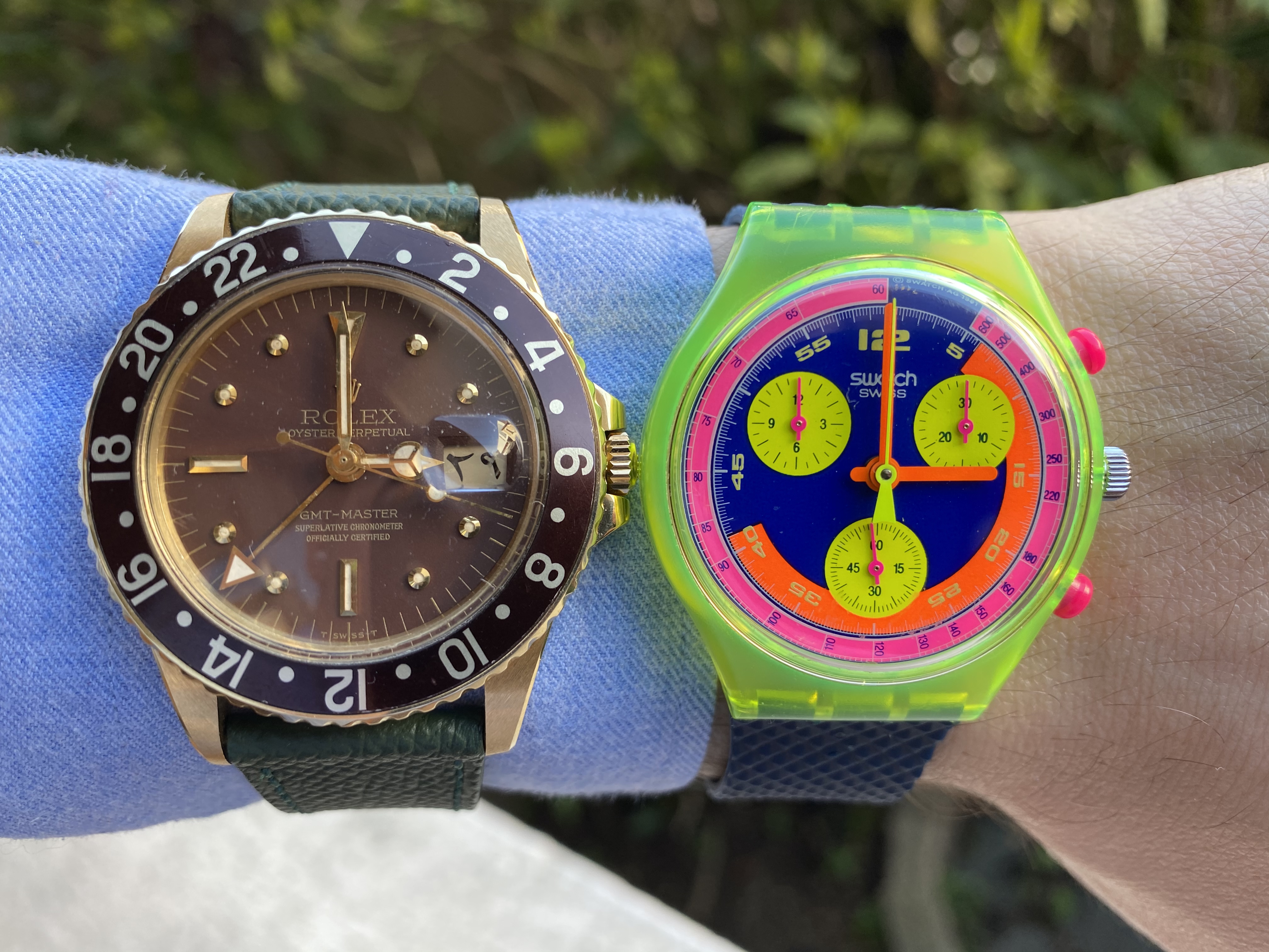 Posts 216 Likes 583 MarcelGuinchard 路Mar 29, 2021 Two watches today (70's vs 90's!) Rolex 1675 in gold (year 1976) Swatch Grand Prix SCJ 101 (year 1992)