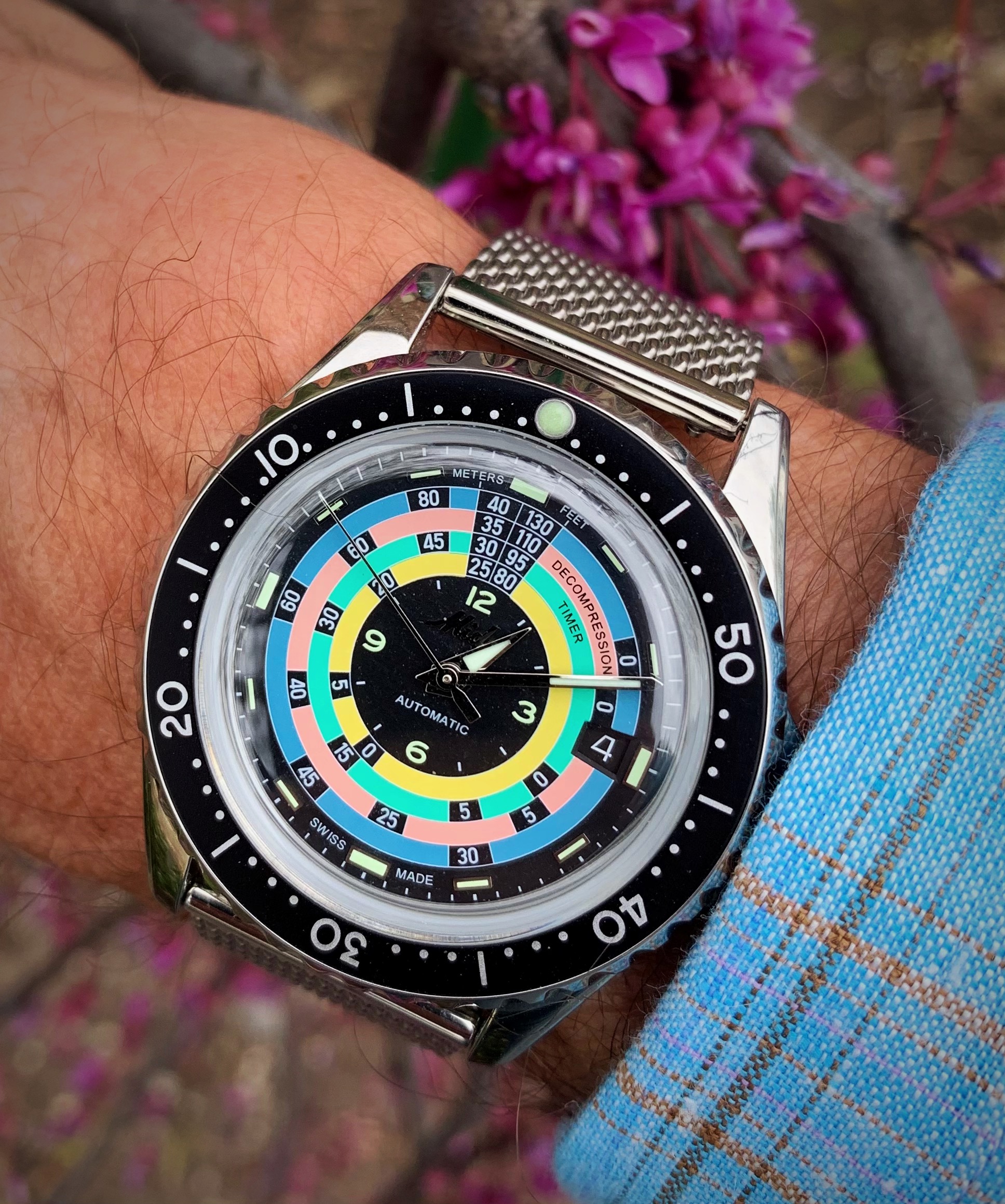 When I first saw this watch, I thought, “a hot August 1963 Saturday, on the beach,” imagining wearing it then. Once again, I was rocked by an uncompromising desire. Sigh.