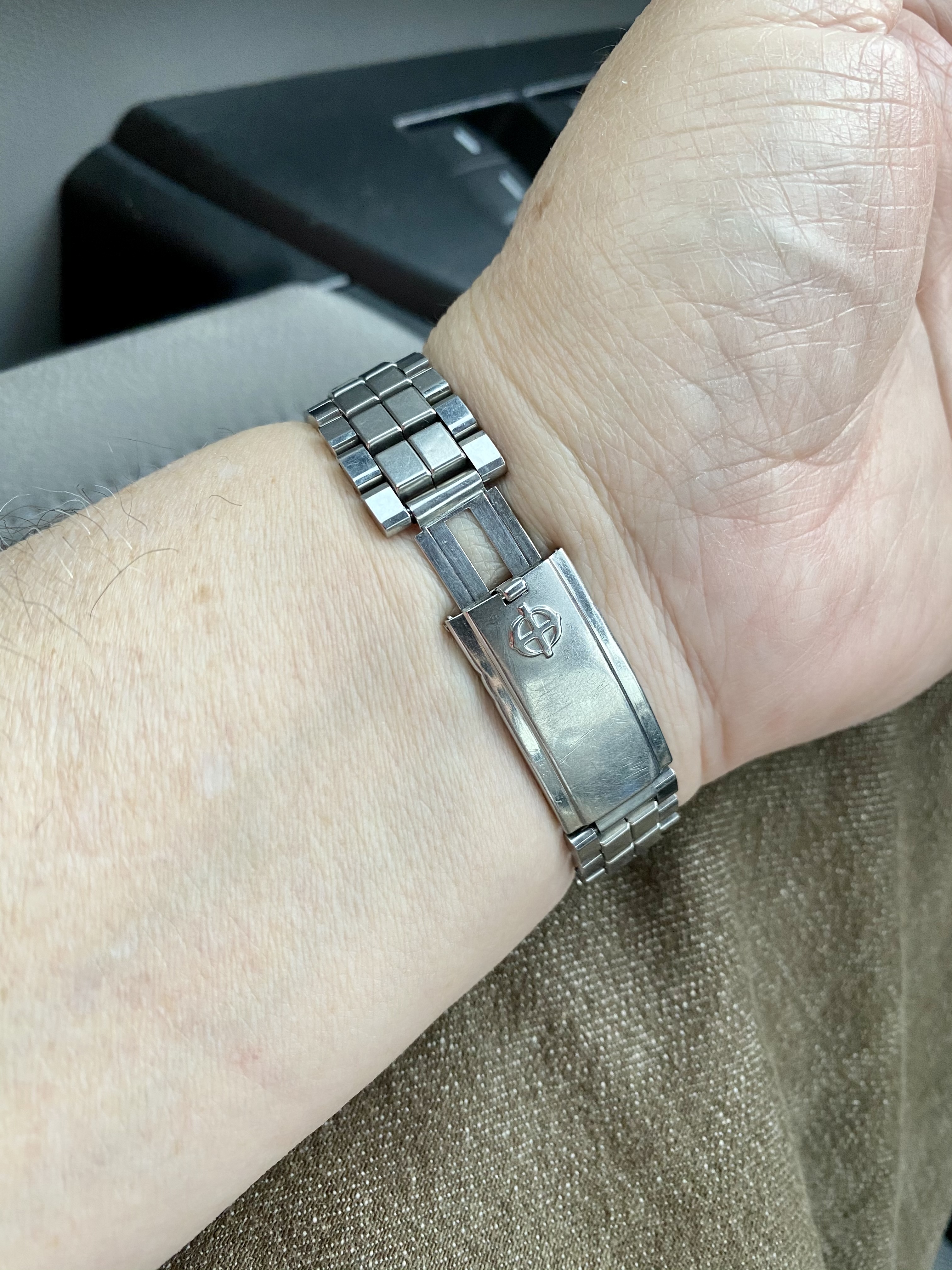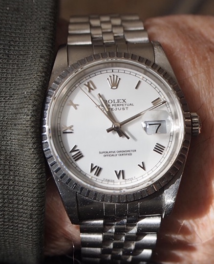 One of three today. My 110-year old Keystone Howard series IX pocket watch on my @DaveK miracle braid lanyard, a 60 year old Rolex Submariner I recently serviced for a friend, and this one. My 31-year old Rolex Date-Just on steel Jubilee. This is my favourite Rolex dial, ever, Haven’t worn this for months! Too many watches!