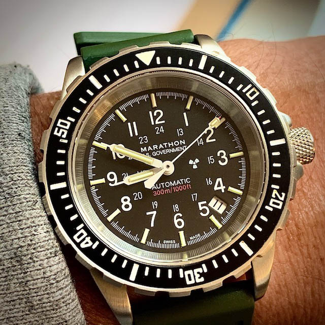 I pulled out the gnarly GSAR from a dark corner of the watch box and fitted it with a NATO Green Isofrane strap -- a nice combo, I must say. I'll be spending part of the day cleaning out our camper van after living in it for nearly two weeks on the Central Coast of California, so a burly "beater" watch is in order.