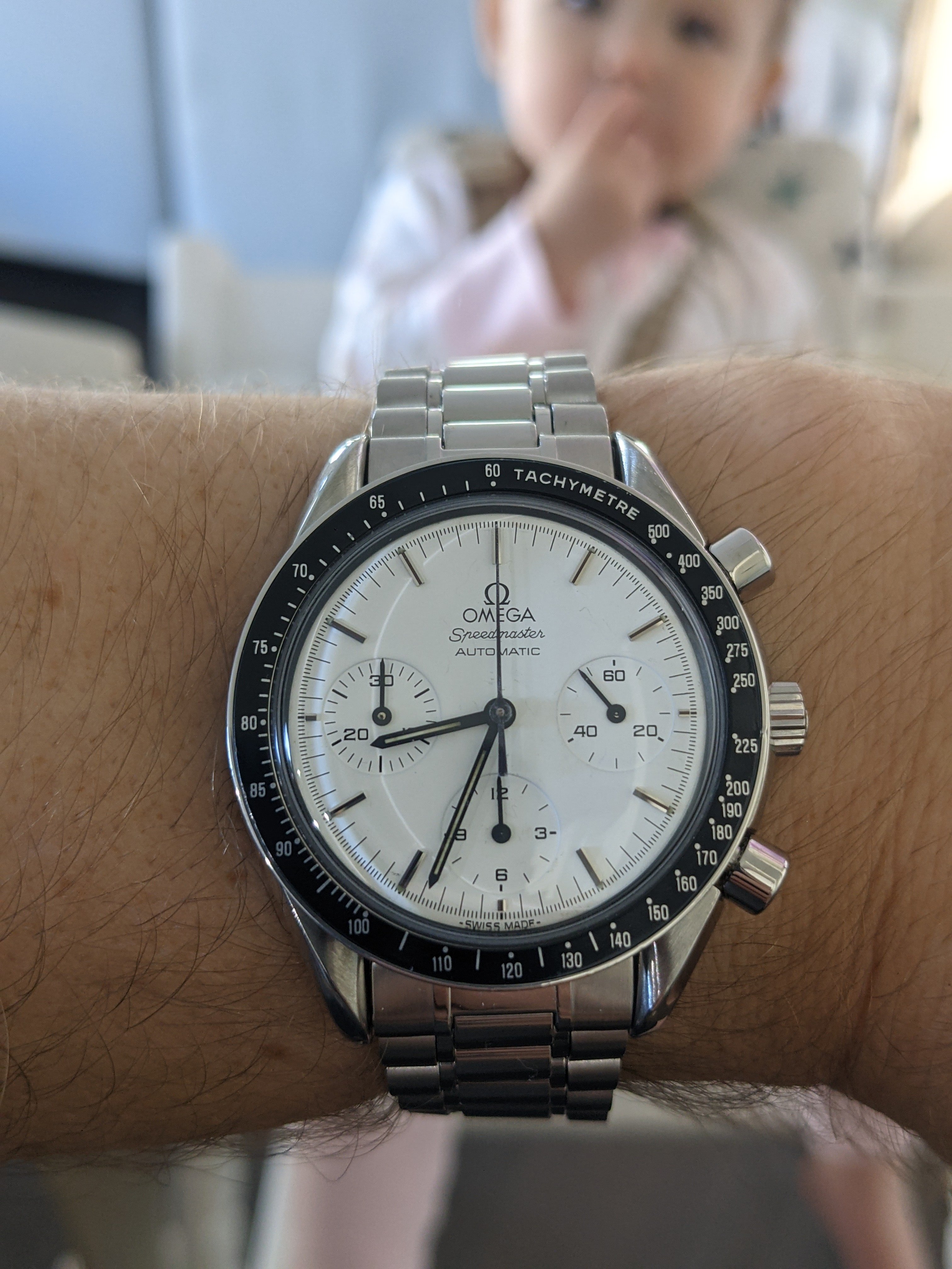 I bought this Baby Snoopy (Speedmaster Reduced Marui) exactly one year ago today on the day my daughter was born. Today I'm wearing it for the first time and will only wear it another 17 times on this same day until I give it to her on her 18th birthday.