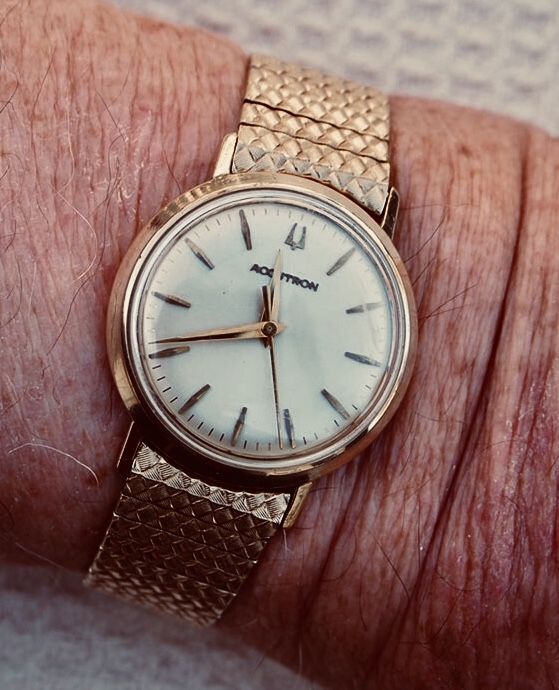 On my wrist today is the watch I was wearing 55 years ago today! Different bracelet, same watch. My 57 year old Accutron 214 of which I am the only owner. How do I remember that I was wearing this watch exactly 55 years ago today, you might ask. That’s easy. Today is our 55th anniversary! Still looks and runs like day one. It has been on my wrist for many important occasions. The christening of our son, Expo ‘67 when we were caught in a cloudburst outside the Czech Pavilion. Our 50th anniversary celebration, and today. Do I love this watch? You gotta know!