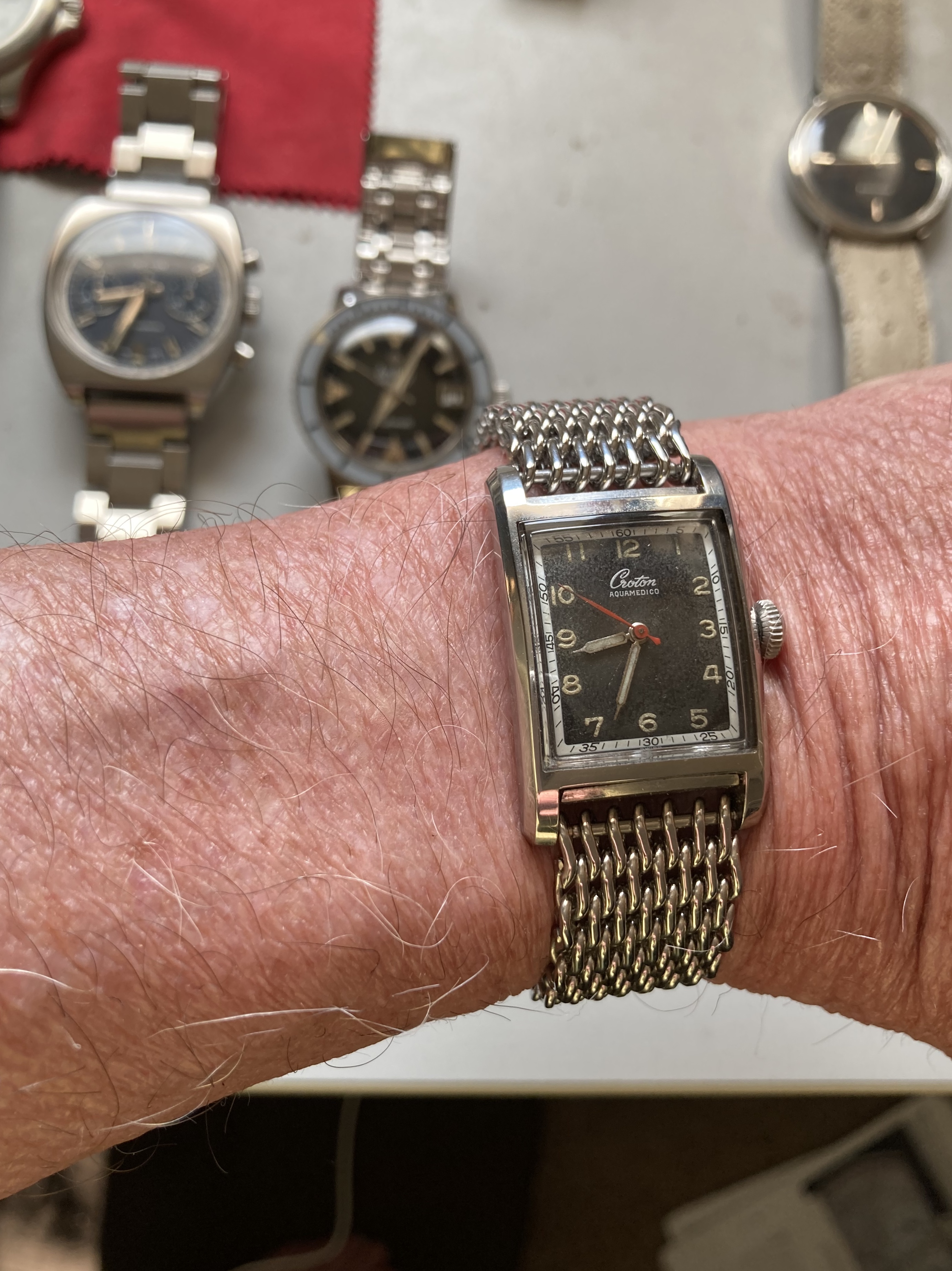 I don't know much about this watch except that its probably 1940's ish and that it was my dad's watch with one of those expandable bands that'd rip every hair off your wrist if it got a chance.
