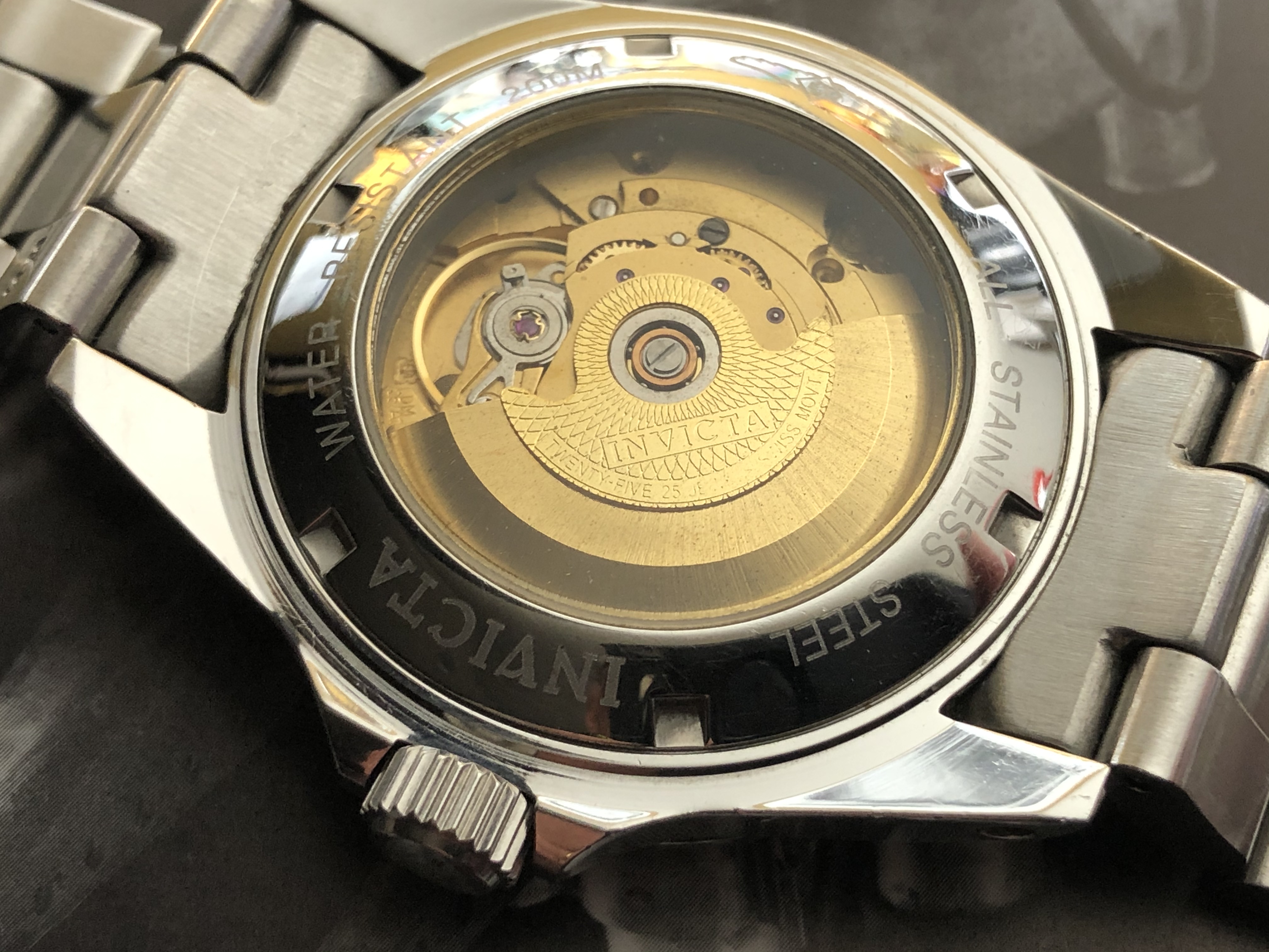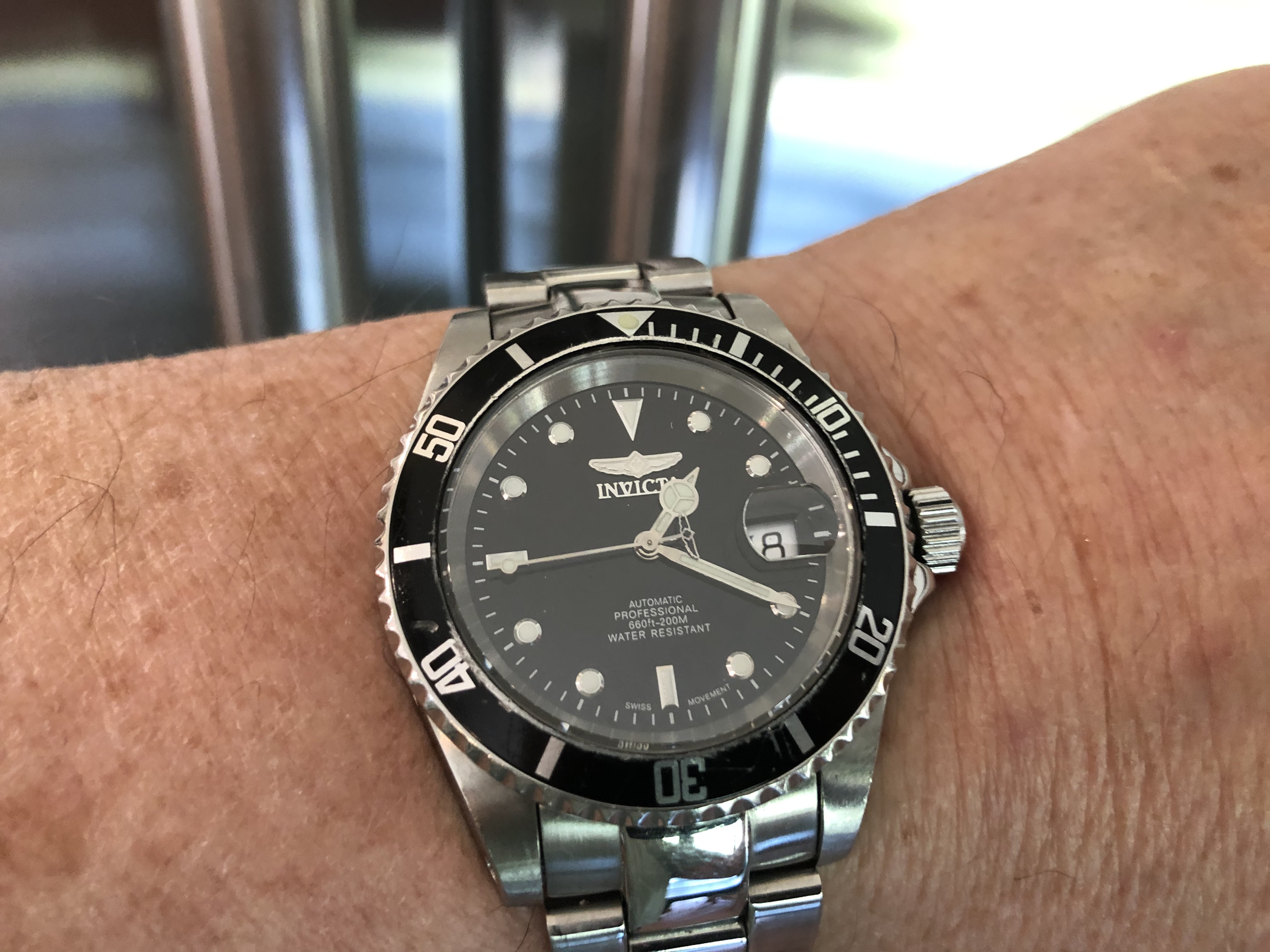 The ref. 9937 dates back several years and differs from more recent similar Invicta “Pro Diver” models in that it is powered by an ETA 2824-2 (rather than a Miyota or Seiko NH35A), has a sapphire crystal, drilled lugs, screw-in type “spring bars”, solid end links, and thicker links (4.2mm vs 3.4mm). The ref. 9937 doesn’t pop up for sale often, in my experience. For around $100 it’s a great value for a quality build, IMHO.
