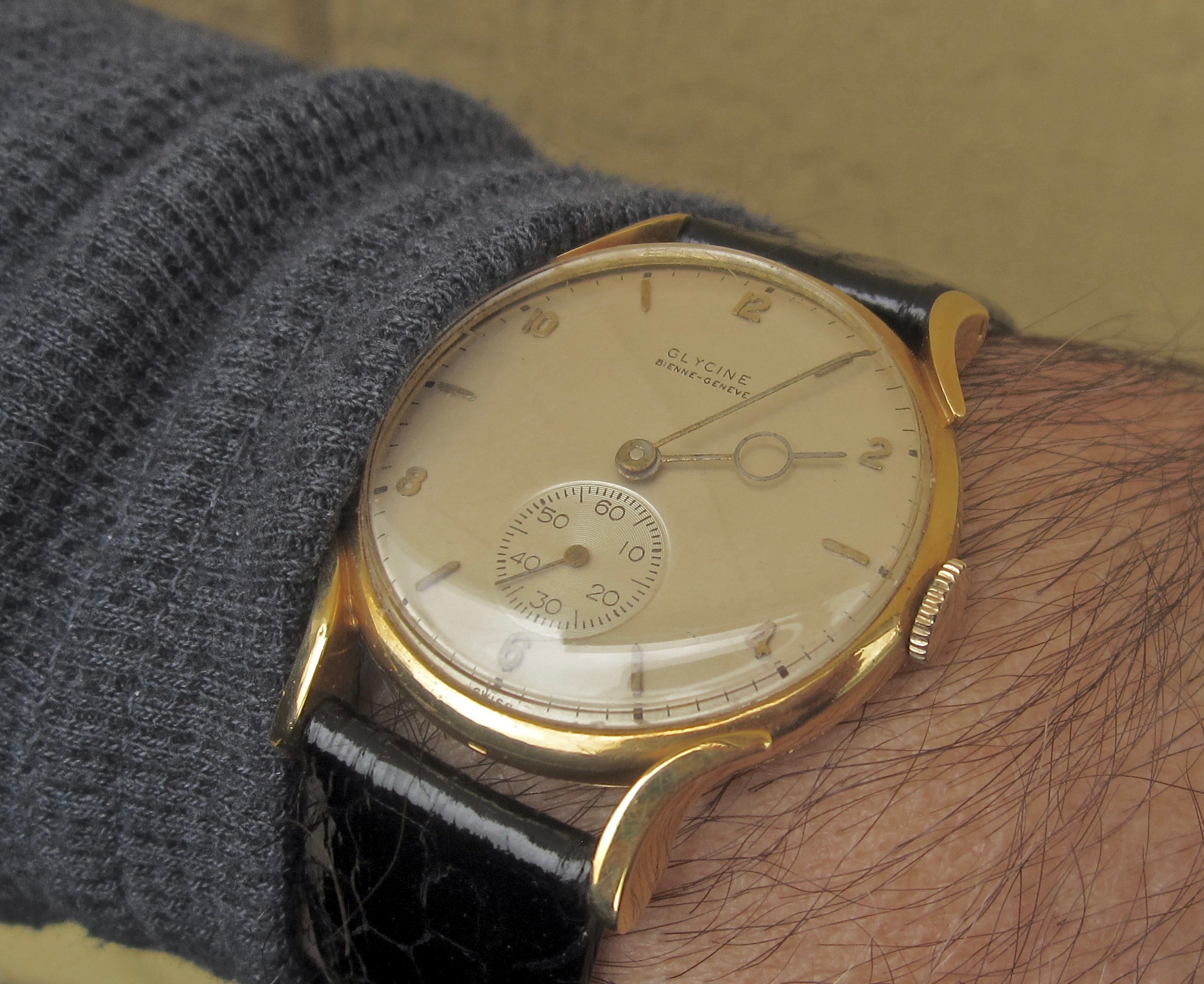 Used to wear this vintage Glycine to the office often. Retirement days activities frequently are too rough on an 18kt gold case. Fired it up today for retirement casual Friday around the house.