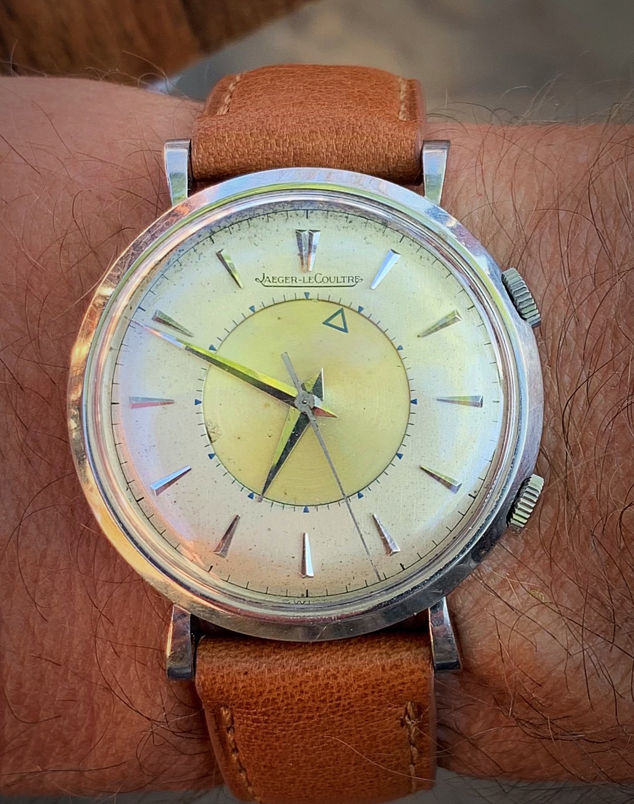 Posts 7,293 Likes 76,579 dougiedude ·Apr 25, 2021 The not-so-common, but beloved, 70 y.o., no-date Memovox at dinner this eve: ‘51 ref 3151 cal 489 Edited: Apr 25, 2021