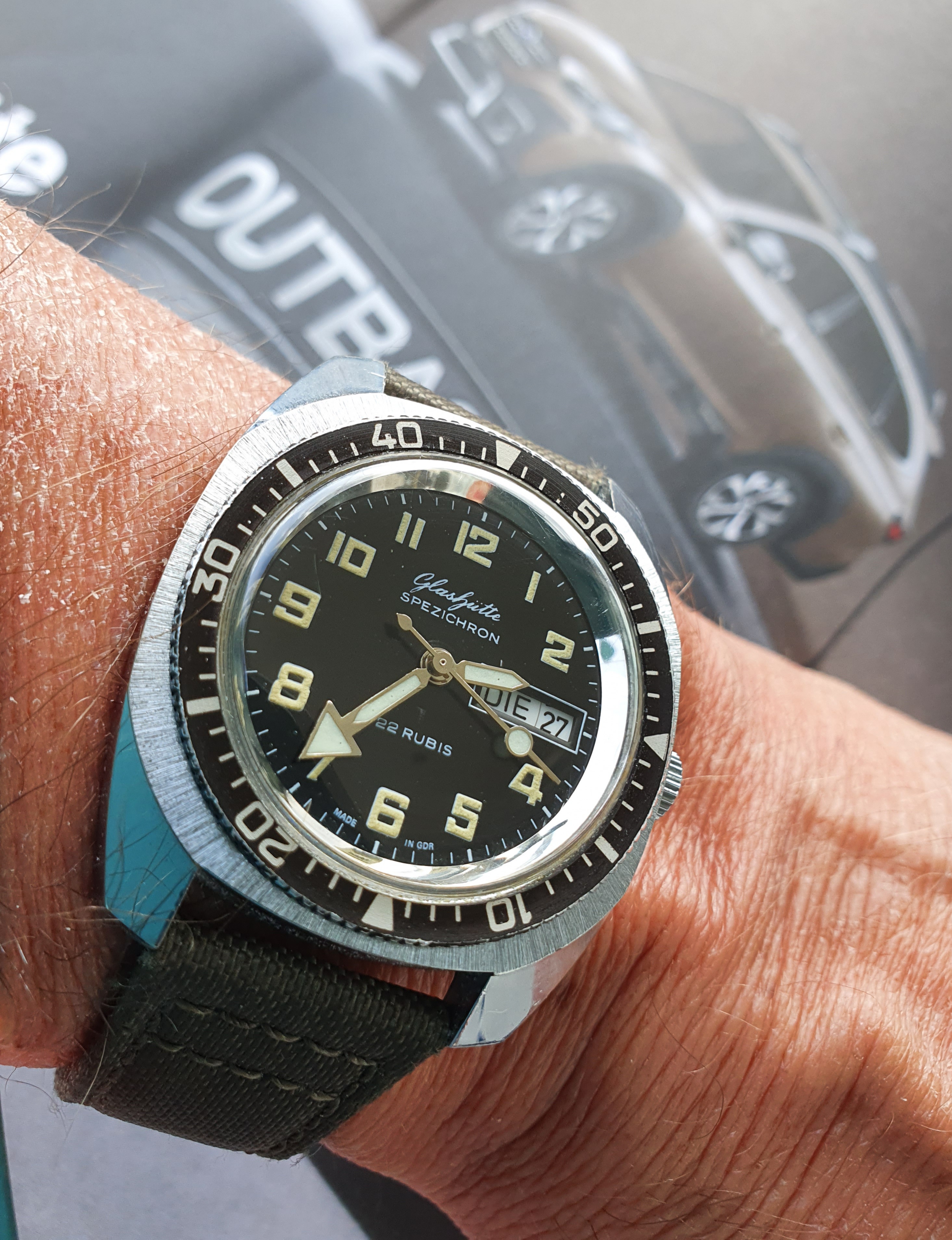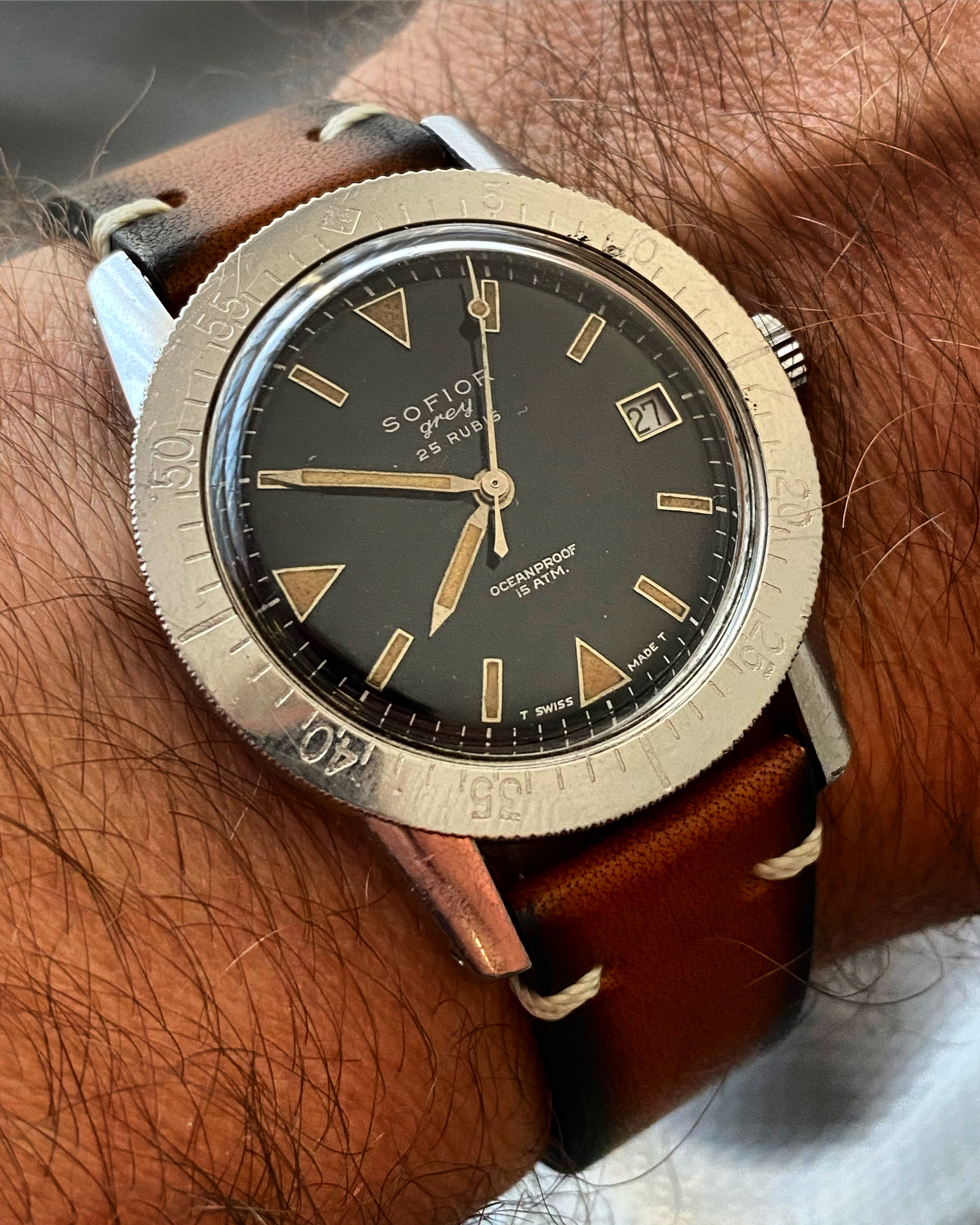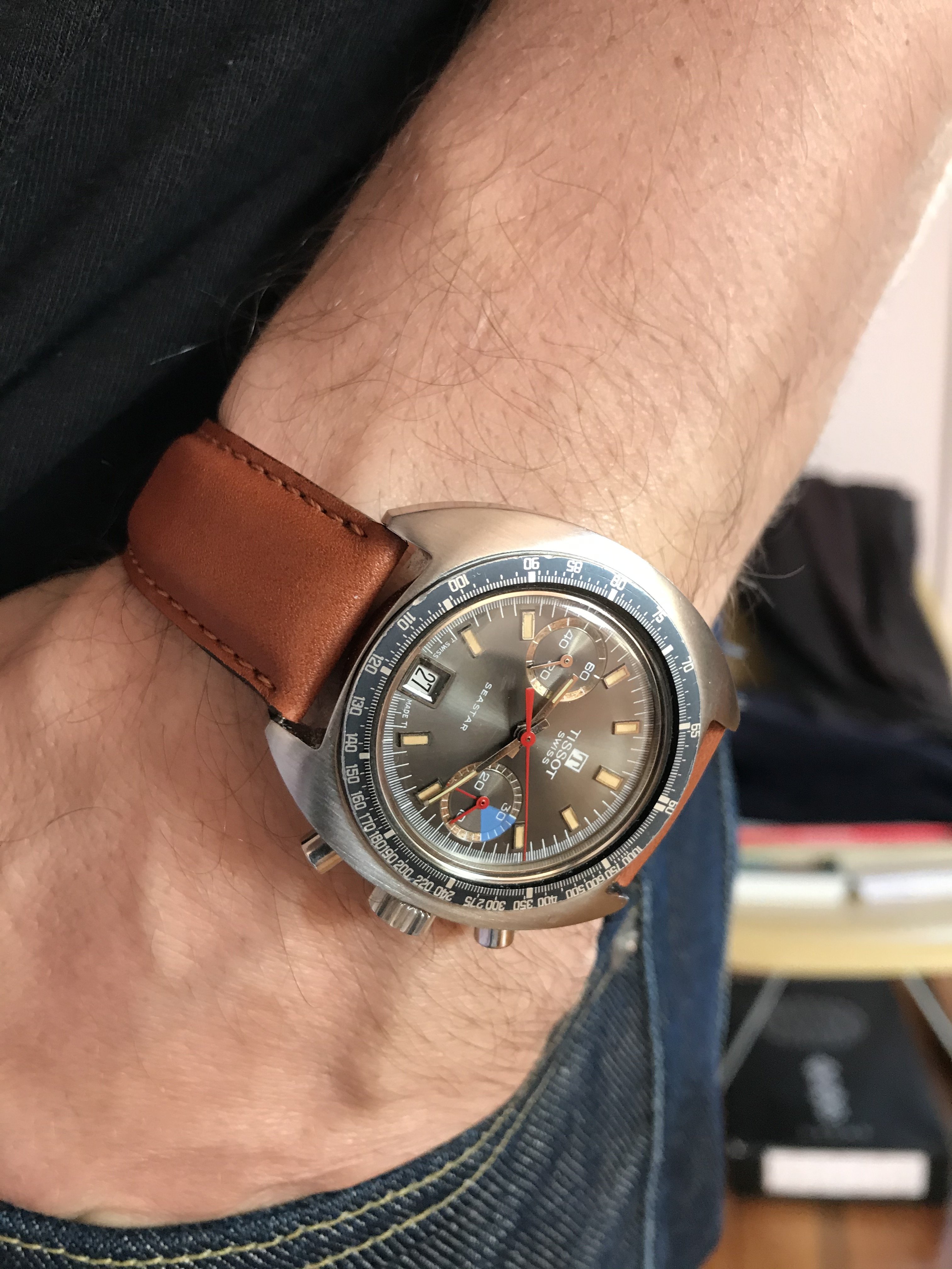 Poor man's Breitling Top Time 馃槈. More on Intersport here, for those who are interested http://www.intersport-nederland.nl/about-us/history/ They were the official sports store of the 1972 Olympics, and I think this 38mm NOS charmer was made in commemoration of that, possibly as a one-off.