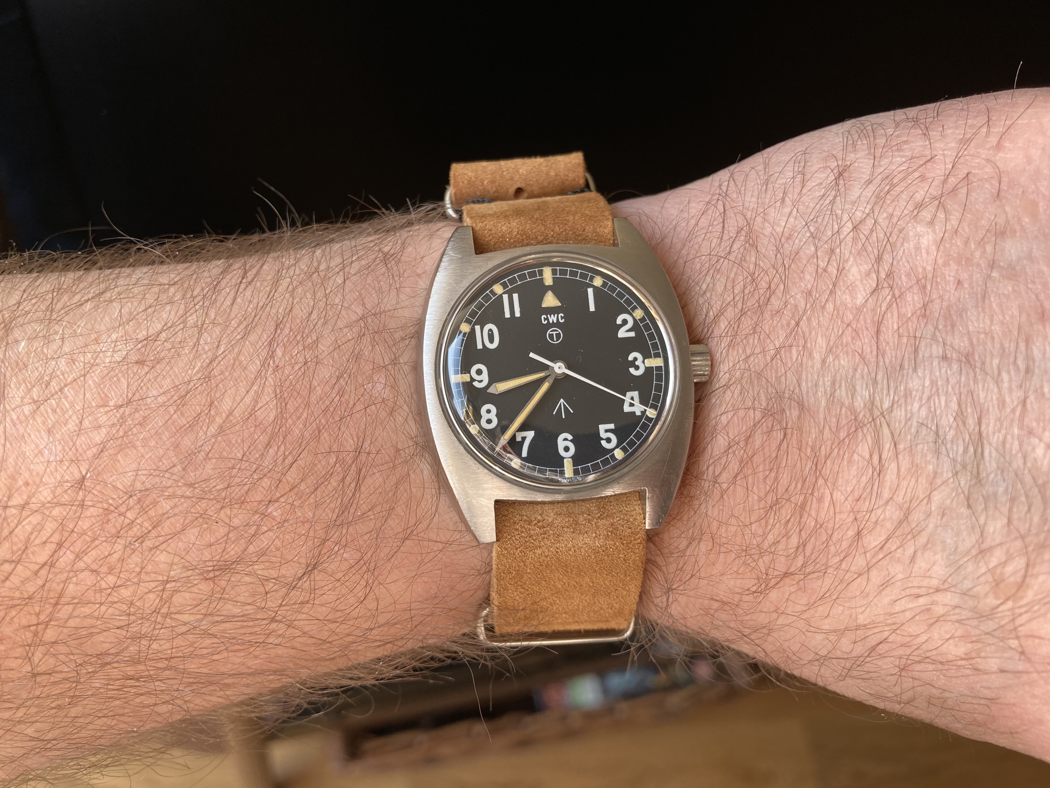 TL;DR: My birth year, 1977-issued CWC W10, on suede NATO.
