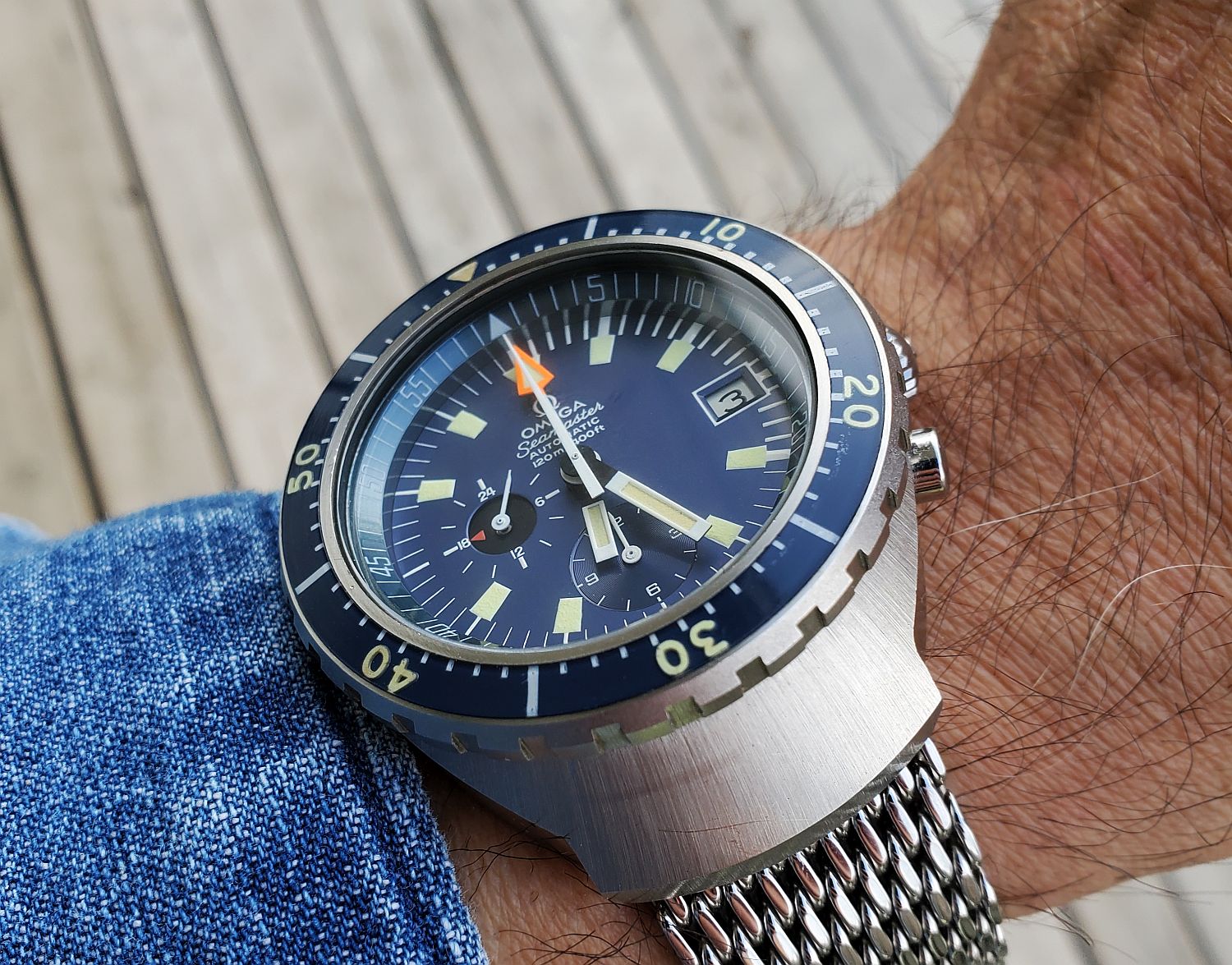 The iconic Deep Blue by Favre-Leuba From 1965 - Calibre FL1152. What’s your favorite attribute? Sector dial, arrow hands, round date between 4 & 5, bakelite bezel, grey dial with applied logo, 38mm size? All the great vintage cue’s wrapped-up in one killer piece!