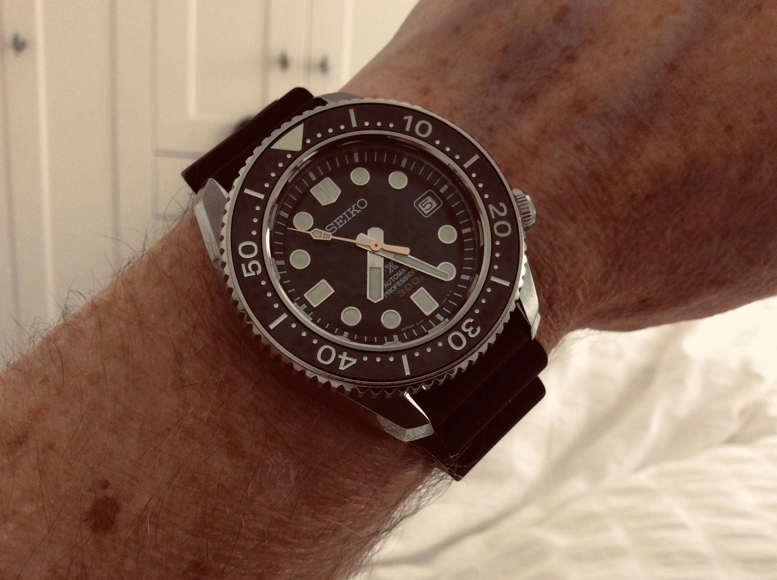 A newly arrived funky wearer for a life on the go.... It’s fun, it’s unassuming with just a touch of pearly elegance, it’s a steel case, it’s a Seiko quartz movement, water resistant 3ATM, and a saffiano style double wrap strap - and it’s a limited edition; what’s not to like?