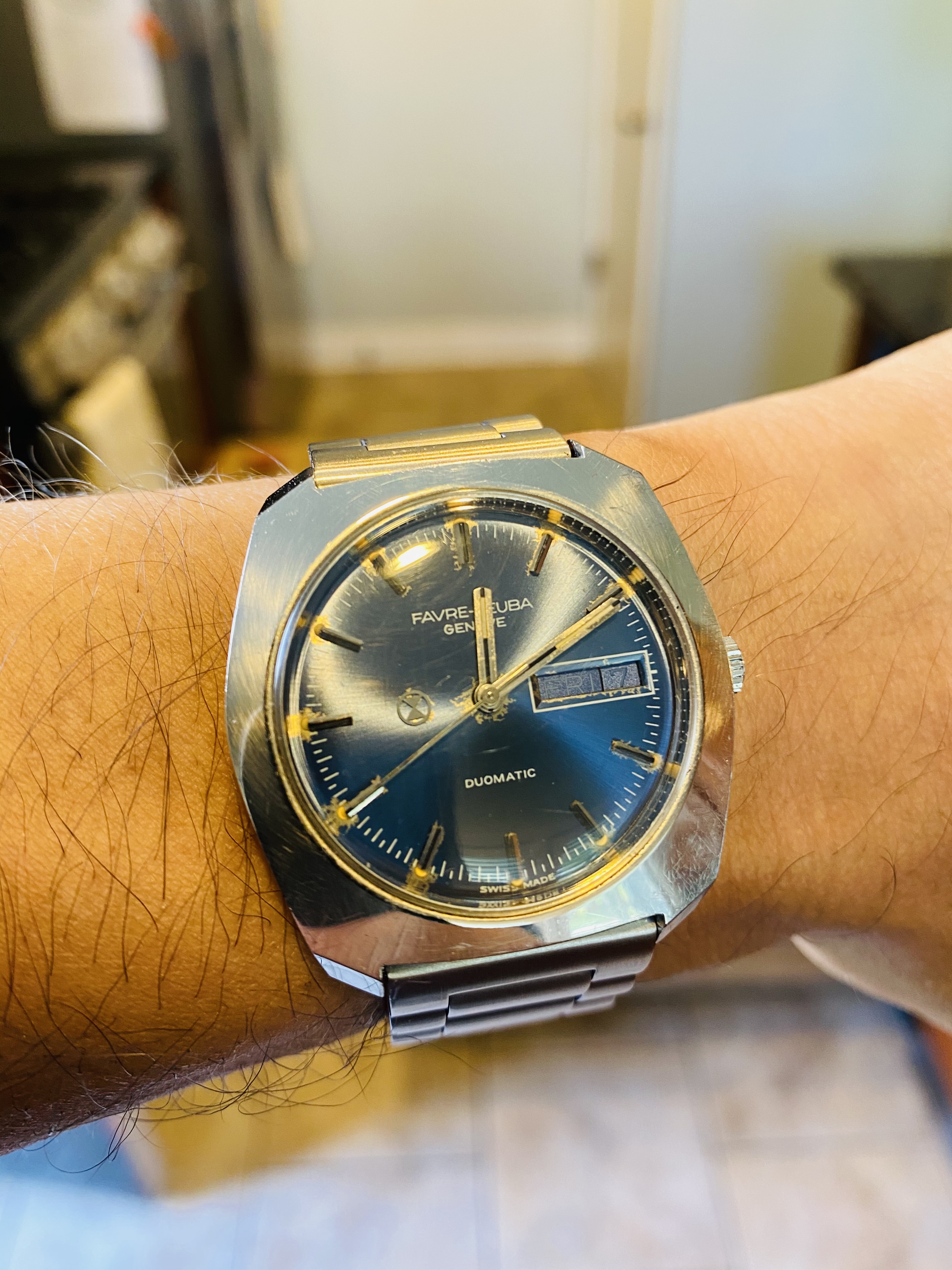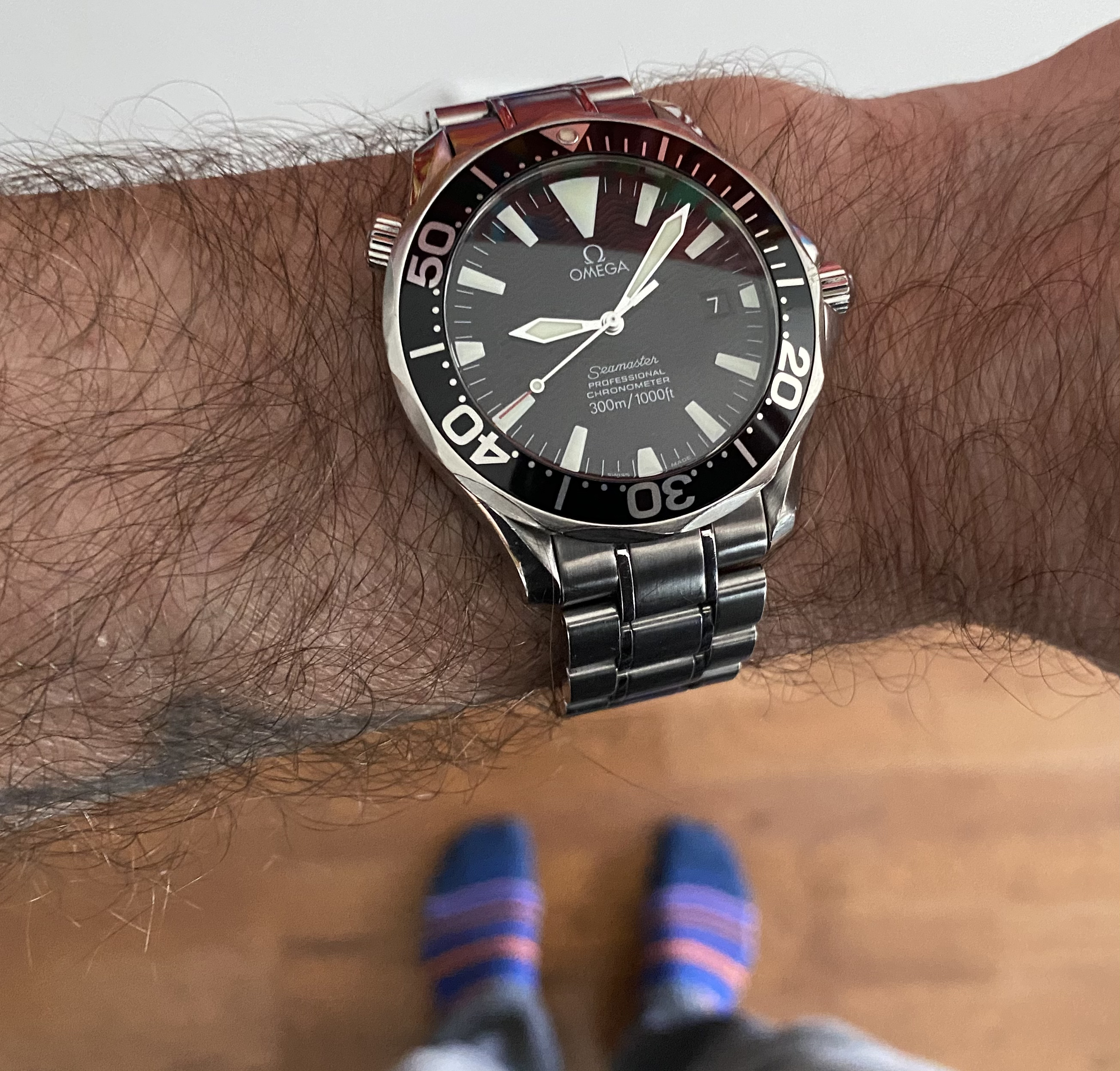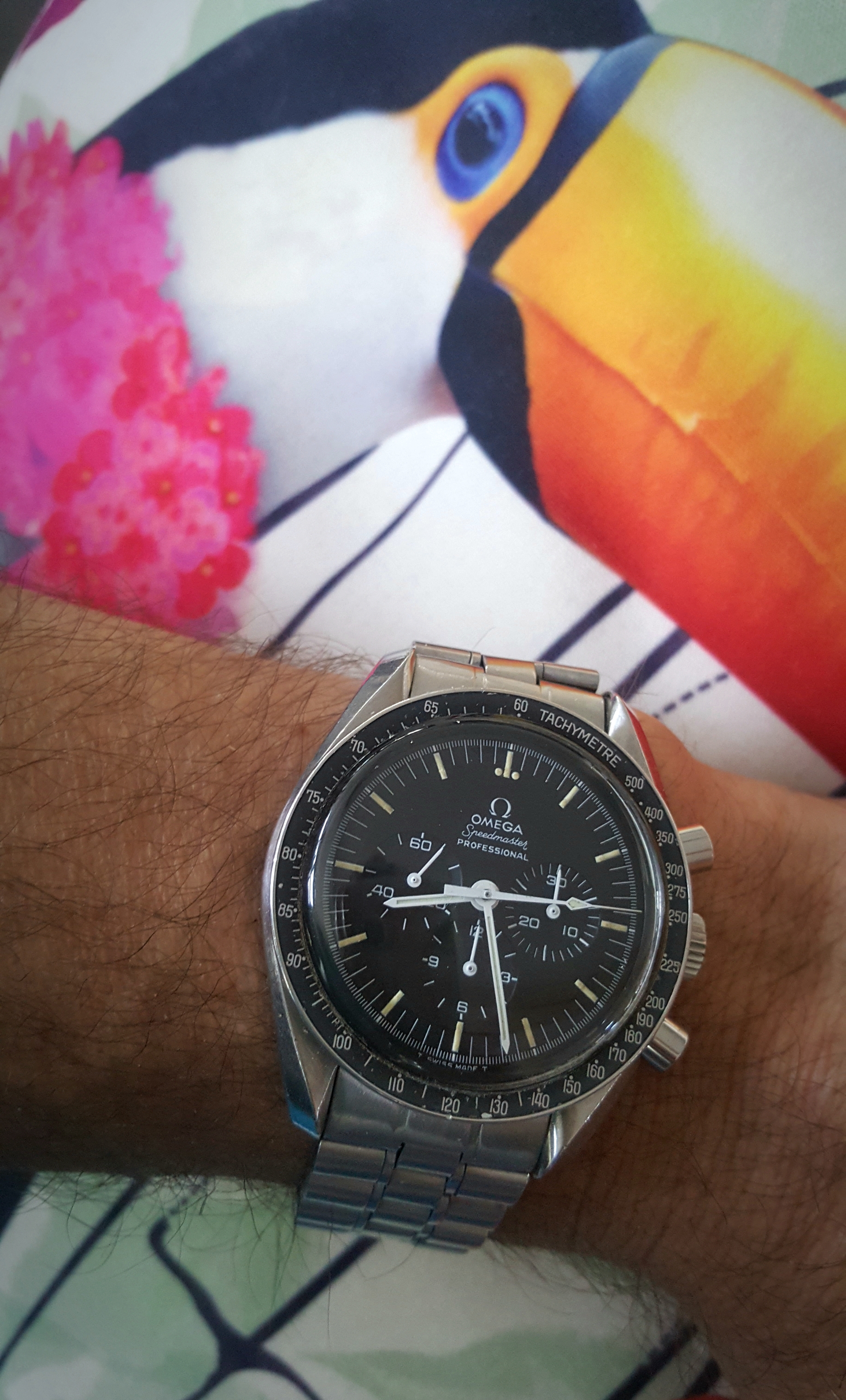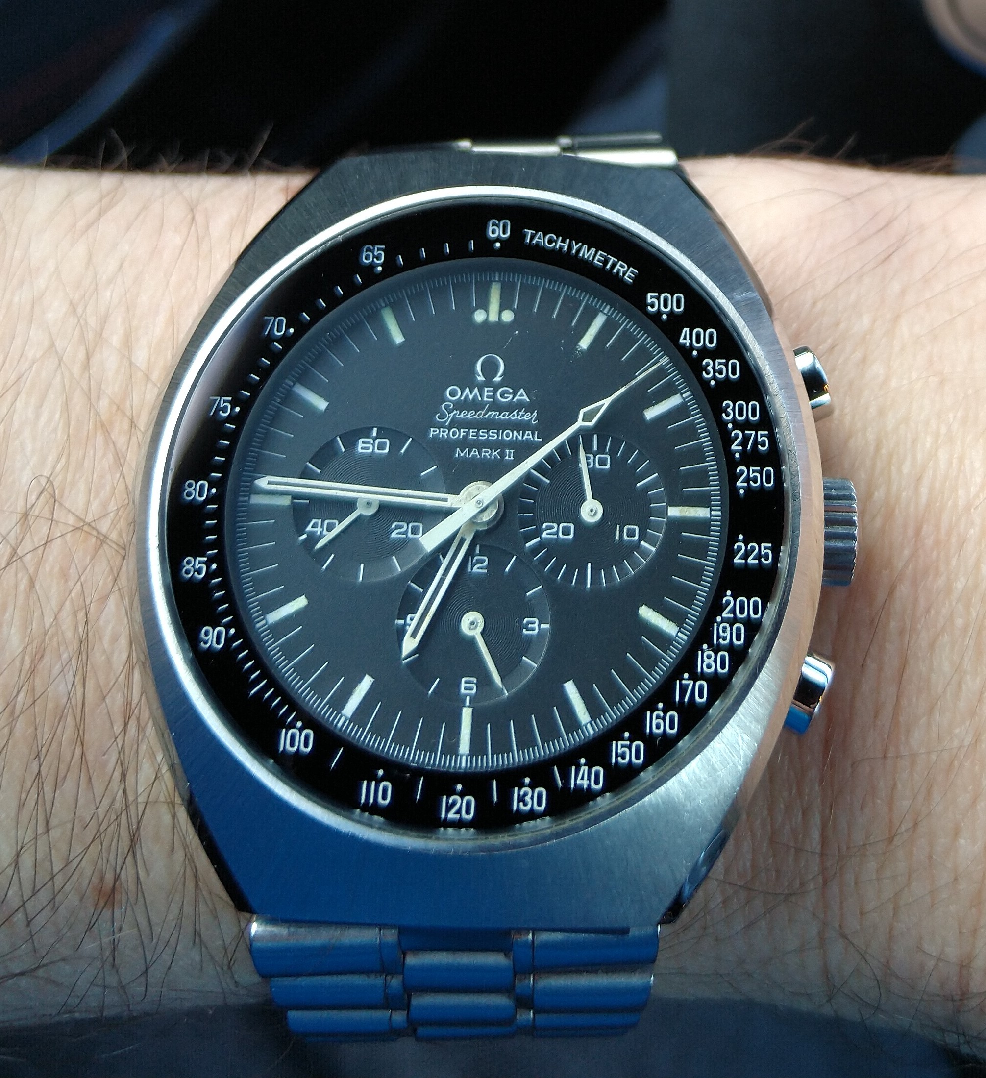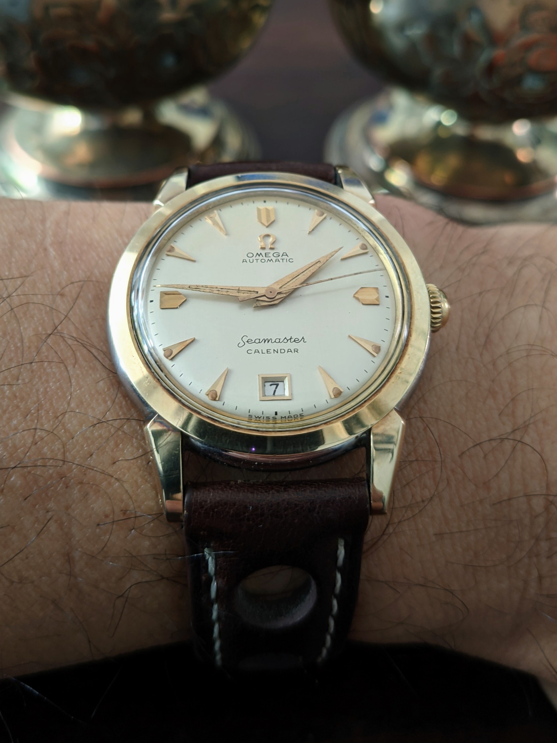 ST#1 .... one of the best looking LE's that Omega has made. Looks a lot different in person because almost everything is brushed, including hands. About the only polished items are the applied Omega logo on dial and the crown logo. Here on a tan LUGS rallye calf strap.