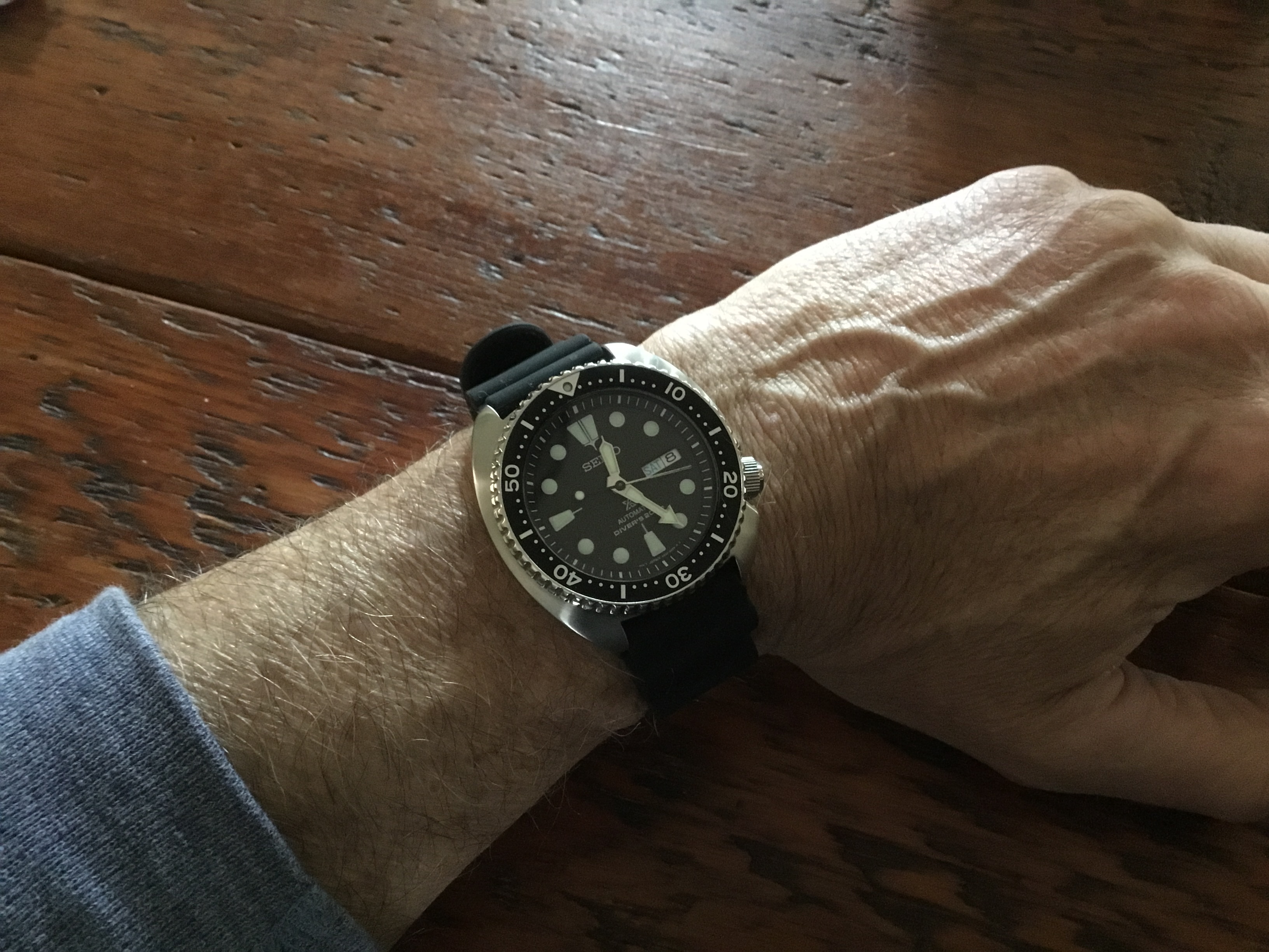 My brand new, as of today, Seiko SRP777. Big sale at Kohl’s, so I scratched my itch for a turtle/Willard/whatever you want to call it. And it’s true what they say - it “wears” a lot smaller than the specs would indicate. It feels about the same on my wrist as my SKX, if not even more comfortable due to the wider, but not longer, case.