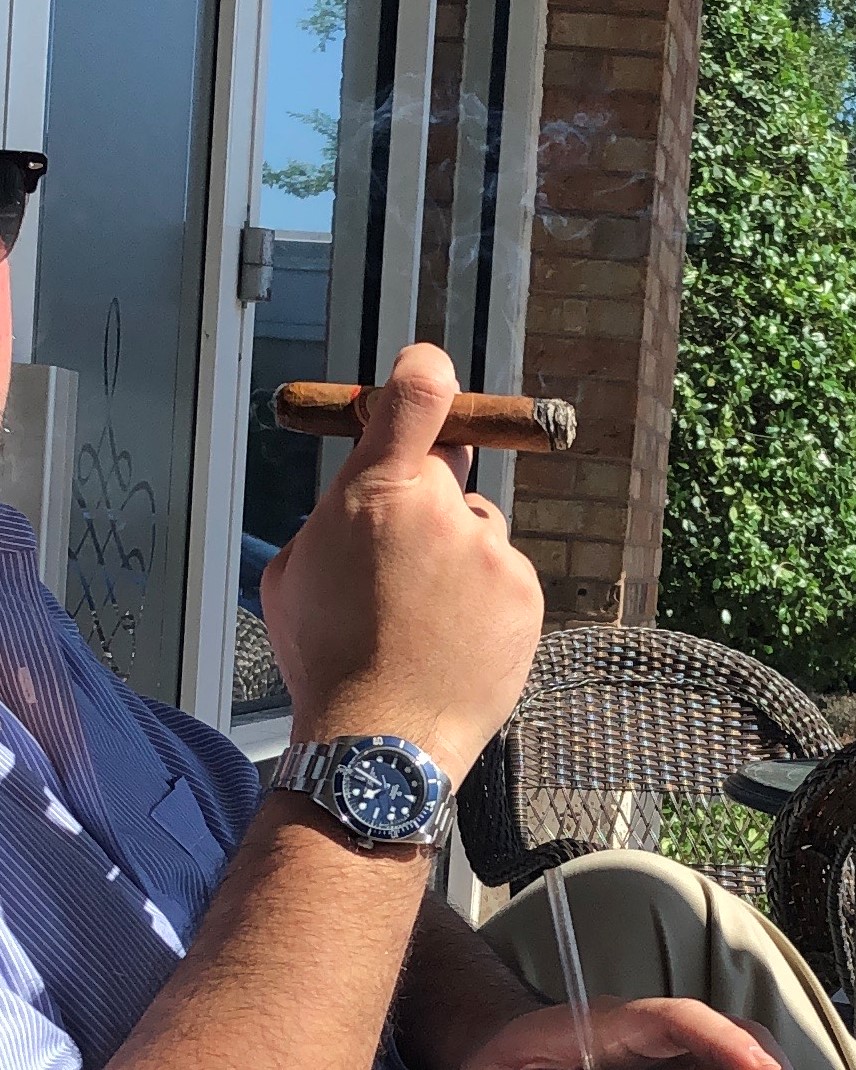 Tudor Black Bay 58 Blue (with a 'Last Call' short robusto by A.J. Fernandez, if anyone's curious):