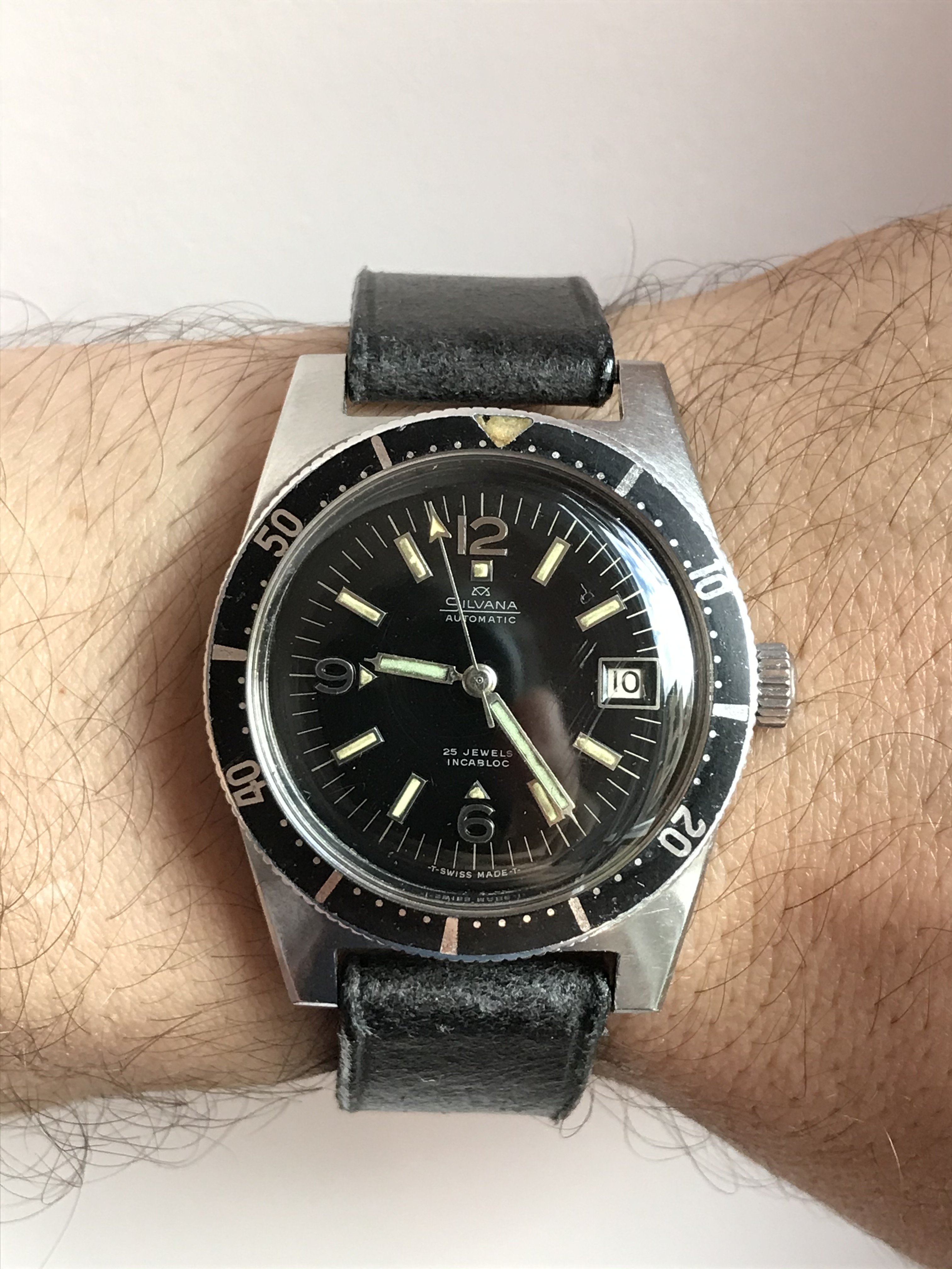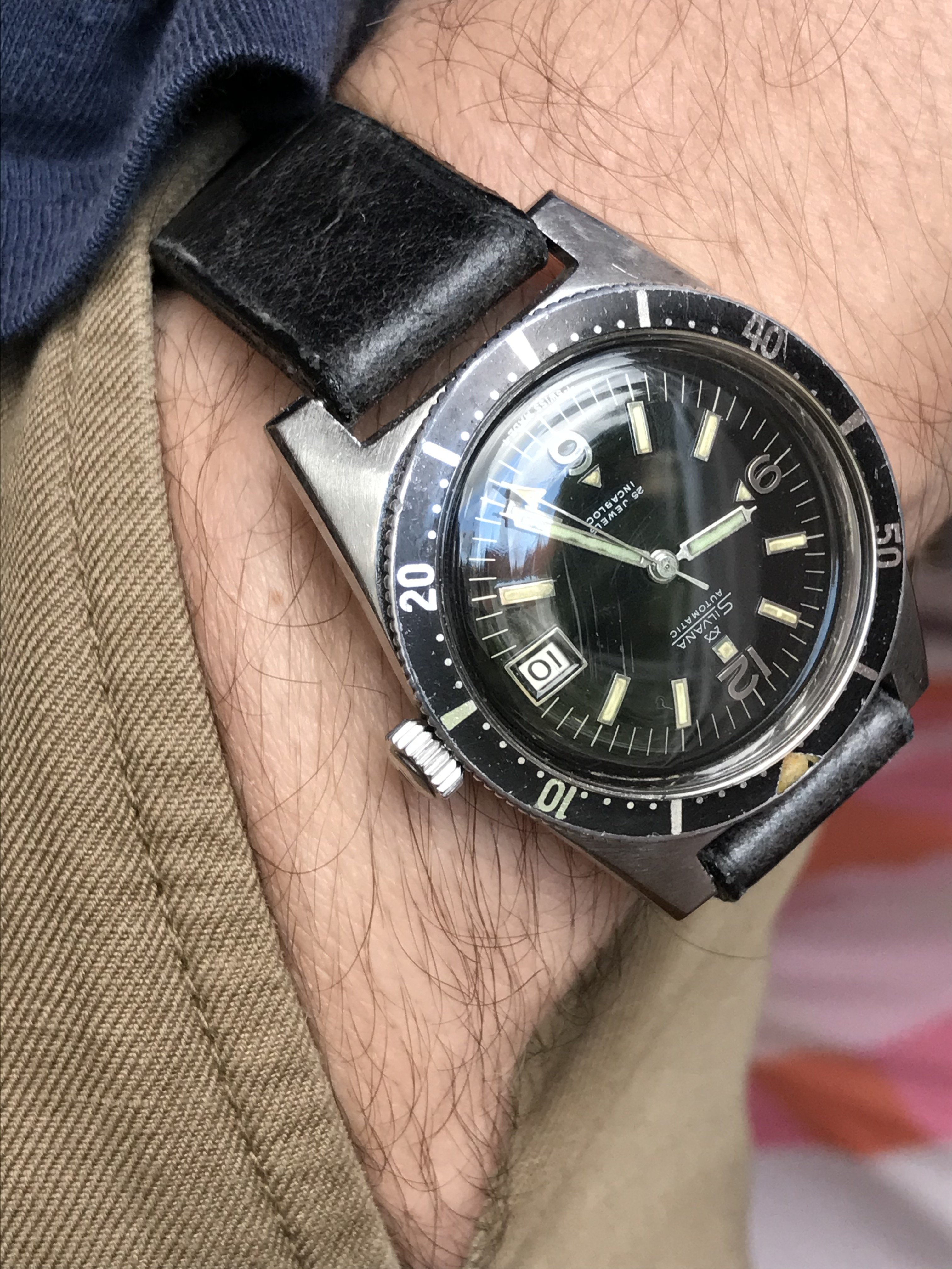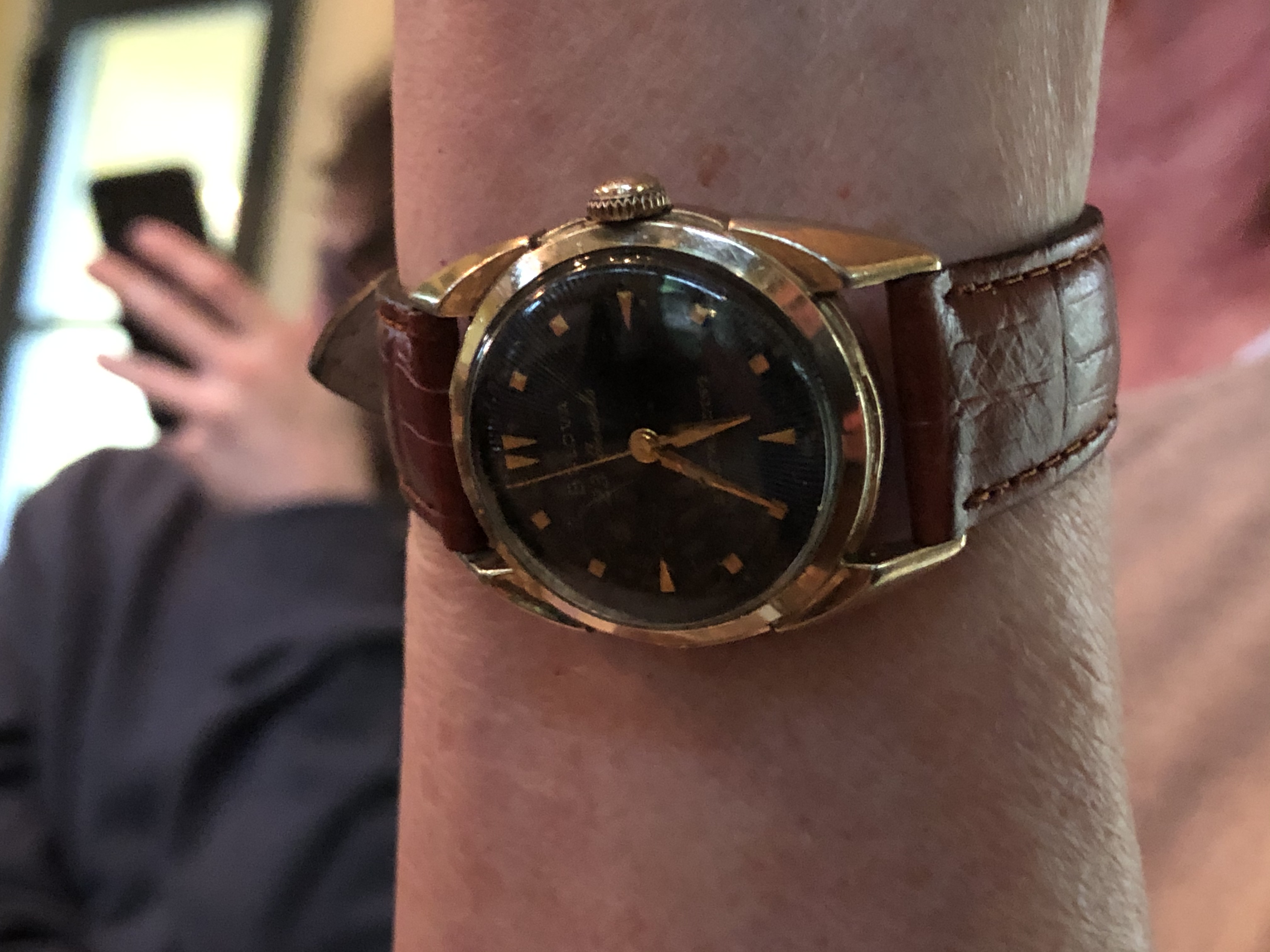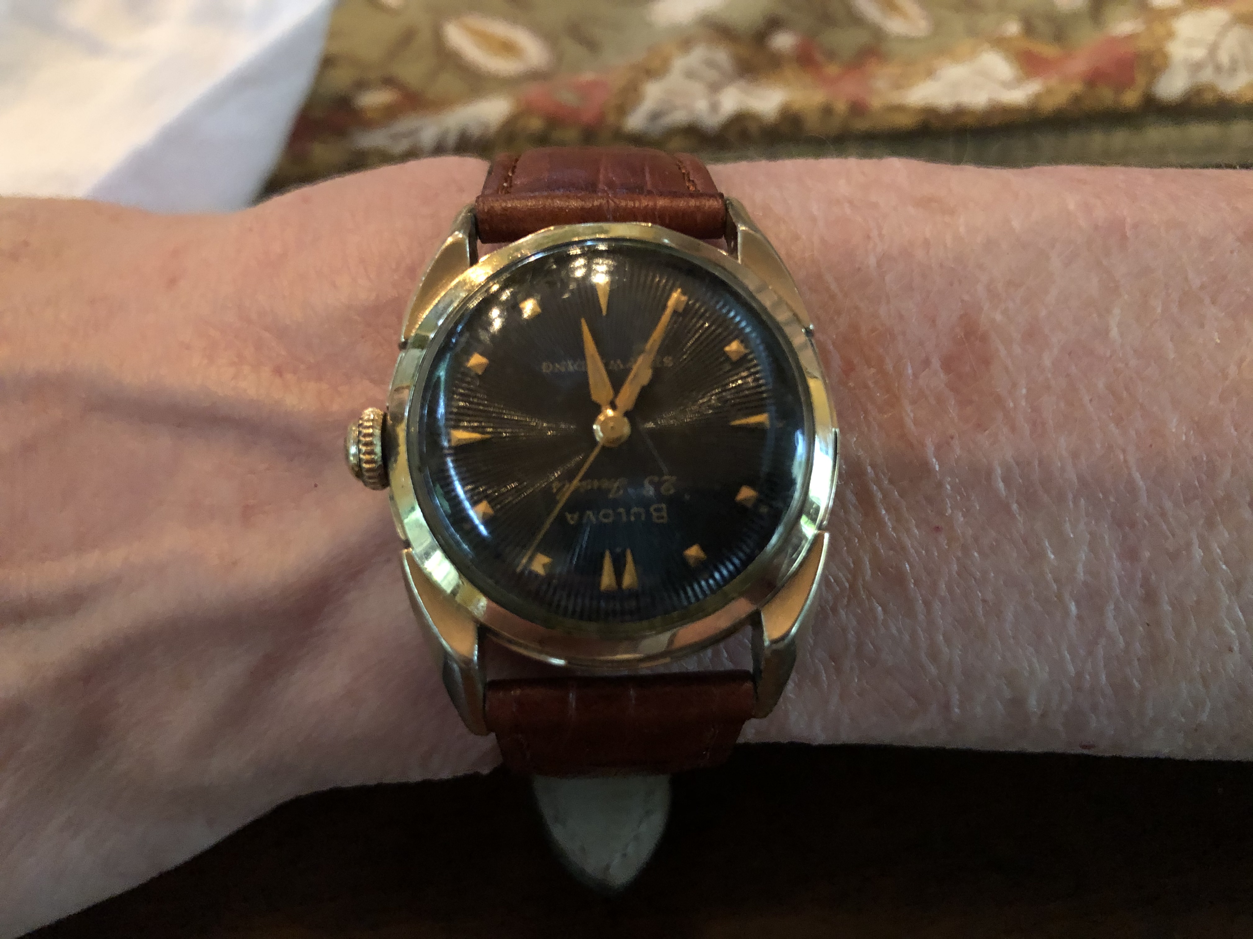 What my wife is wearing today....I had a similar watch in my collection, but my wife suggested I gift it to my eldest son’s girlfriend when she graduated from college....thereafter my wife told me she wanted one for herself....it arrived today, needs a service and new crystal, but a nice piece....Happy Mothers Day!....1957 Bulova “23” self-winding.