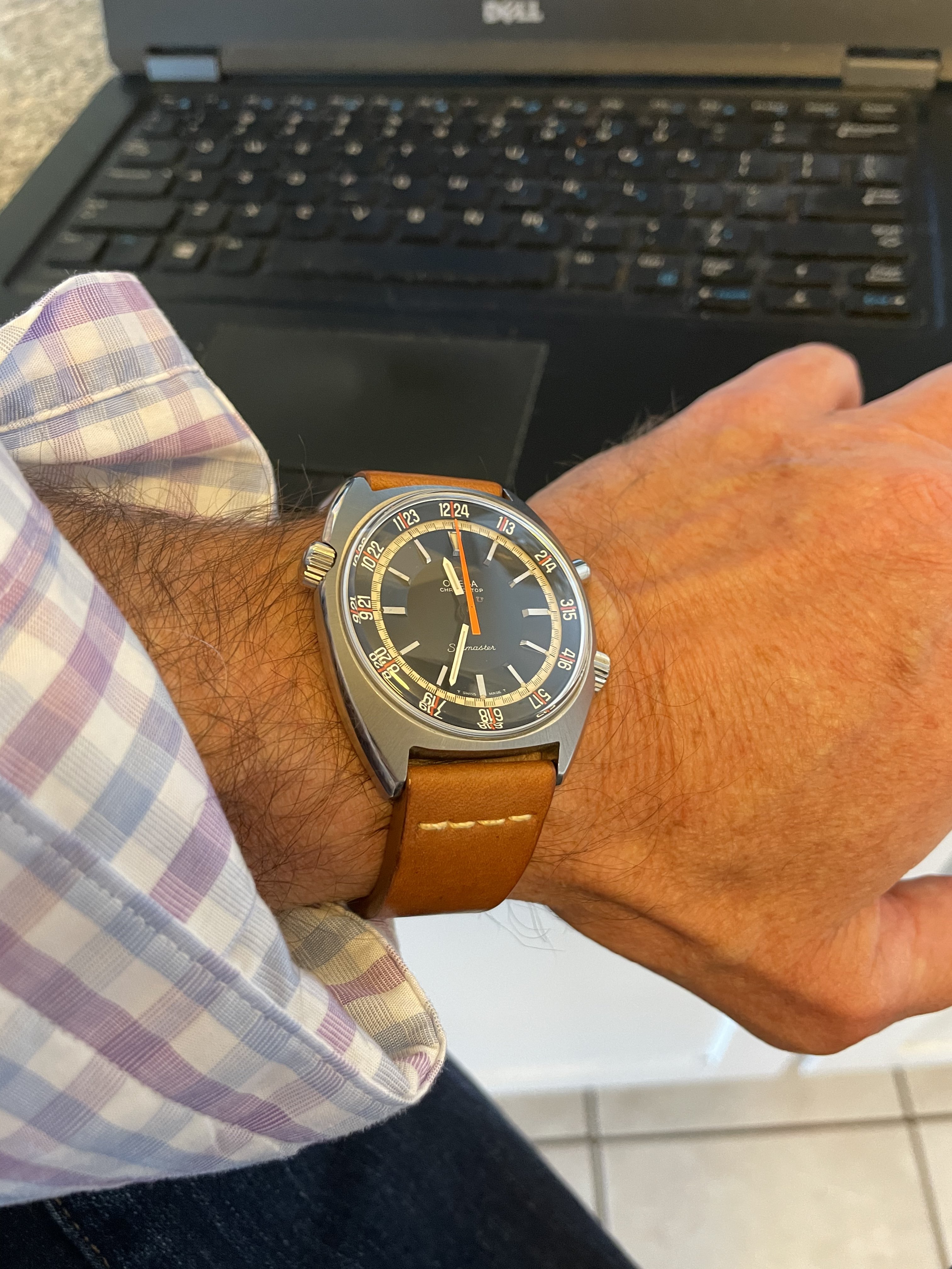 Posts 1,468 Likes 19,522 KeithS ·May 12, 2021 Trying out the black Silver Snoopy strap - definitely a little stiffer than I had anticipated.