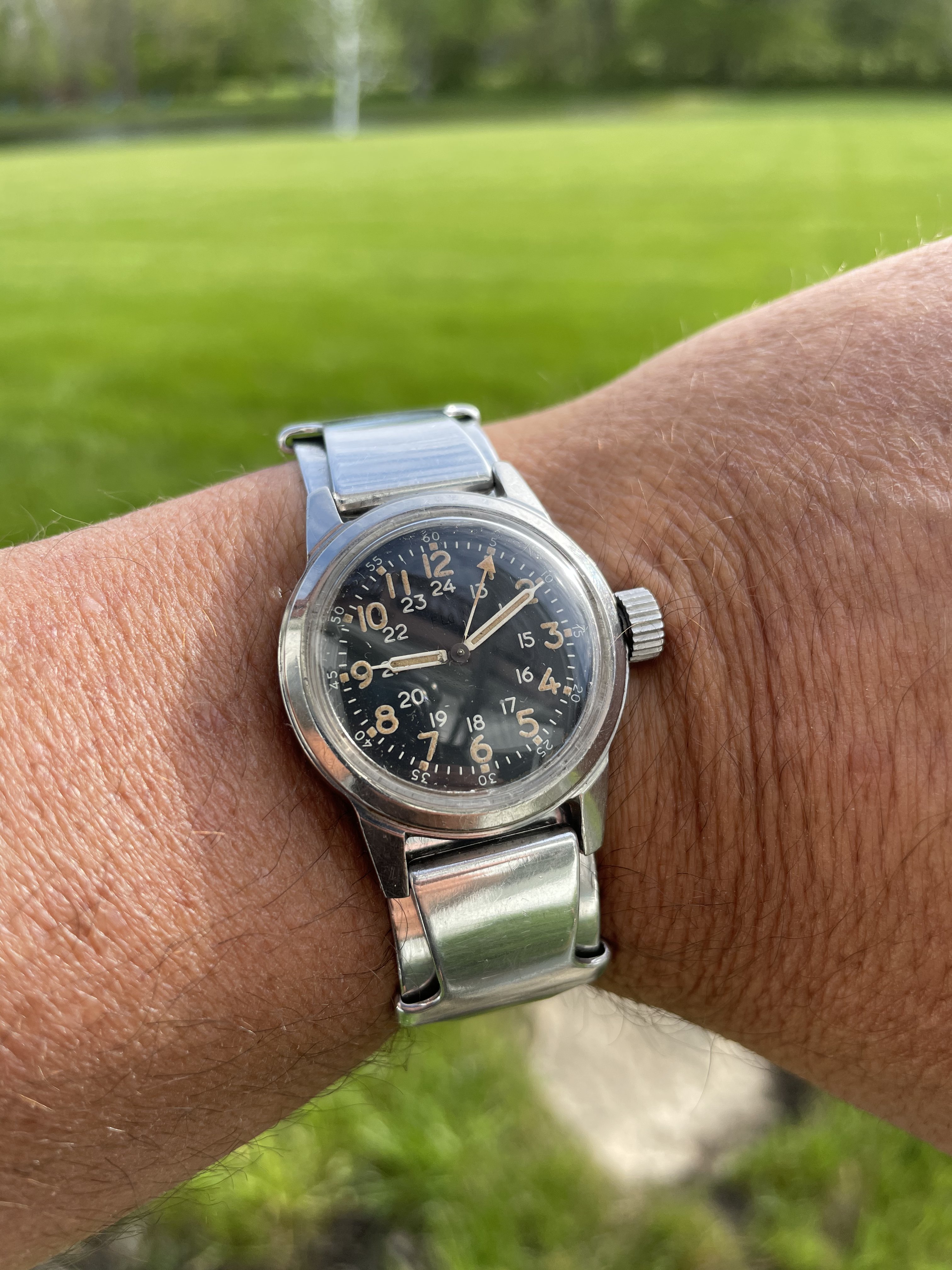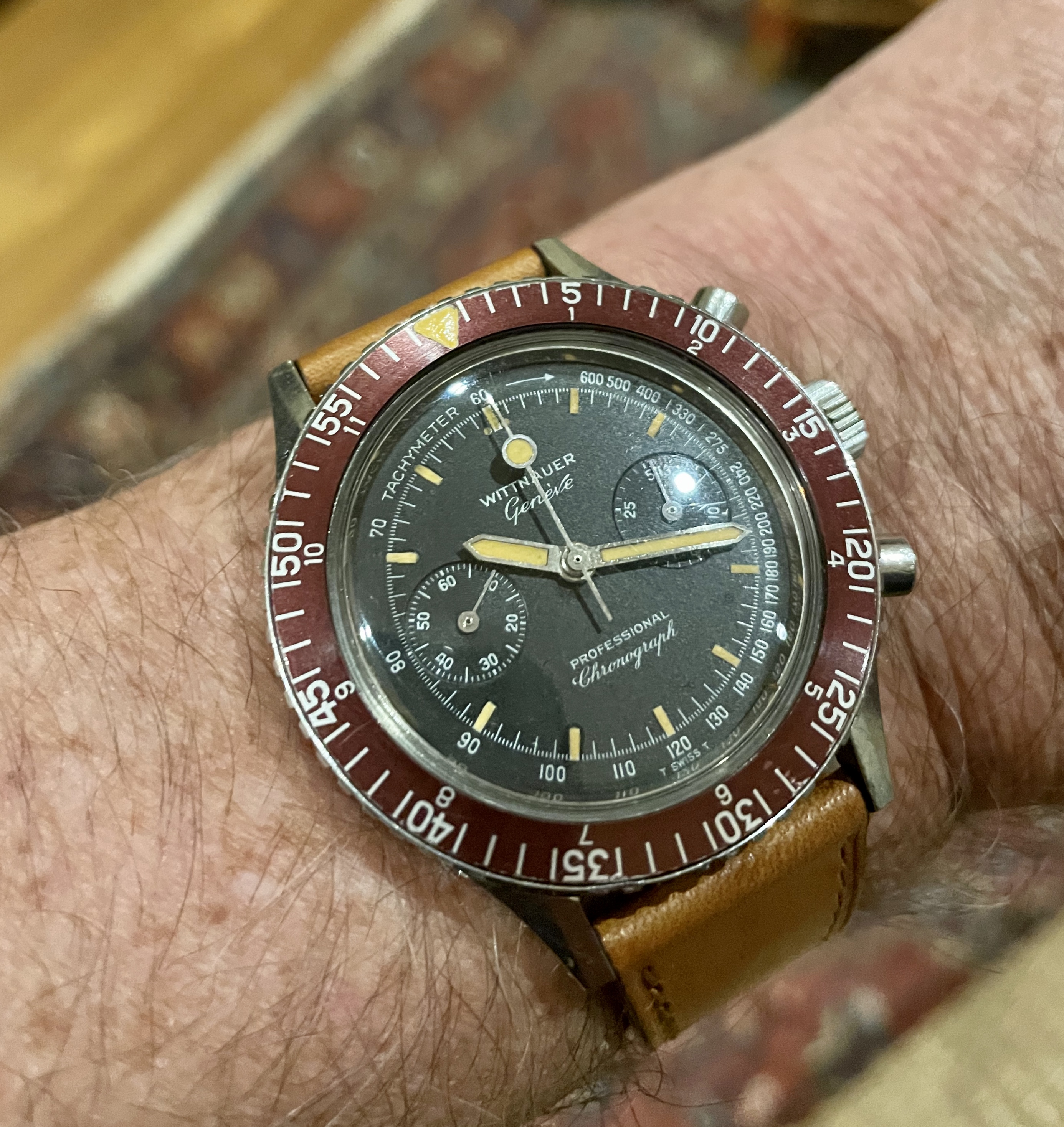 Posts 597 Likes 3,195 Aussie Jim ·May 19, 2021 My new score. Wittnaeur 7004a. Beautiful dial and patina. Running it for a few days to see if it needs a service ( the answer will of course be Yes)