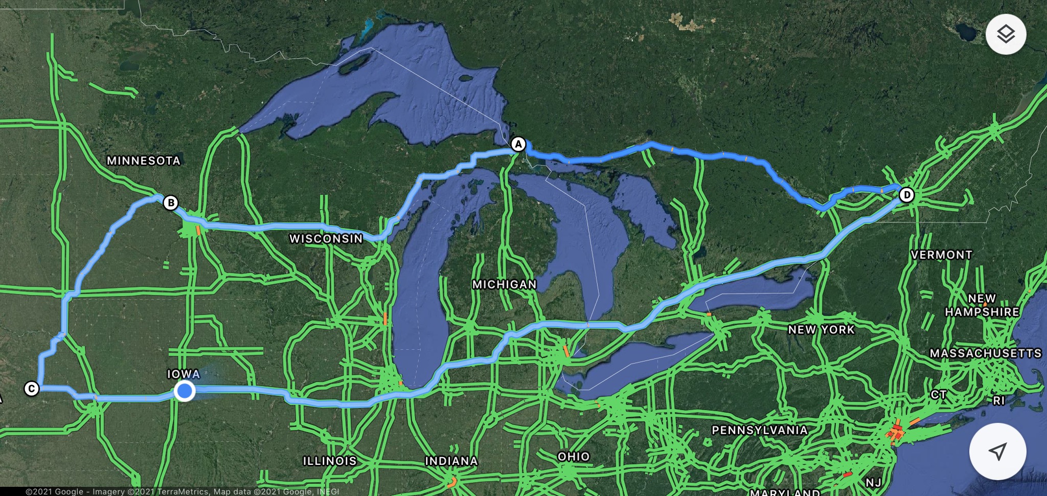 ...Started Tuesday in Varennes Que. on to Becker MN via Sault Ste. Marie. Then on to Lindsay NE and back home. A 3100 mile trek (5200 kms). Observed a human being eating a bucket of fried chicken at 7 am in Iowa city....I have an interesting life!
