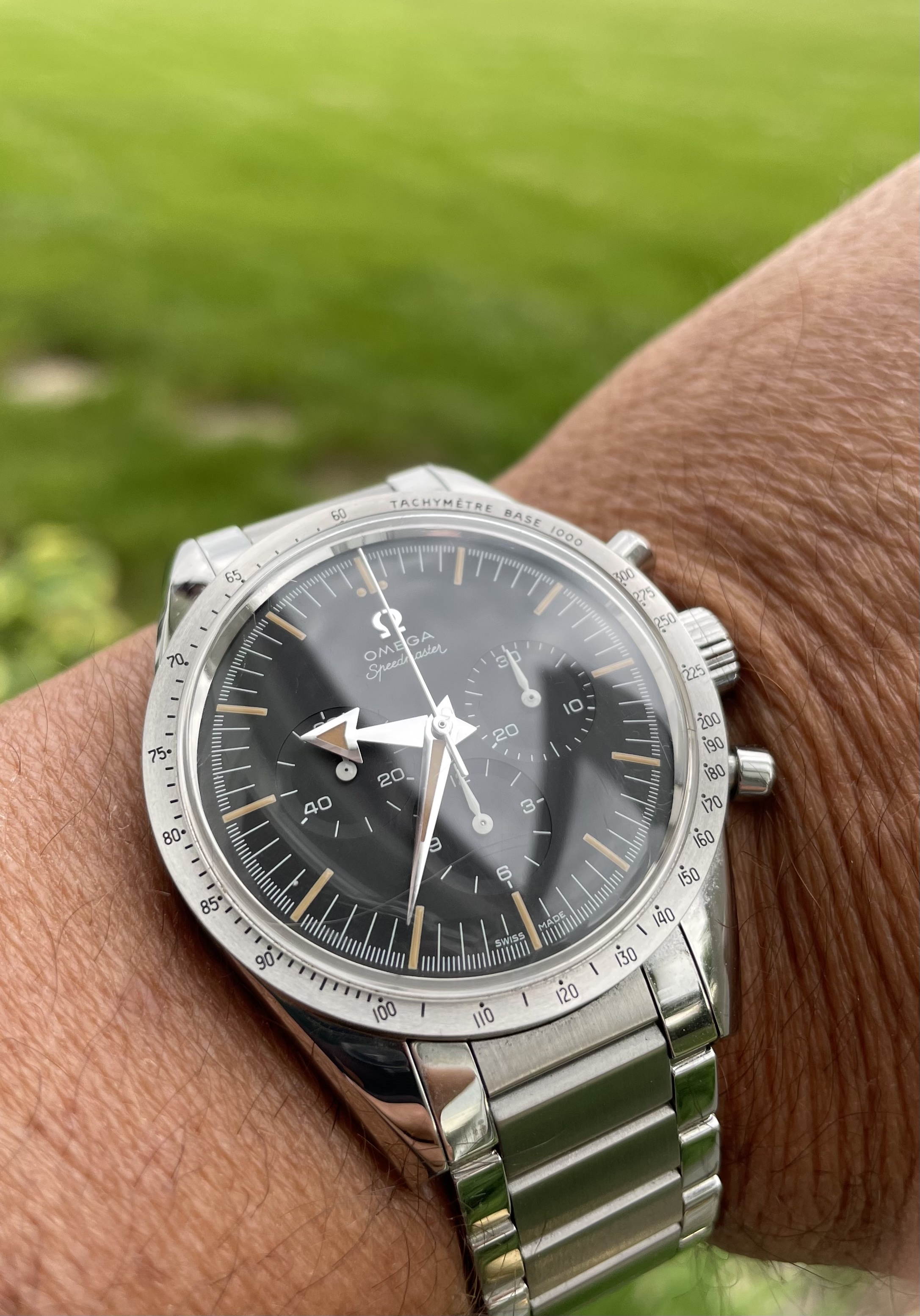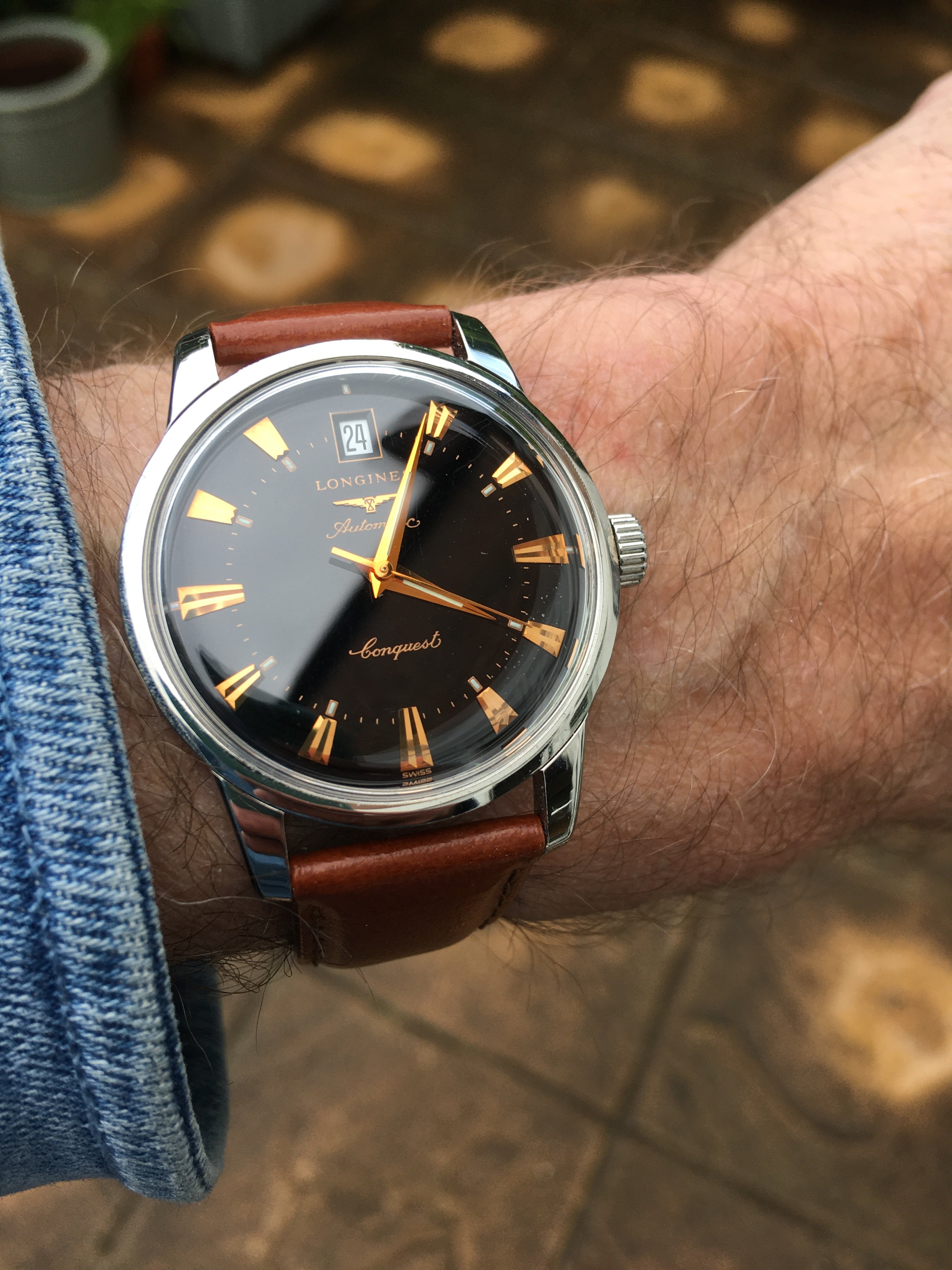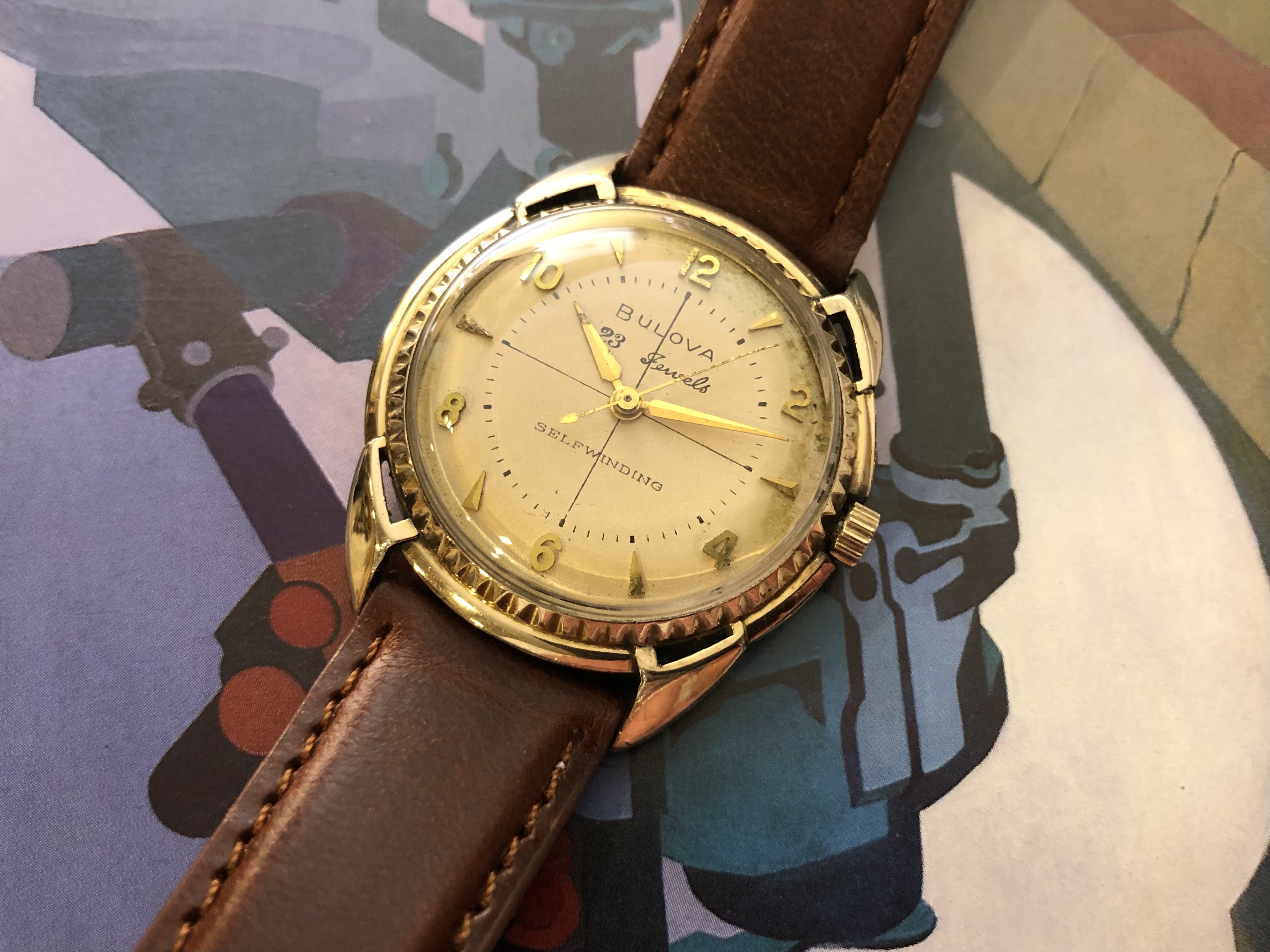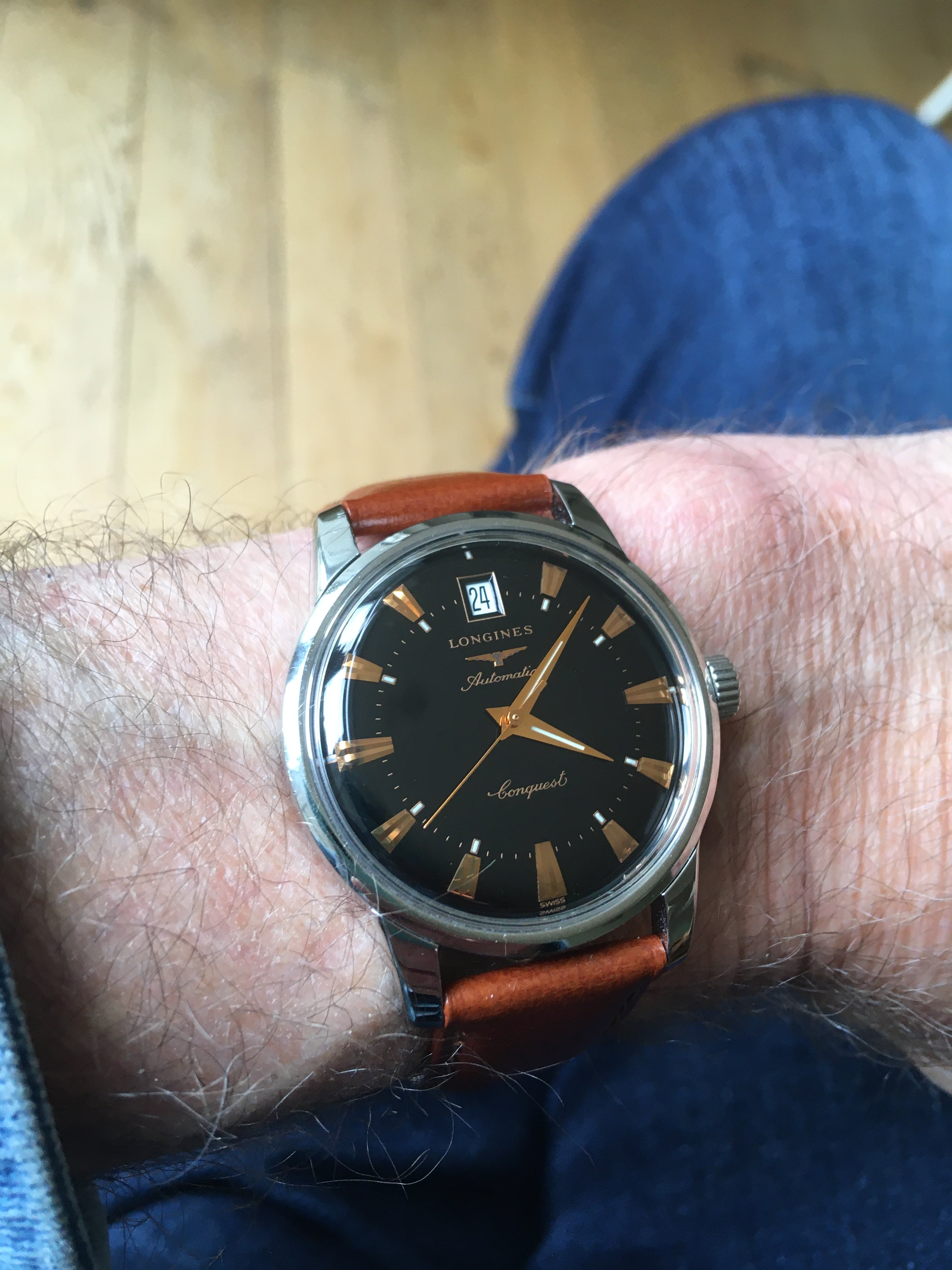 1964 21,xxxxx cal. 286. The tension ring in the replacement crystal is hiding the faint “T Swiss Made T” print on the lower dial, but it’s still there.