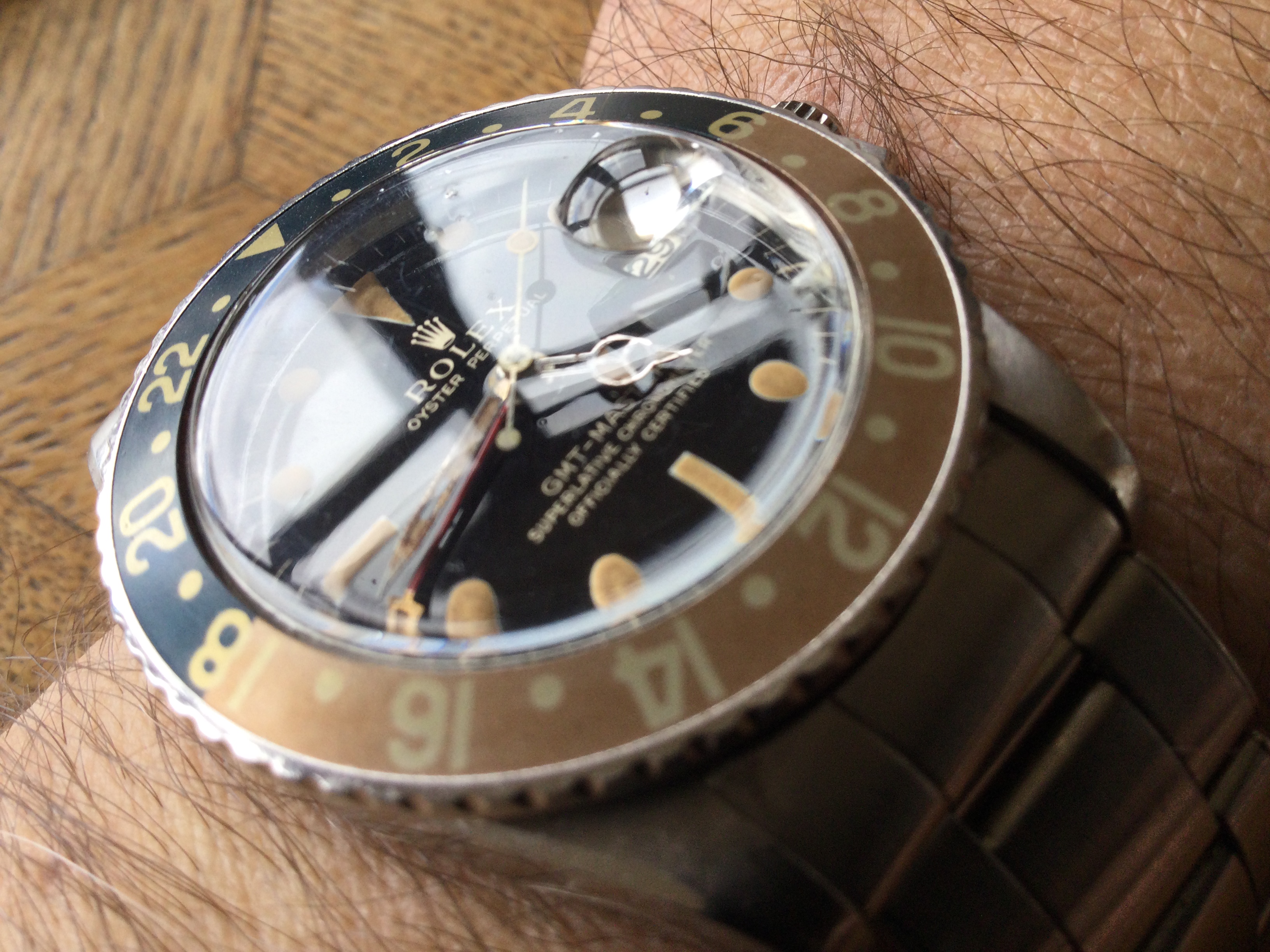 Still researching the “dagger” hands on this reference, but they have ancient decayed lume on them and on the hour markers.
