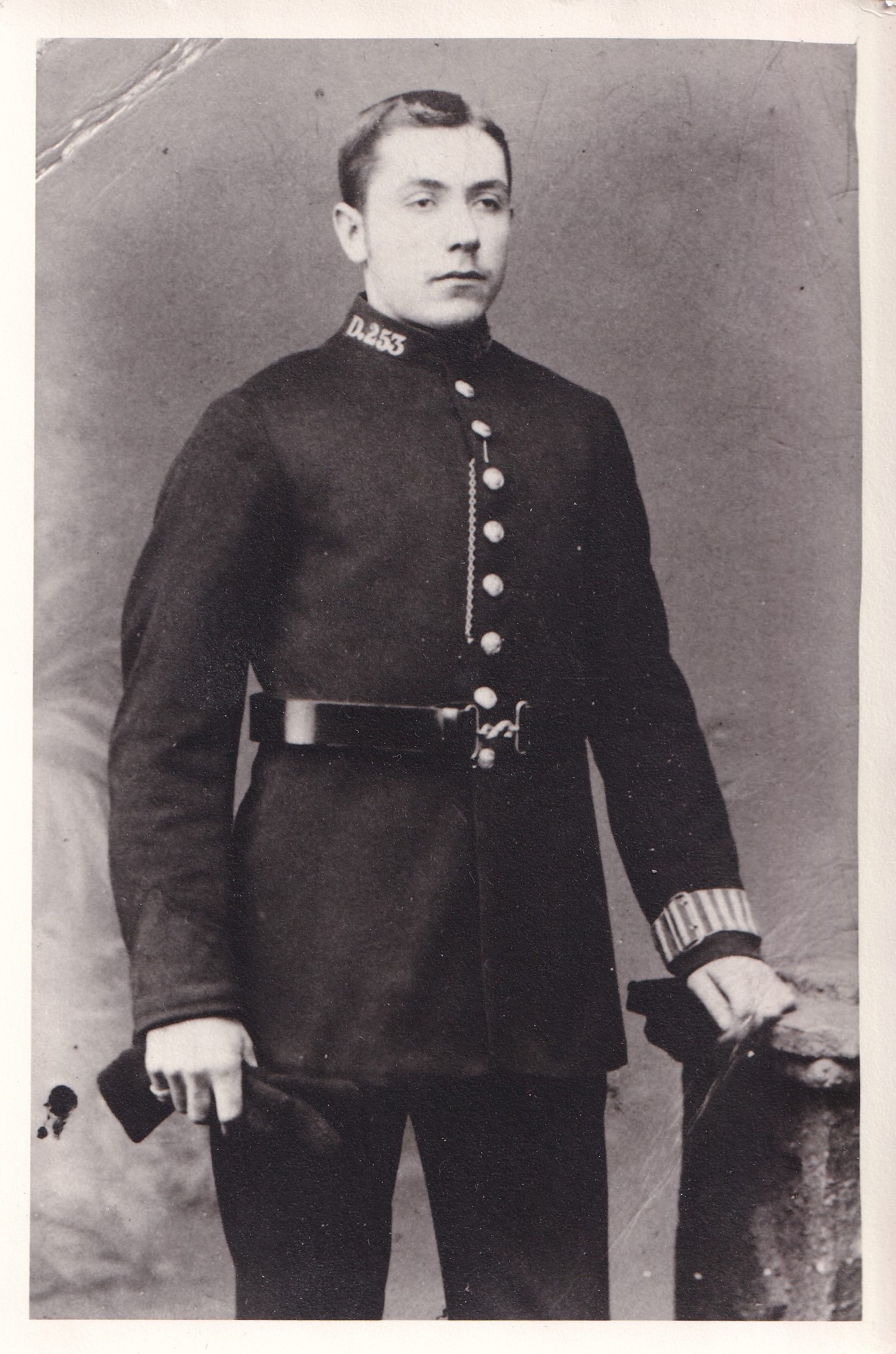 This brought to a photo that I have of my maternal grandfather, taken circa 1895. This was when he was a constable in the London Metropolitan Police, and. Member of the police brass band. He played a cornet, and he played before Queen Victoria in London’s Crystal Palace. I have his cornet.